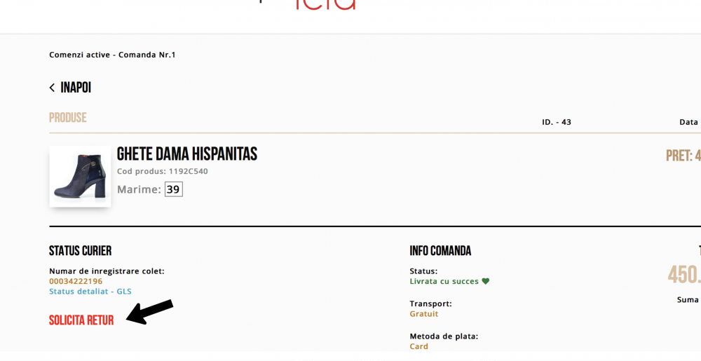 Returul este gratuit o singura data pentru aceeasi comanda.