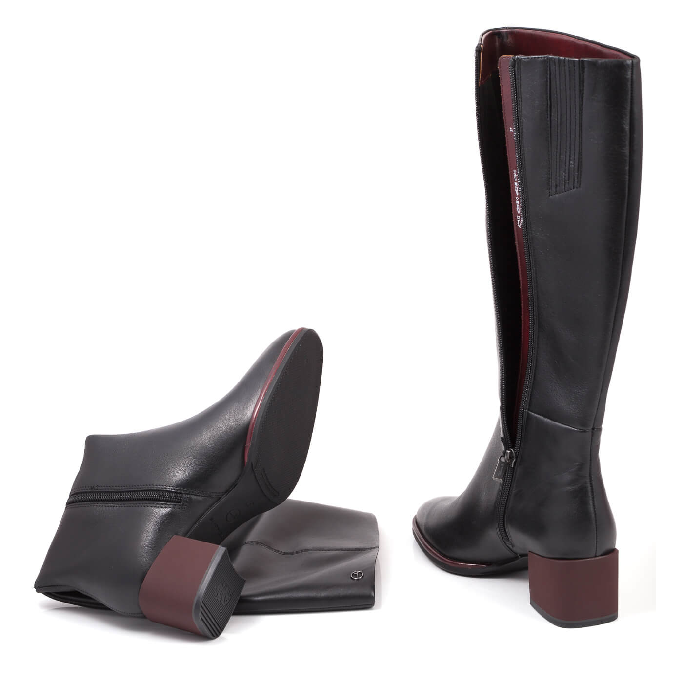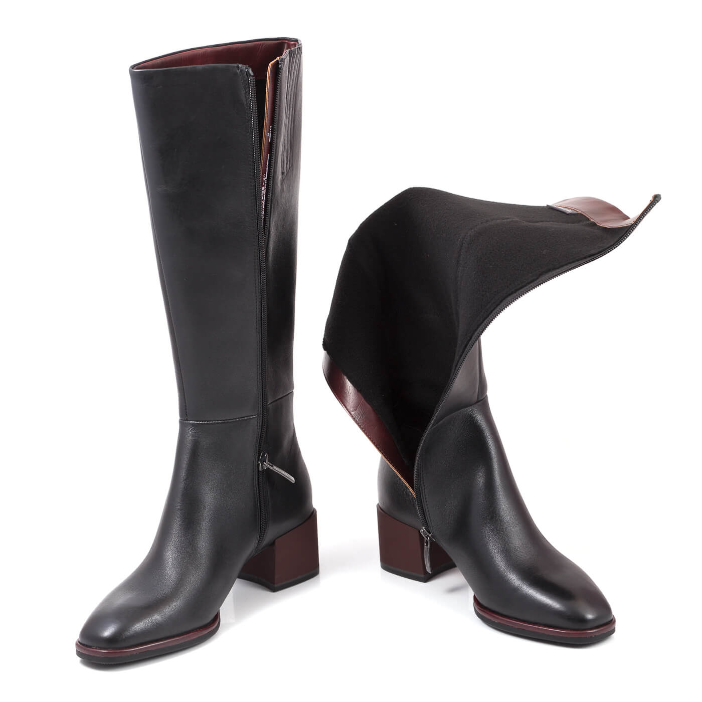 Cizme din piele naturala calduroase, cu brant din blana naturala.Se inchid cu fermoar pe partea interioara