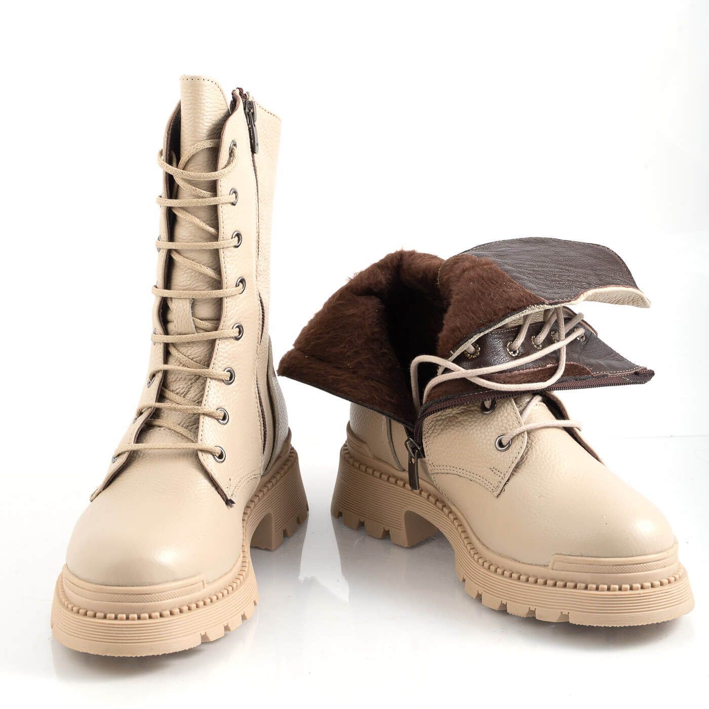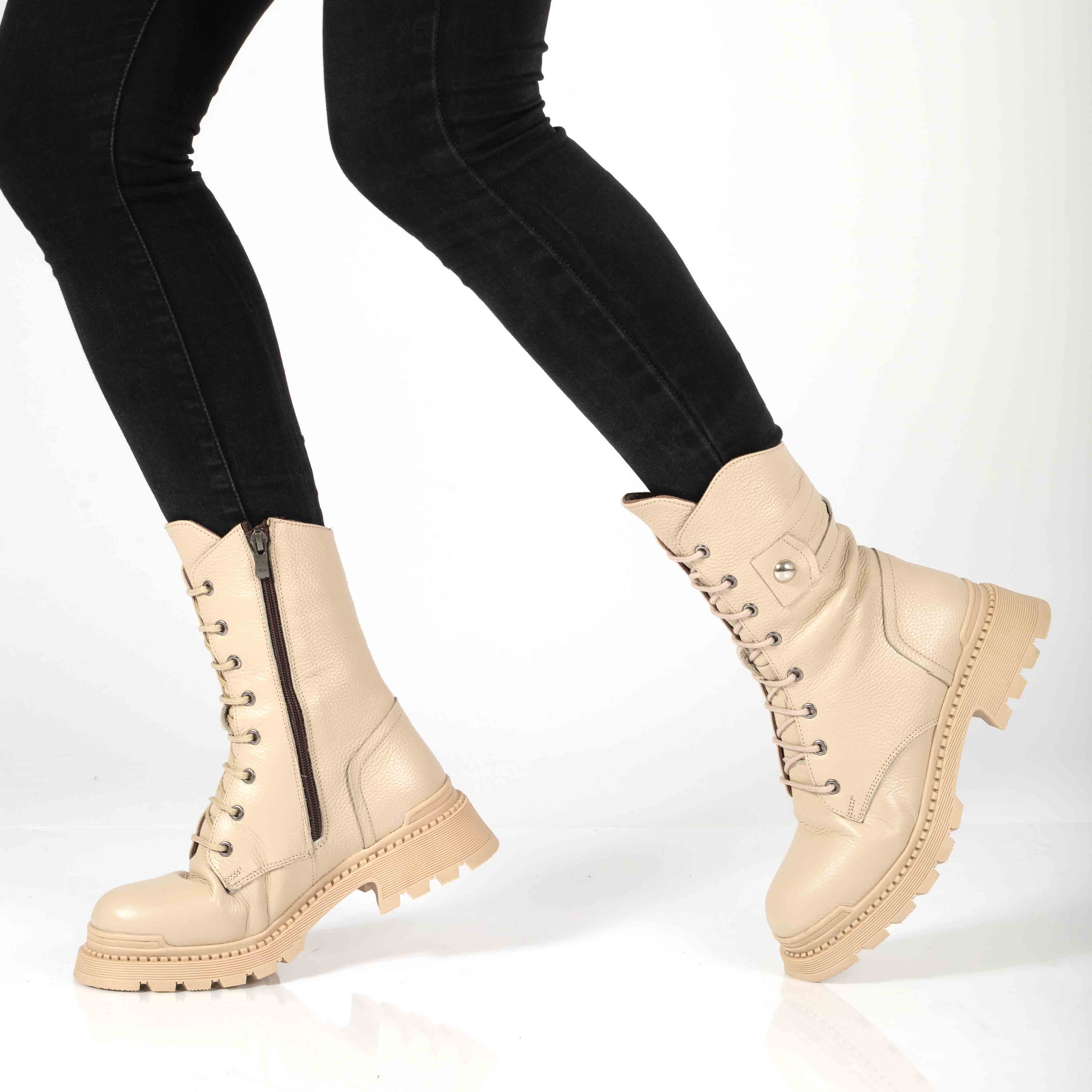 Cizme dama din piele naturala cu siret si fermoar