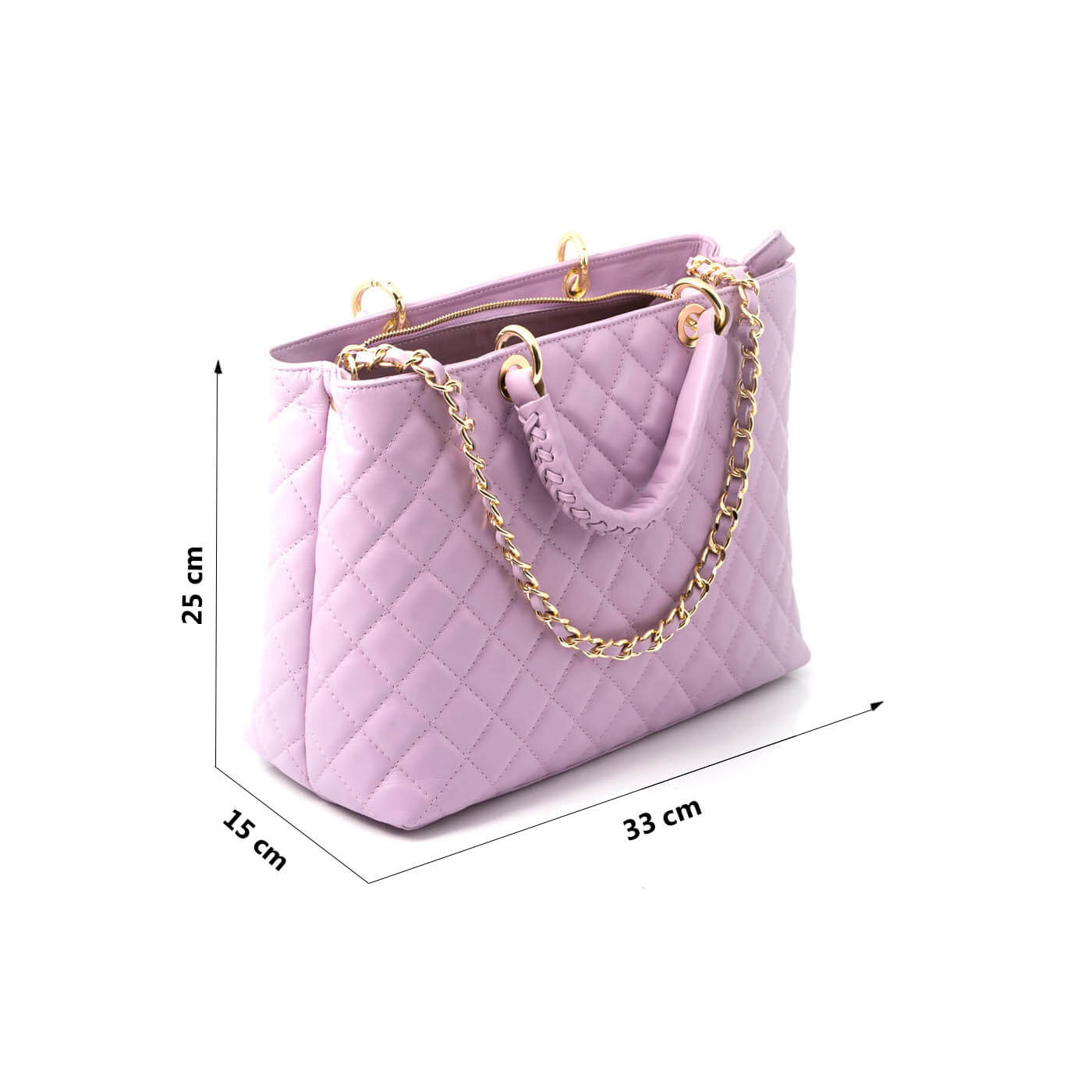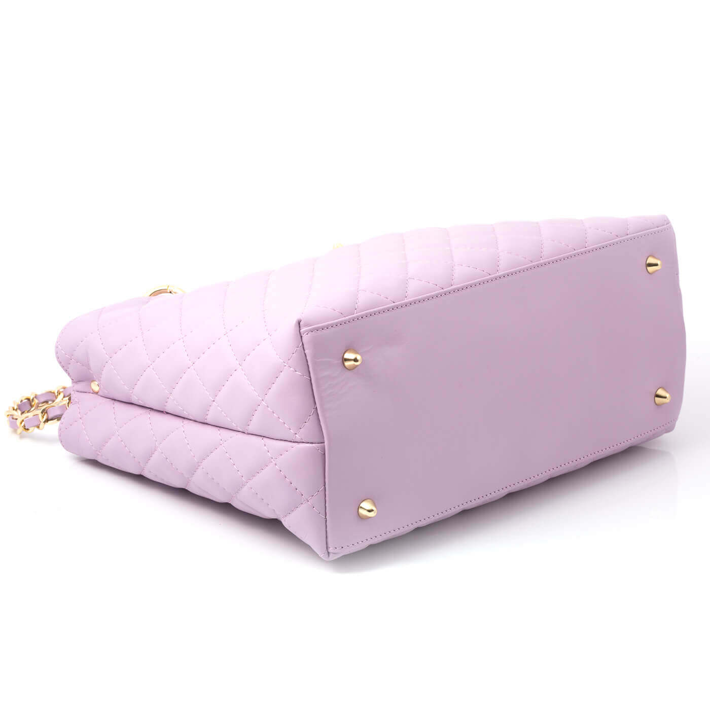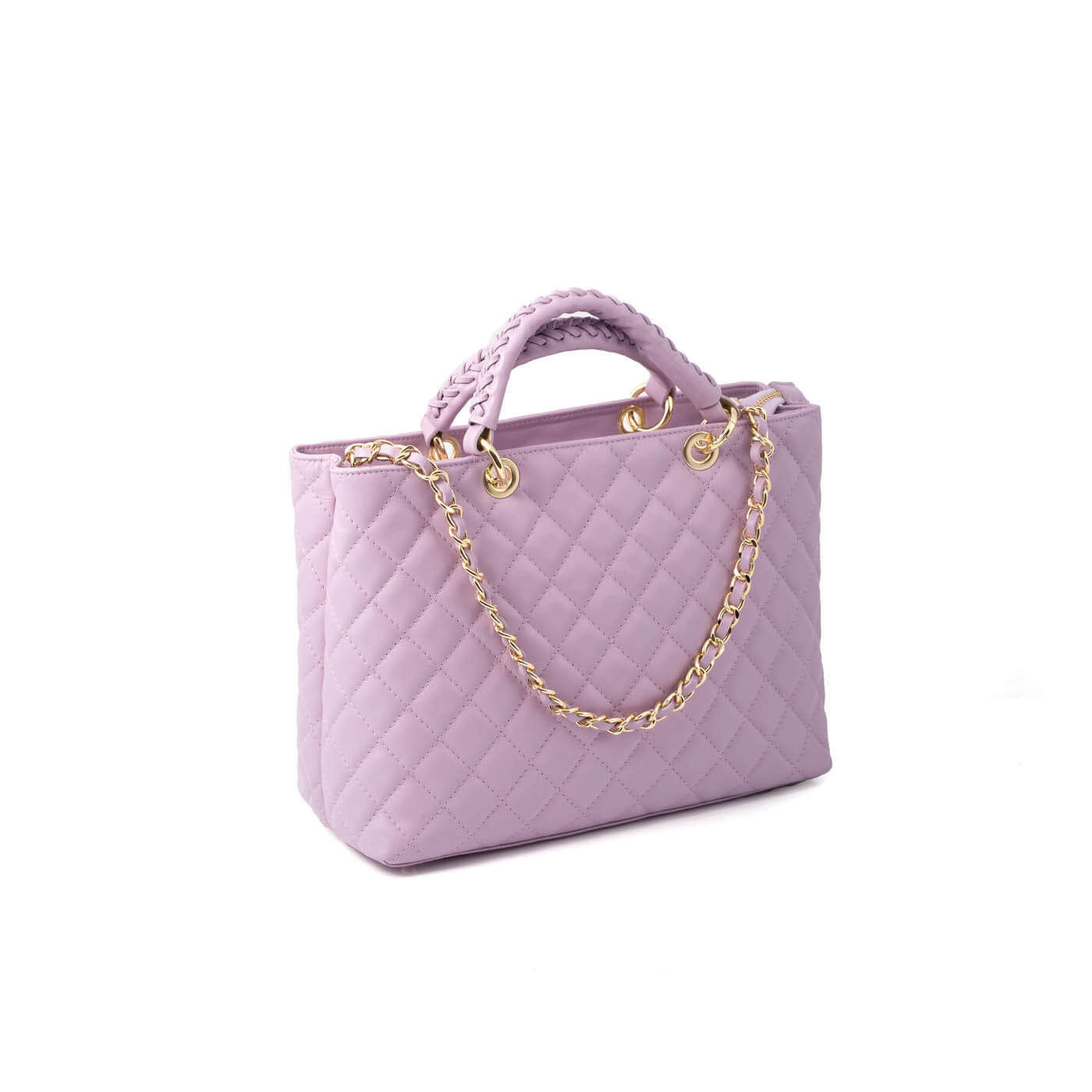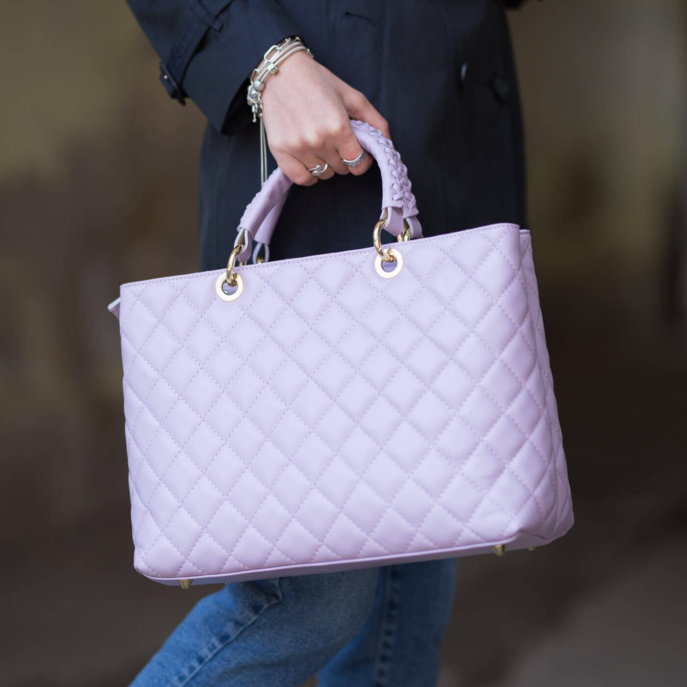 Geanta este prevazuta cu doua manere ce permite purtarea in mana, o bareta de umar scurta metalica si o curea lunga din piele detasabila.
