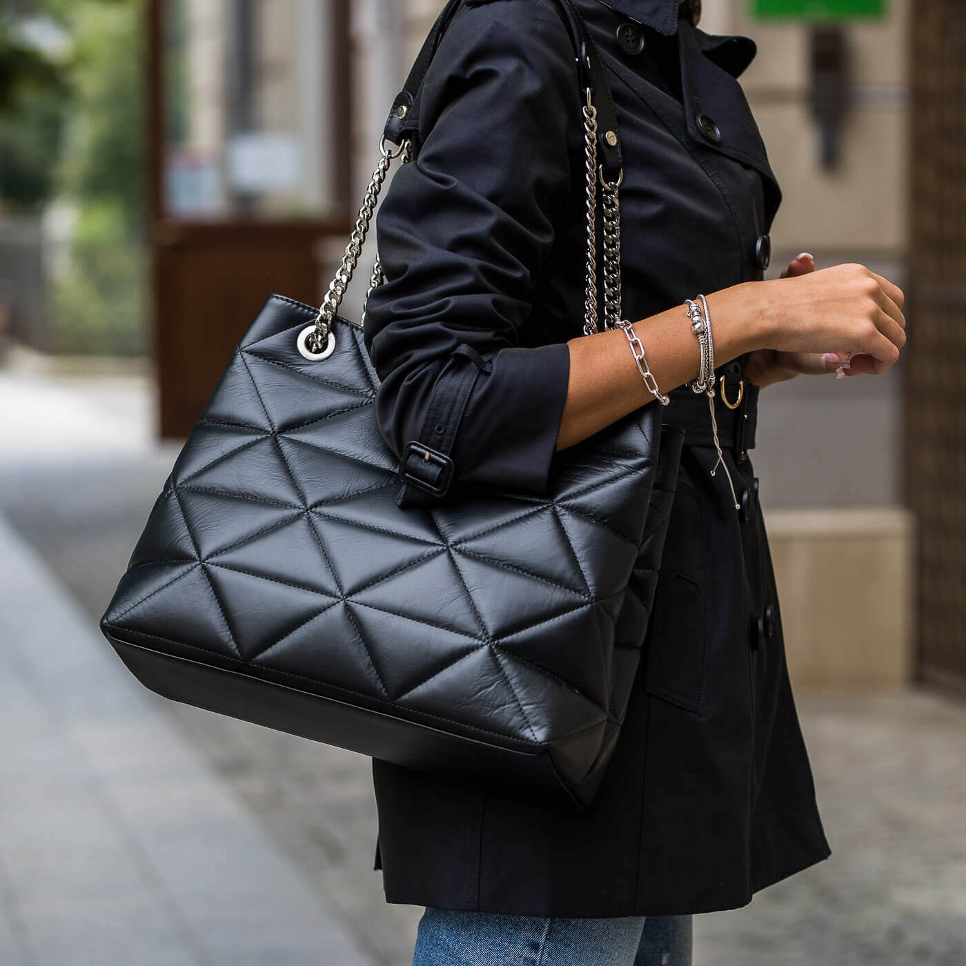 Geanta este prevazuta cu o bareta de umar metalica ce poate fi reglata