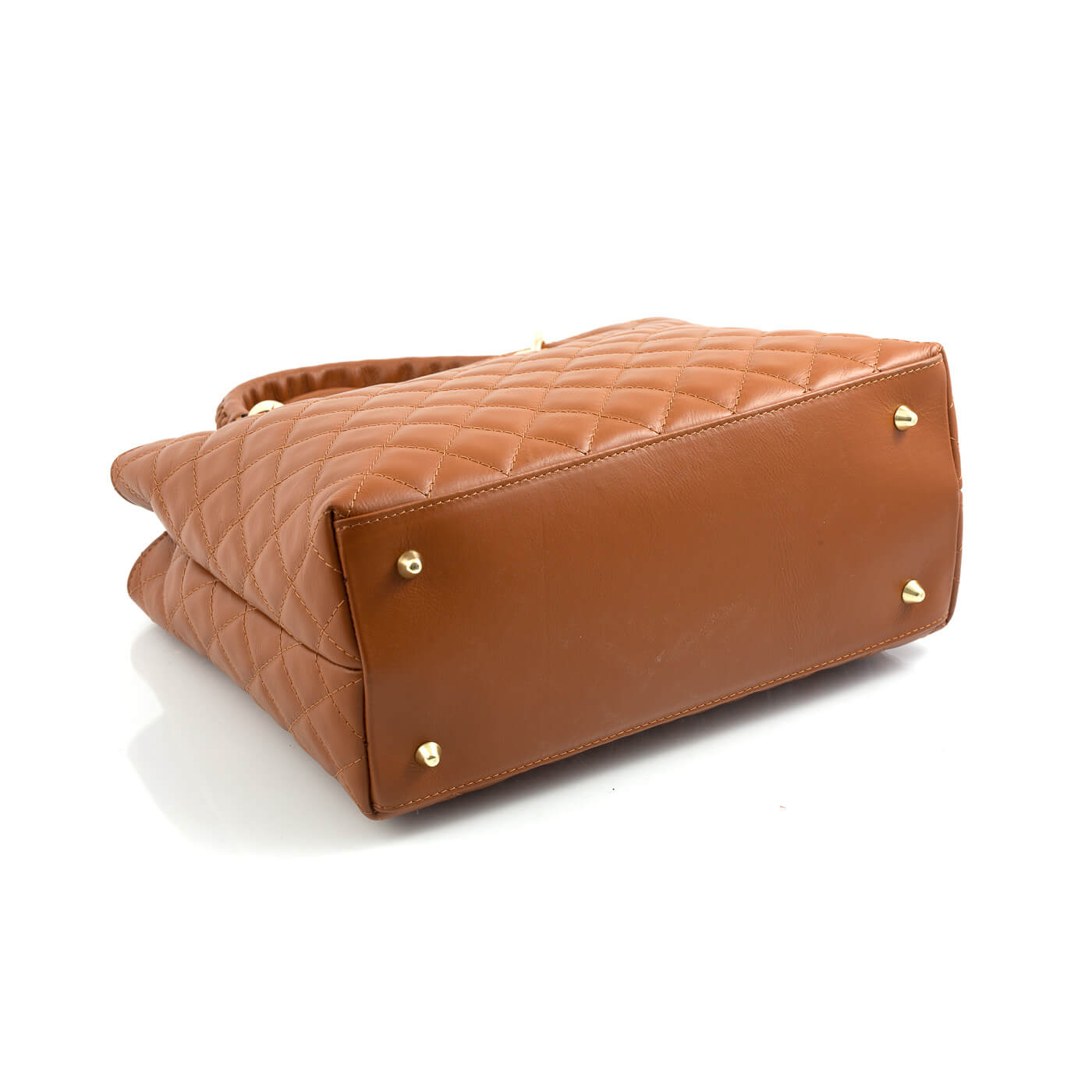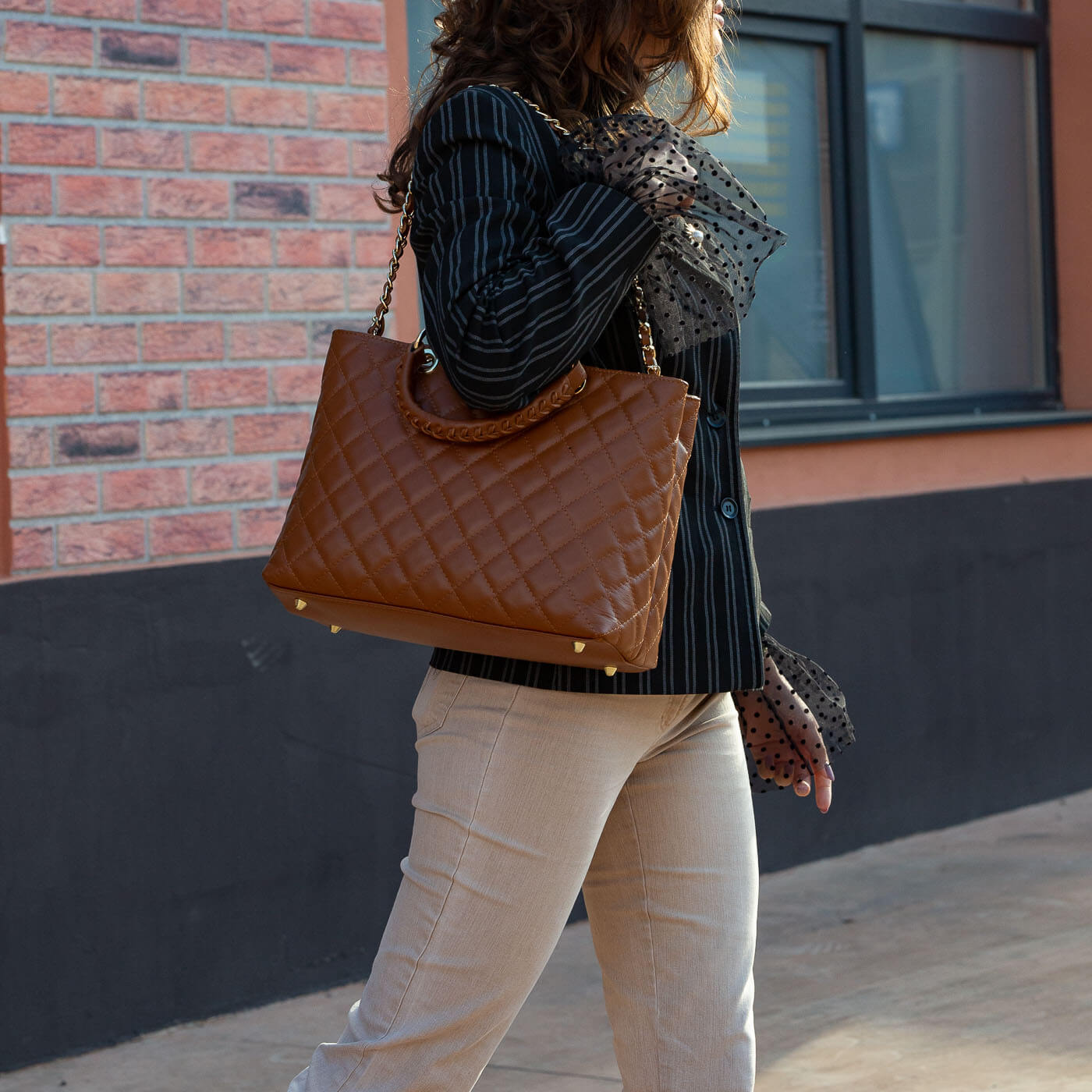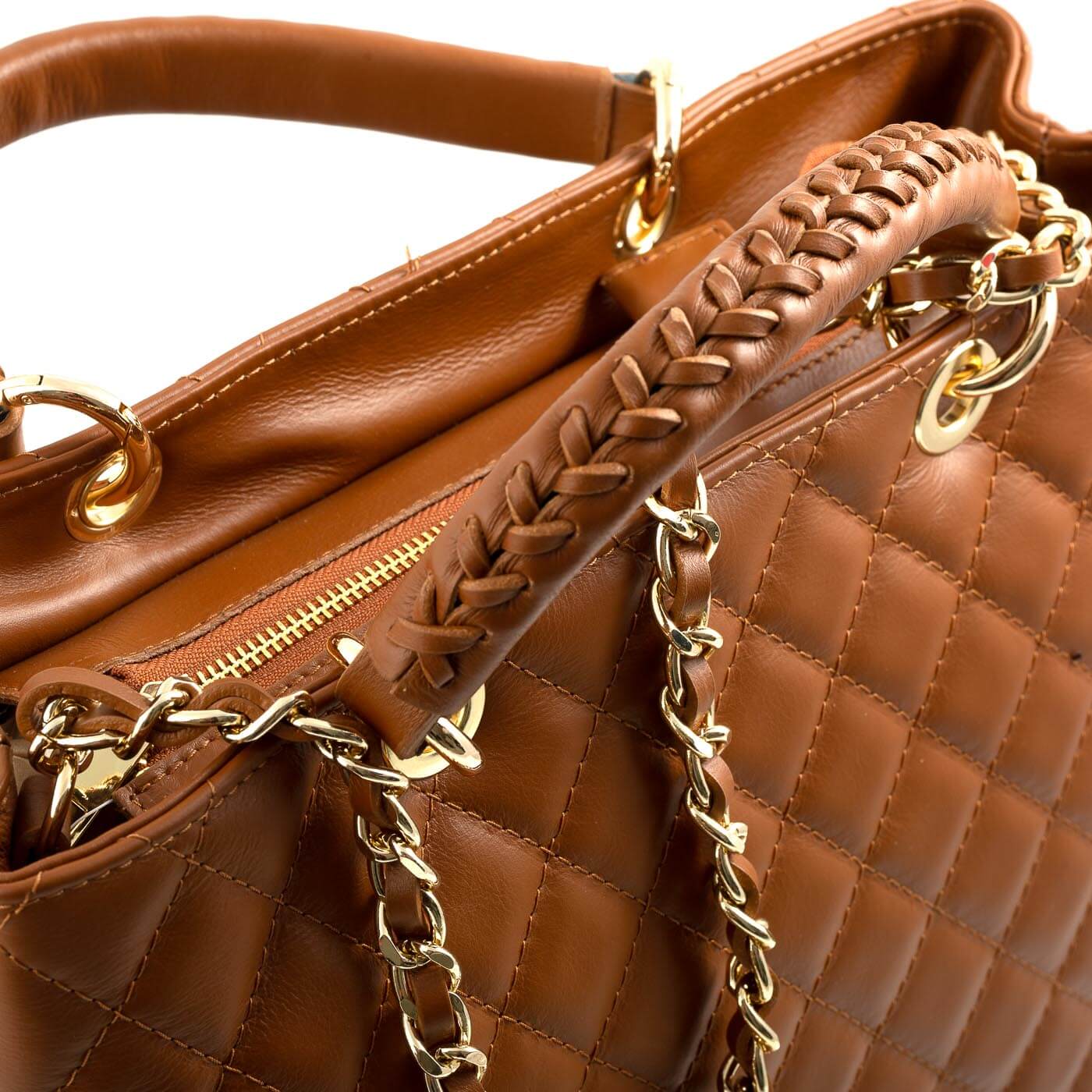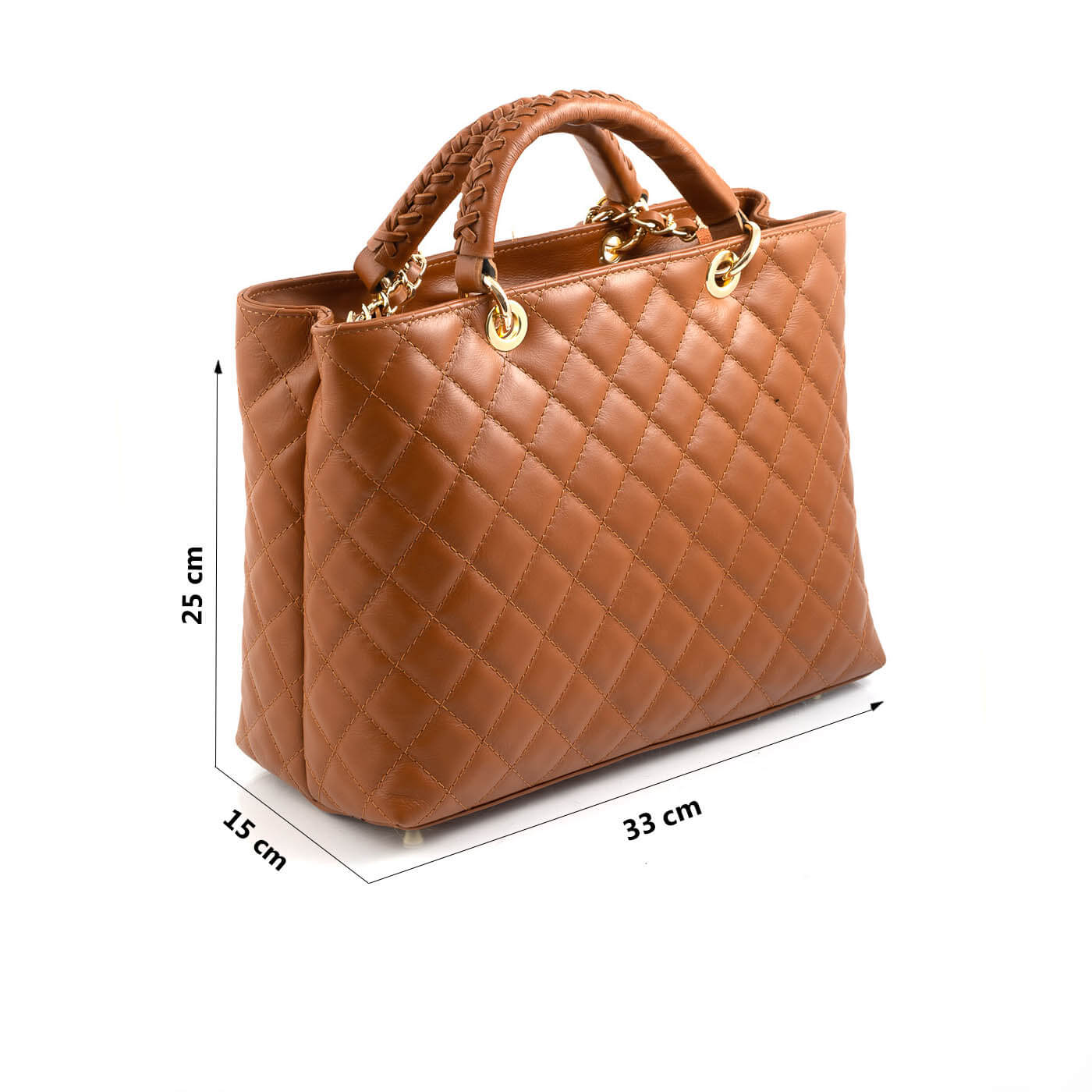 Geanta este prevazuta cu doua manere ce permite purtarea in mana, o bareta de umar scurta metalica si o curea lunga din piele detasabila.