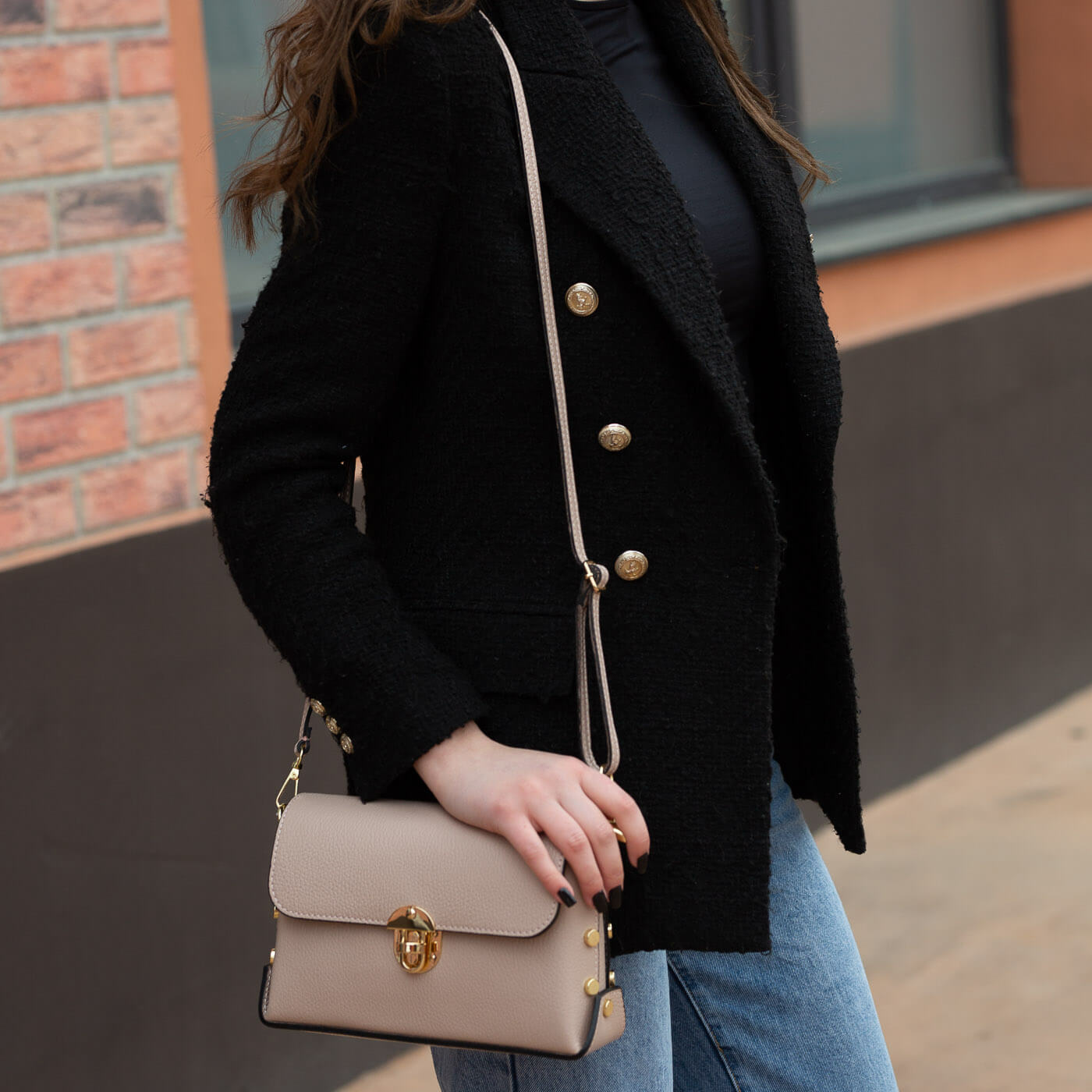 Geanta este prevazuta cu o curea detasabila ce permite purtarea pe umar