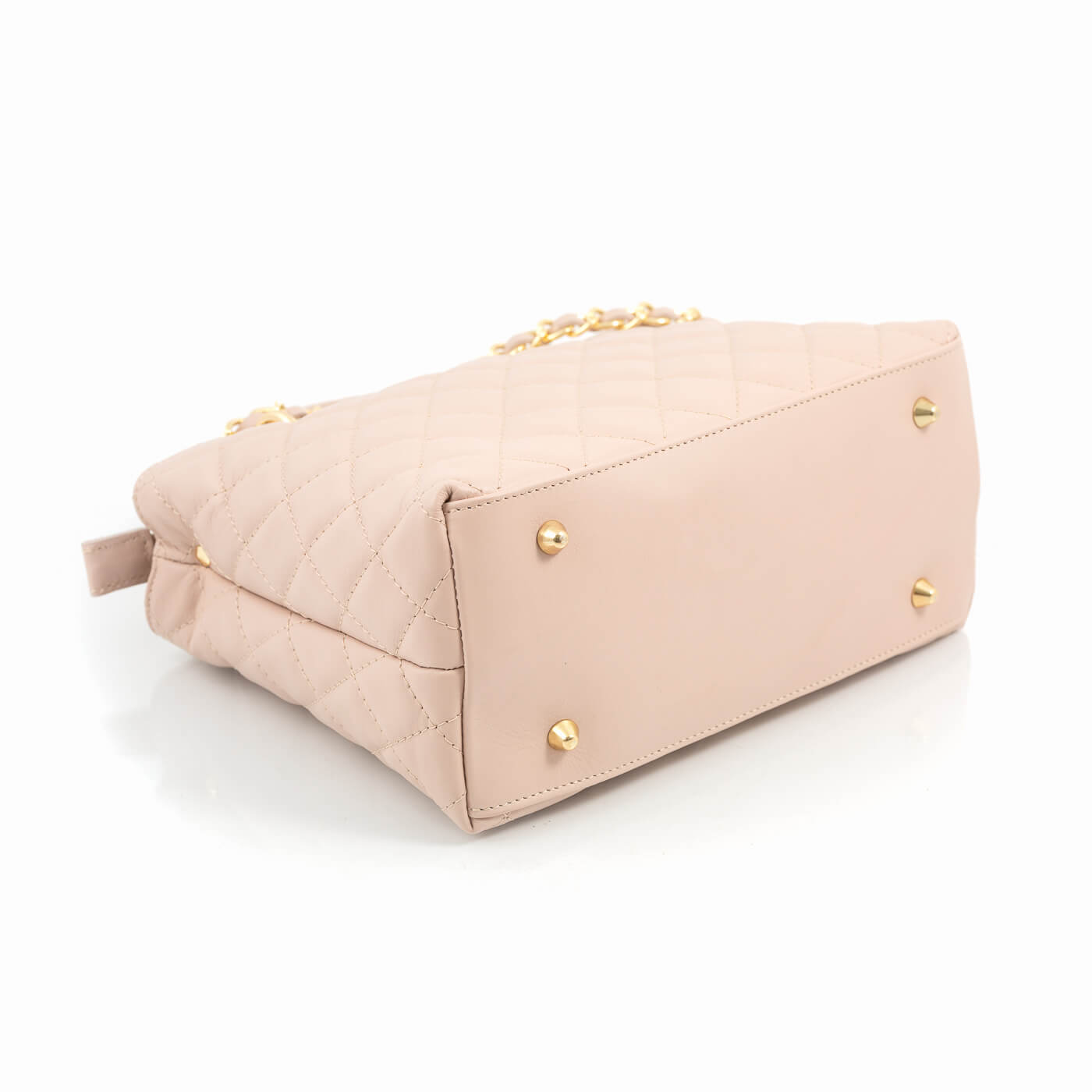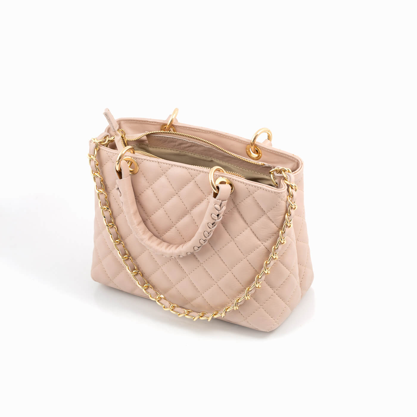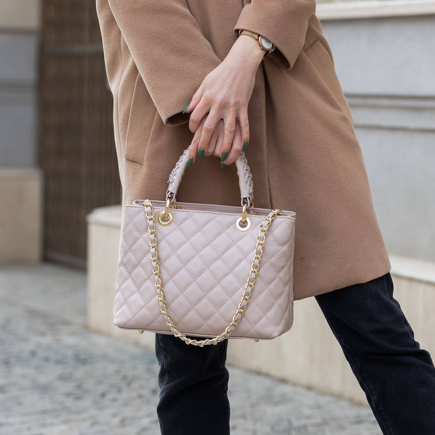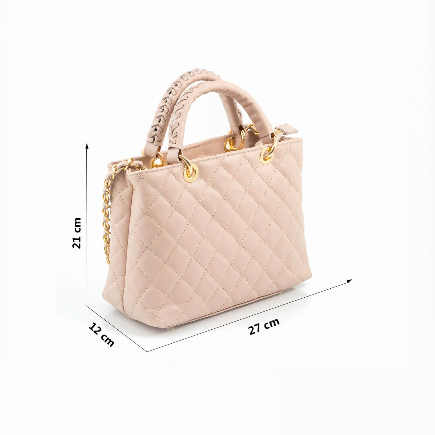 Geanta este prevazuta cu doua manere ce permite purtarea in mana si o bareta de umar metalica