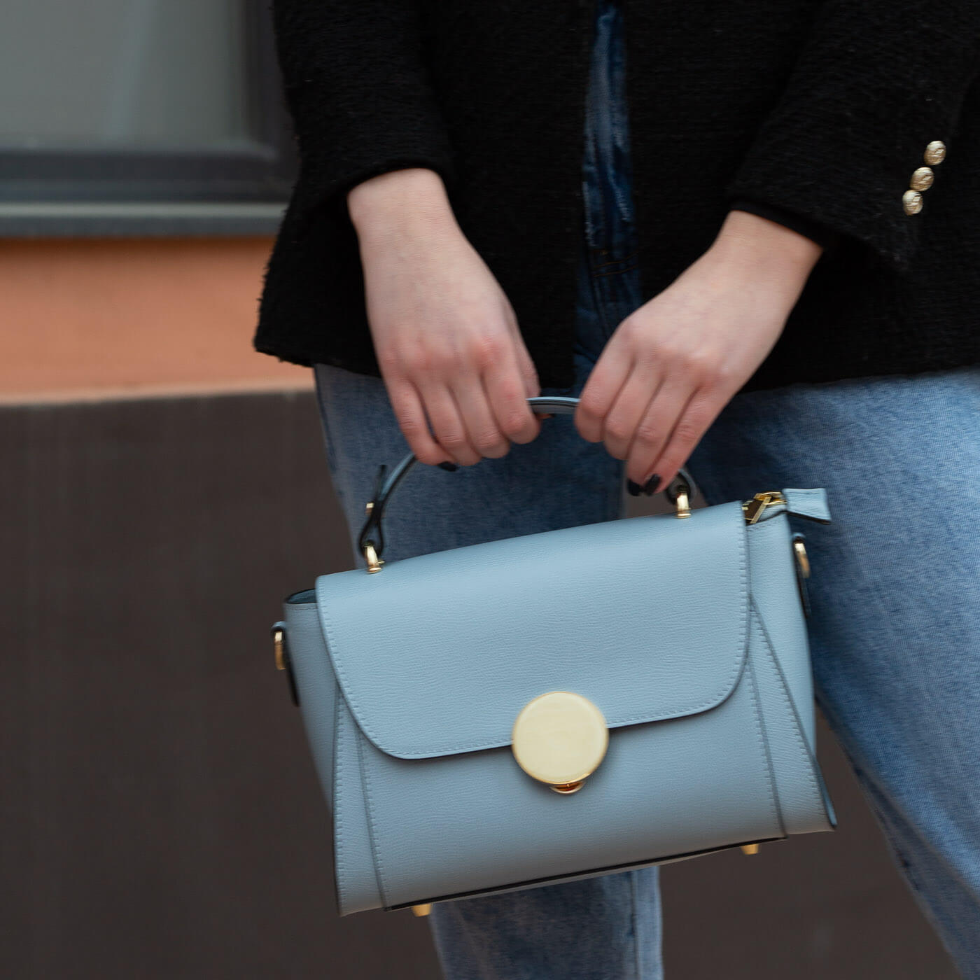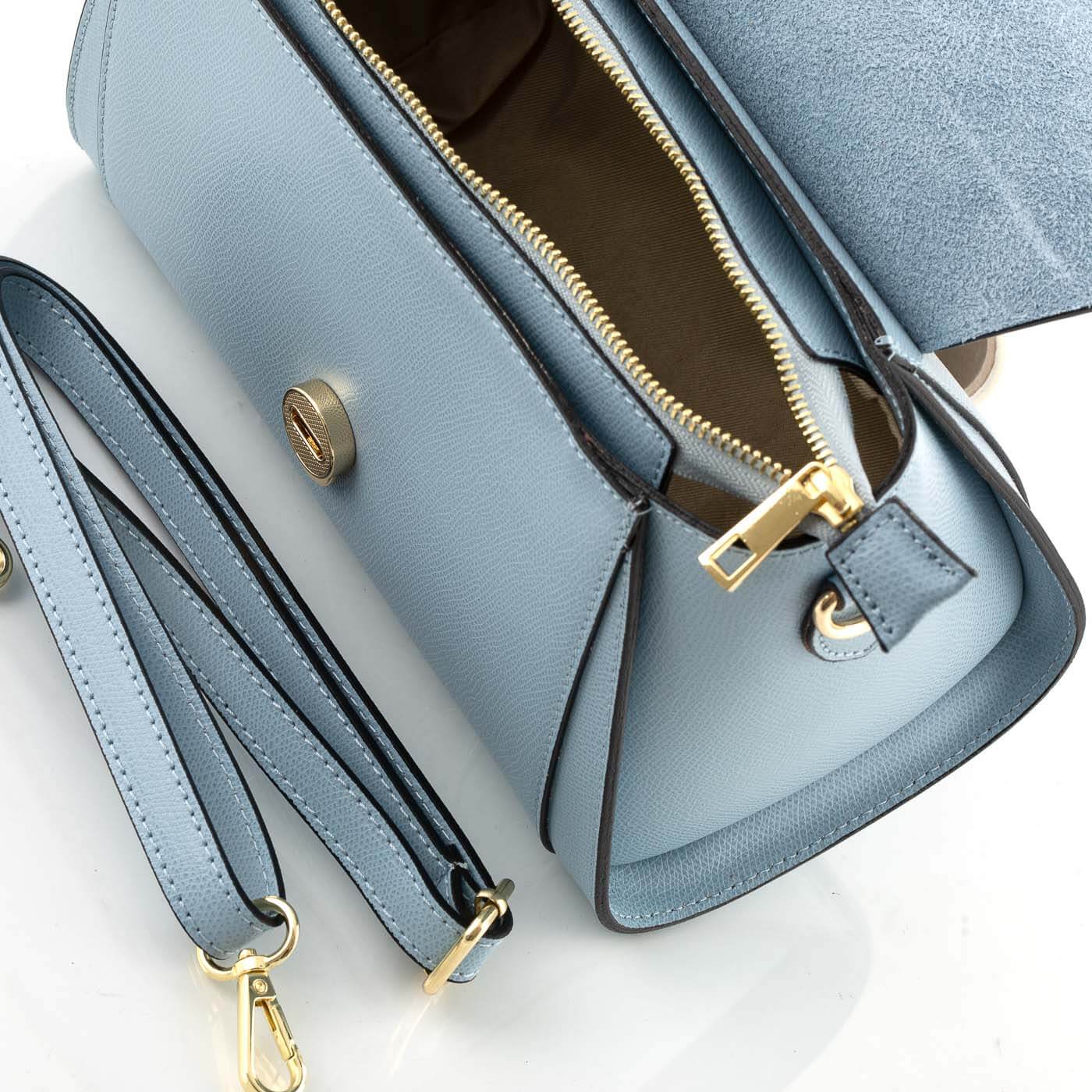 Geanta este prevazuta cu o curea detasabila ce permite purtarea pe umar