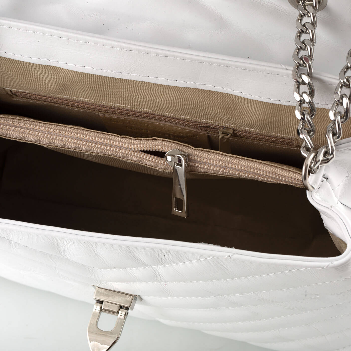 - Compartimente/buzunare: In interior trei compartimente, dintre care cel din mijloc se inchide cu fermoar si un buzunar interior lateral care se inchide cu fermoar