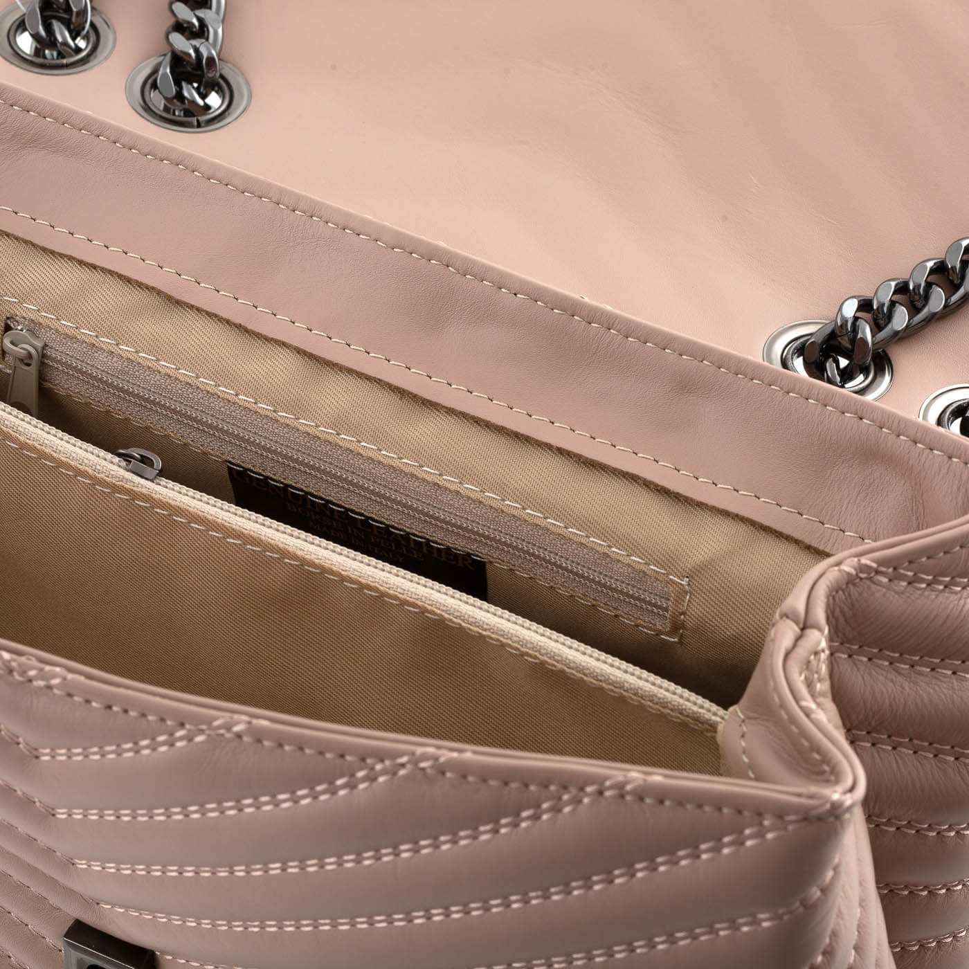 - Compartimente/buzunare: In interior trei compartimente, dintre care cel din mijloc se inchide cu fermoar si un buzunar interior lateral care se inchide cu fermoar