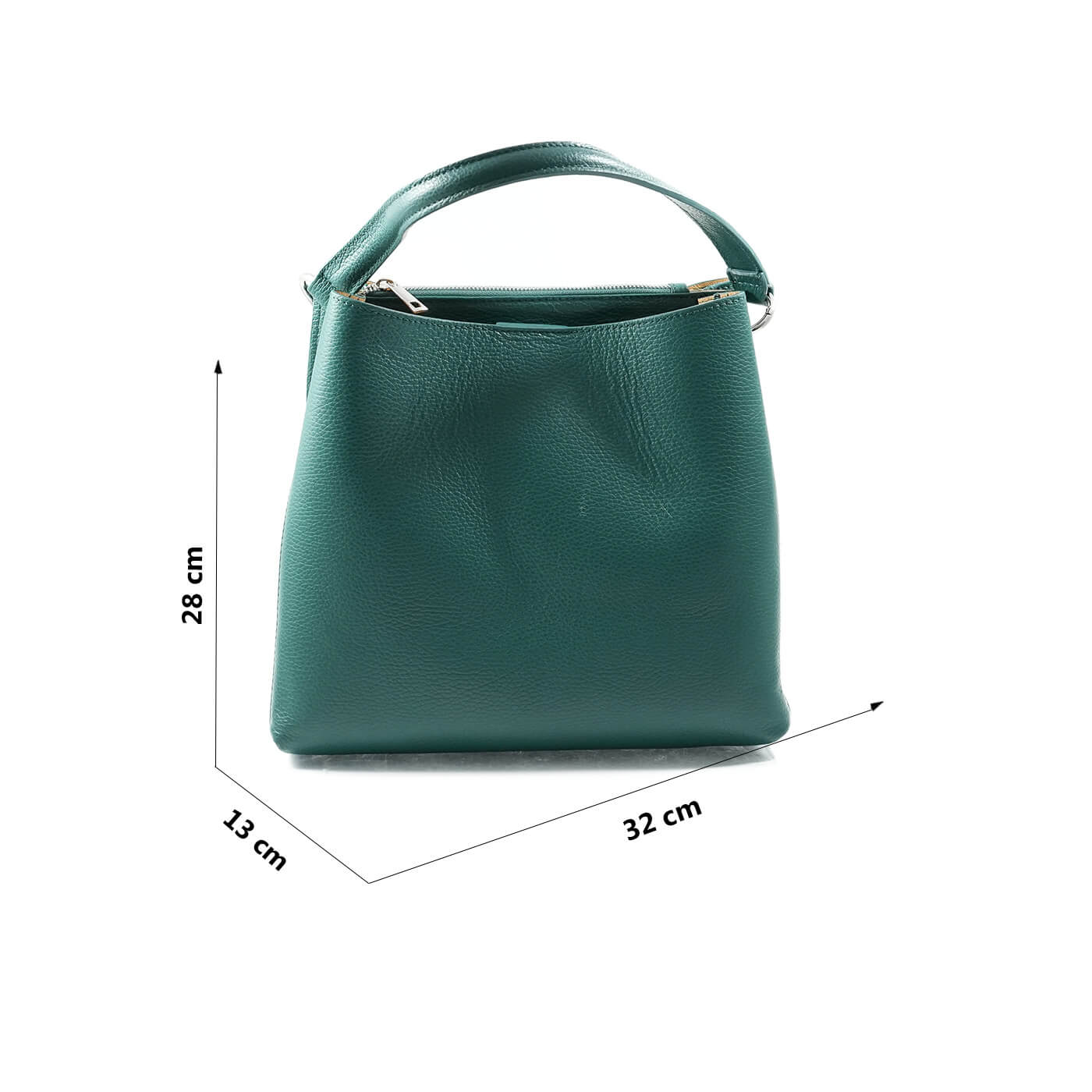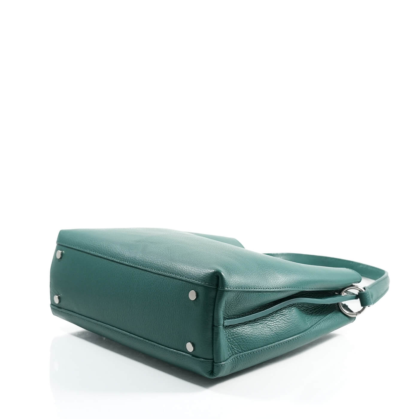 Geanta este prevazuta cu doua manere din piele pentru a fi purtata in mana si o curea detasabila de piele ce permite purtarea pe umar.