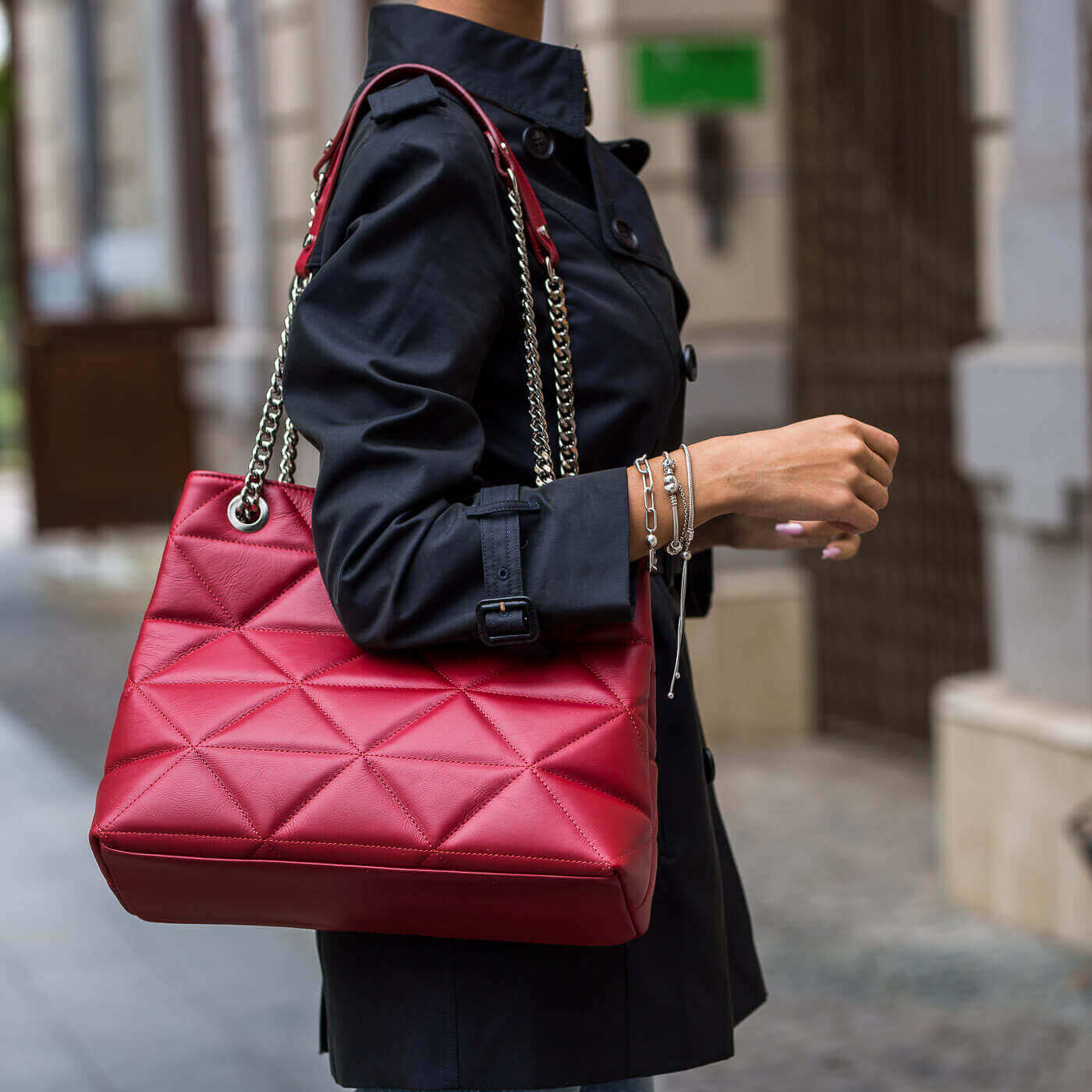 Geanta este prevazuta cu o bareta de umar metalica ce poate fi reglata