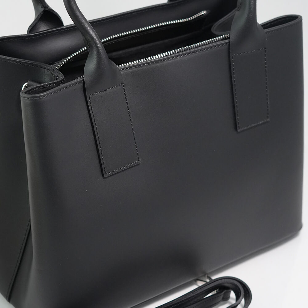 - Compartimente/buzunare: In interior trei compartimente, dintre care cel din mijloc se inchide cu fermoar si un buzunar interior lateral care se inchide cu fermoar