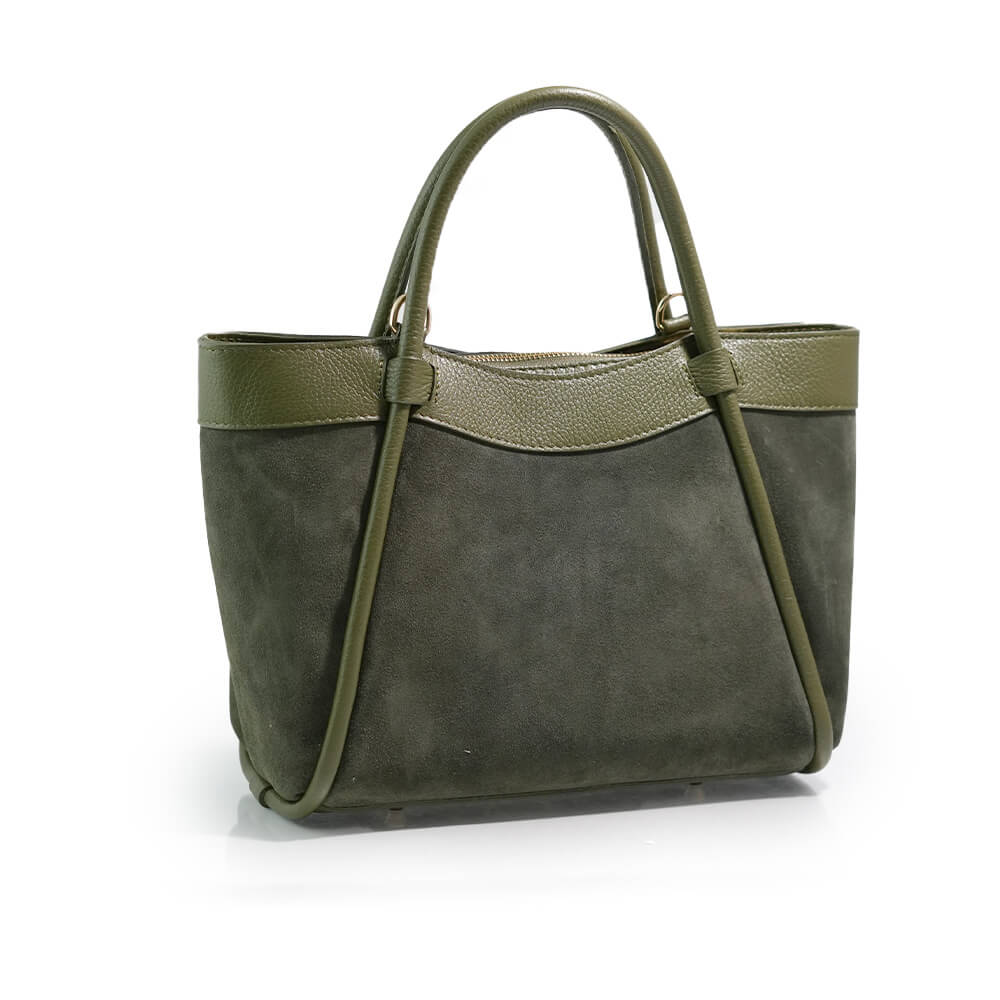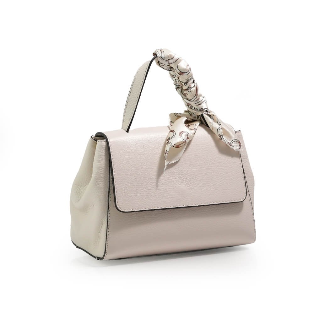 Geanta este prevazuta cu o curea din piele pentru a fi purtata in mana sau pe brat si o curea detasabila ce permite purtarea pe umar