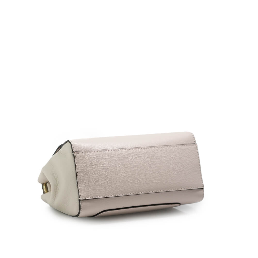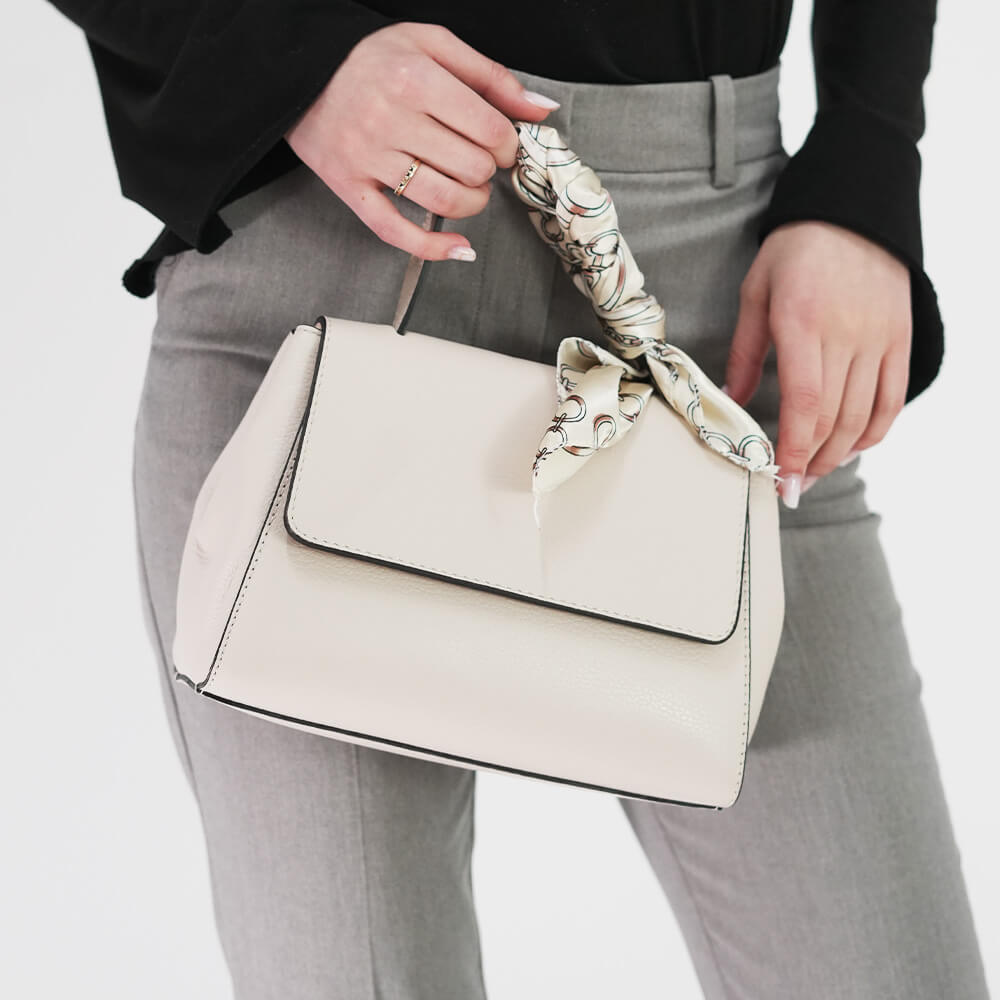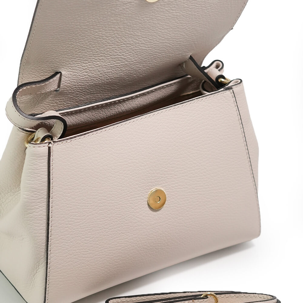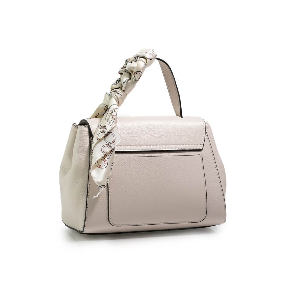 Geanta este prevazuta cu o curea din piele pentru a fi purtata in mana sau pe brat si o curea detasabila ce permite purtarea pe umar