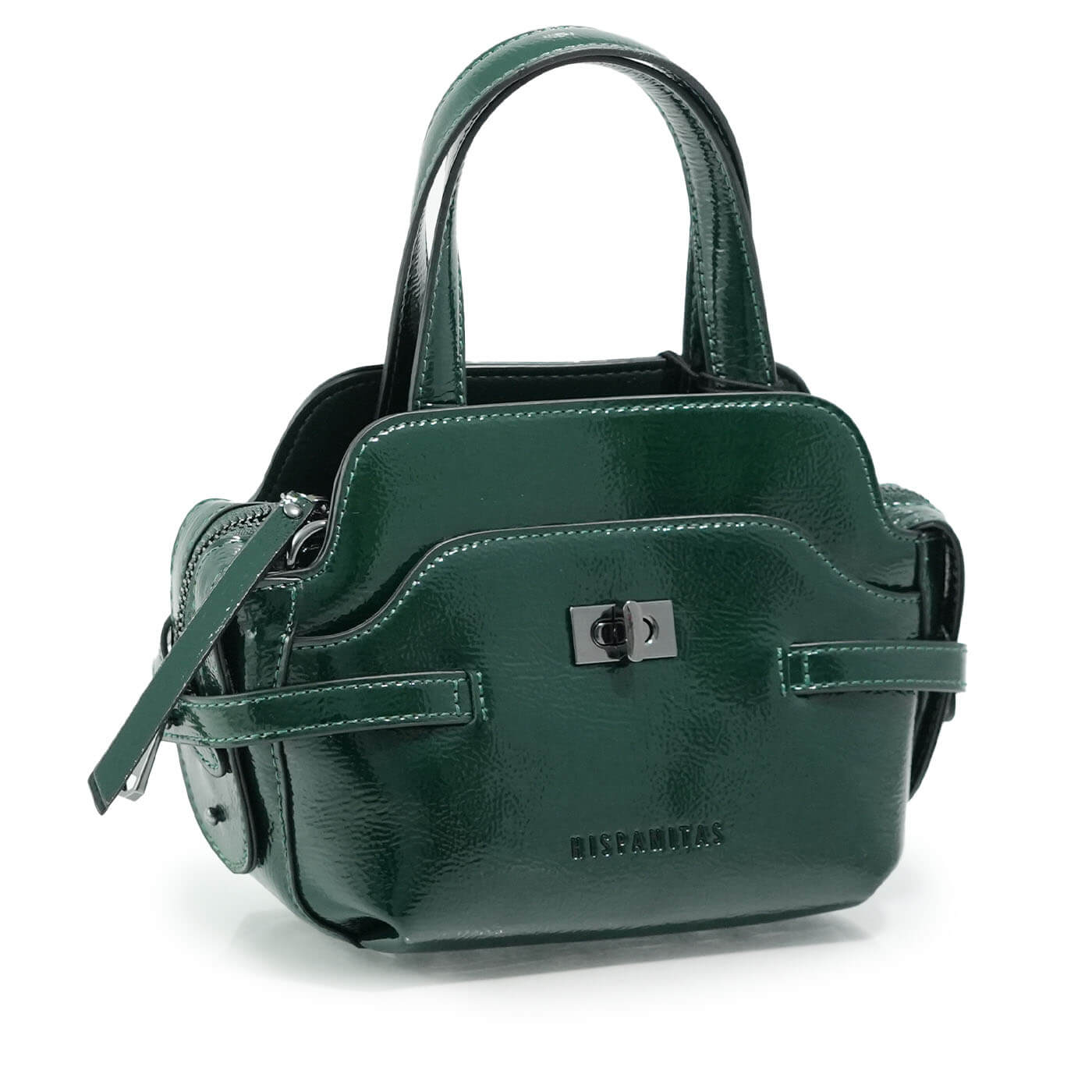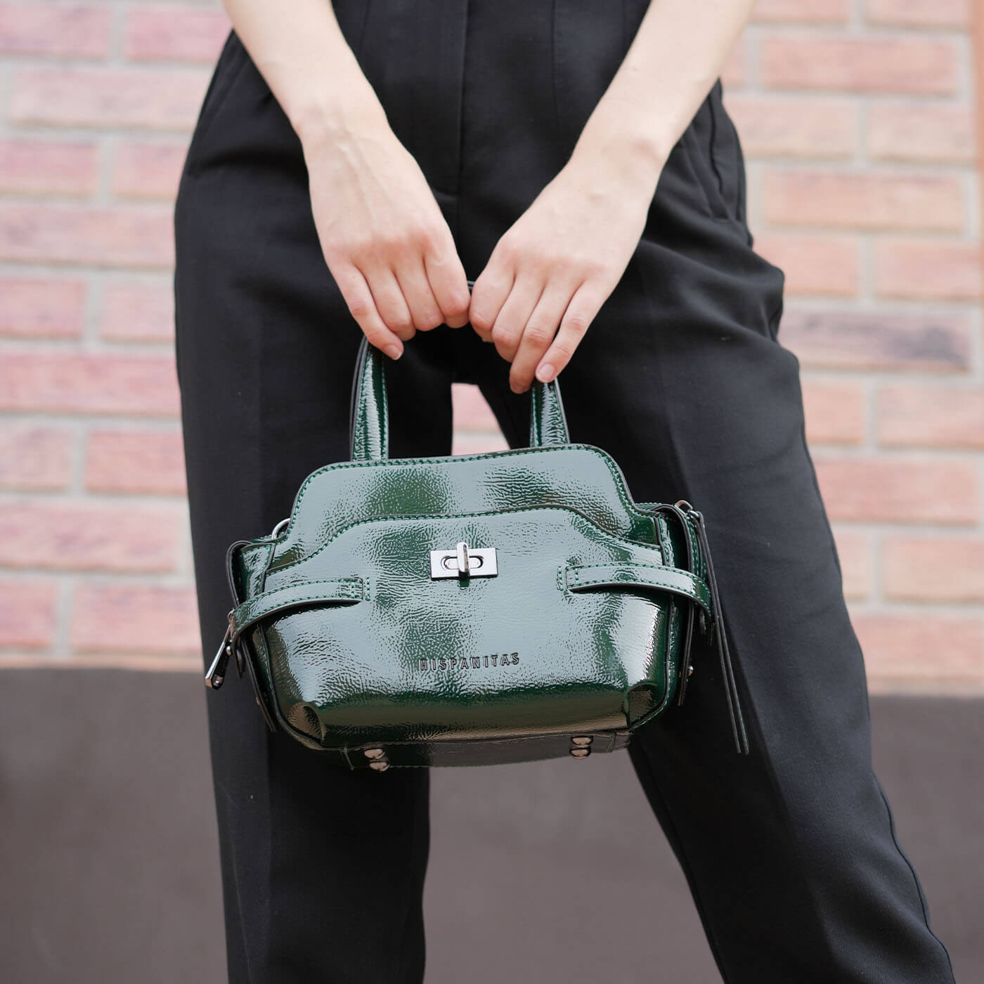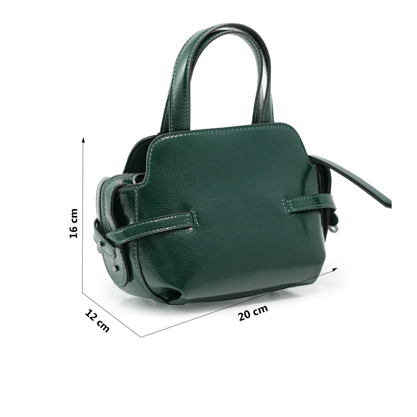 Geanta este prevazuta cu doua barete ce permite purtarea in mana si o curea ce permite purtarea pe umar
