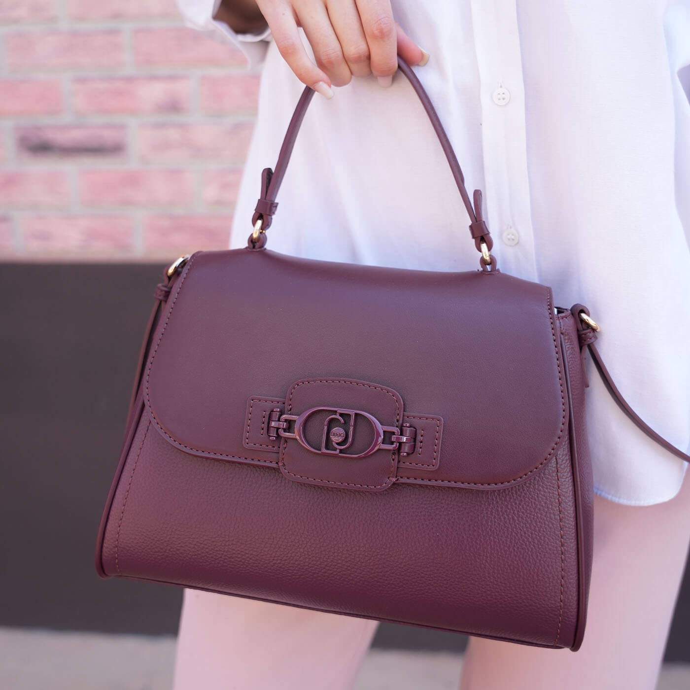 Geanta este prevazuta cu o curea pentru a fi purtata in mana sau pe brat si o curea detasabila ce permite purtarea pe umar