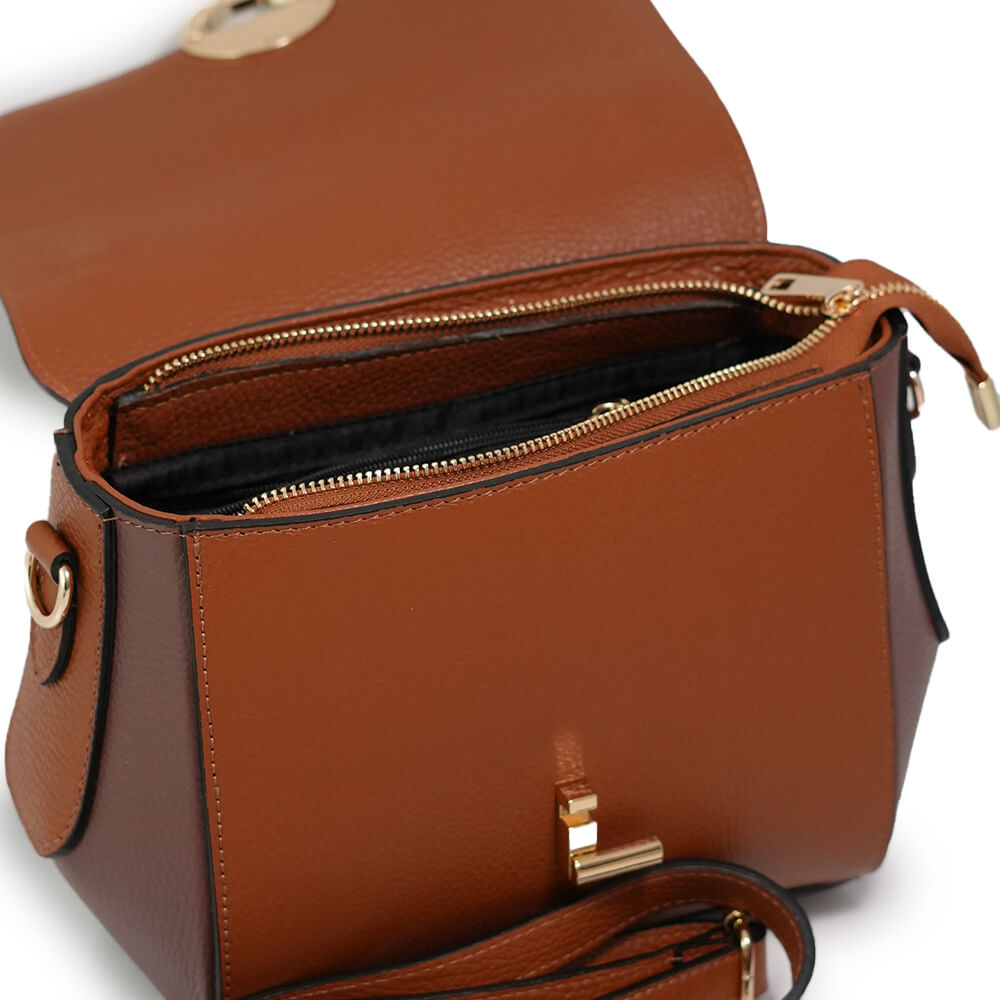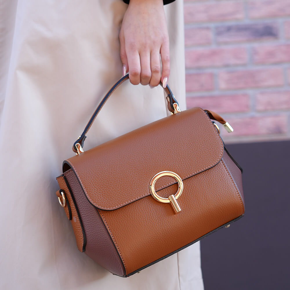 Geanta este prevazuta cu o curea din piele pentru a fi purtata in mana sau pe brat si o curea detasabila ce permite purtarea pe umar