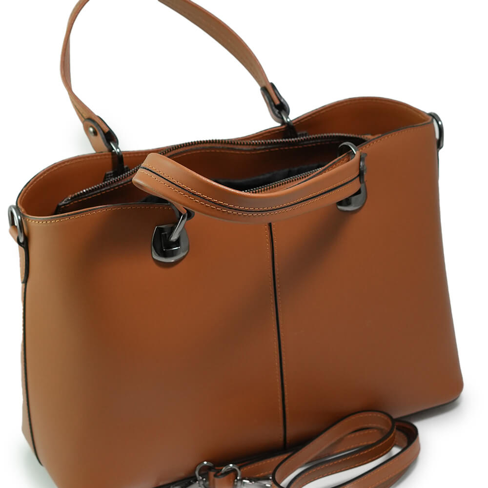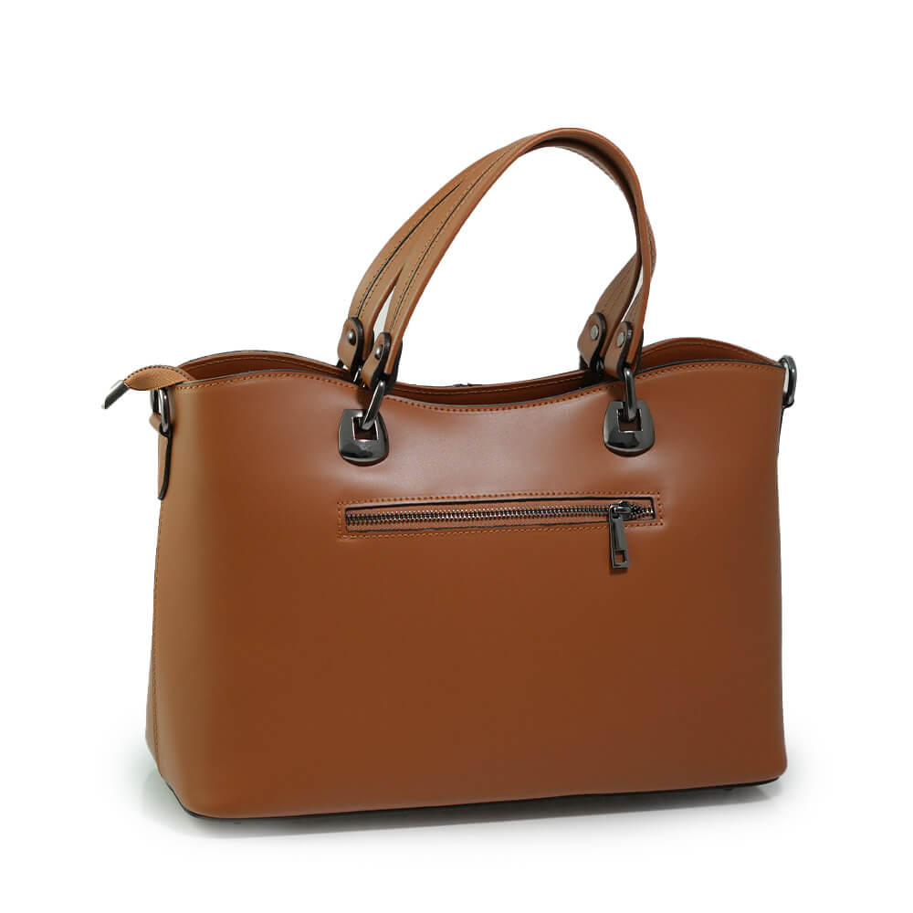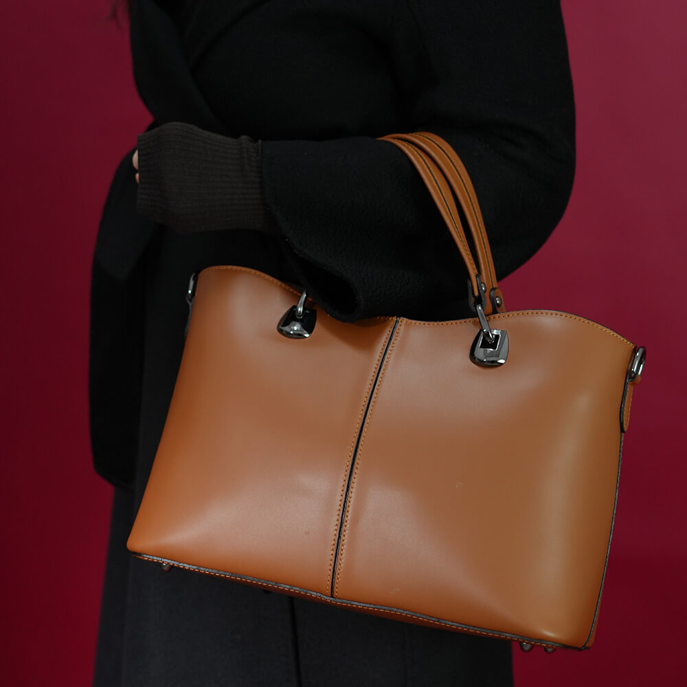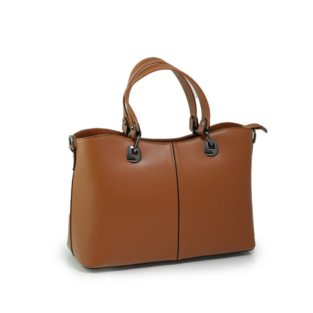 Geanta este prevazuta cu doua cureluse din piele pentru a fi purtata in mana si o curea detasabila ce permite purtarea si pe umar.