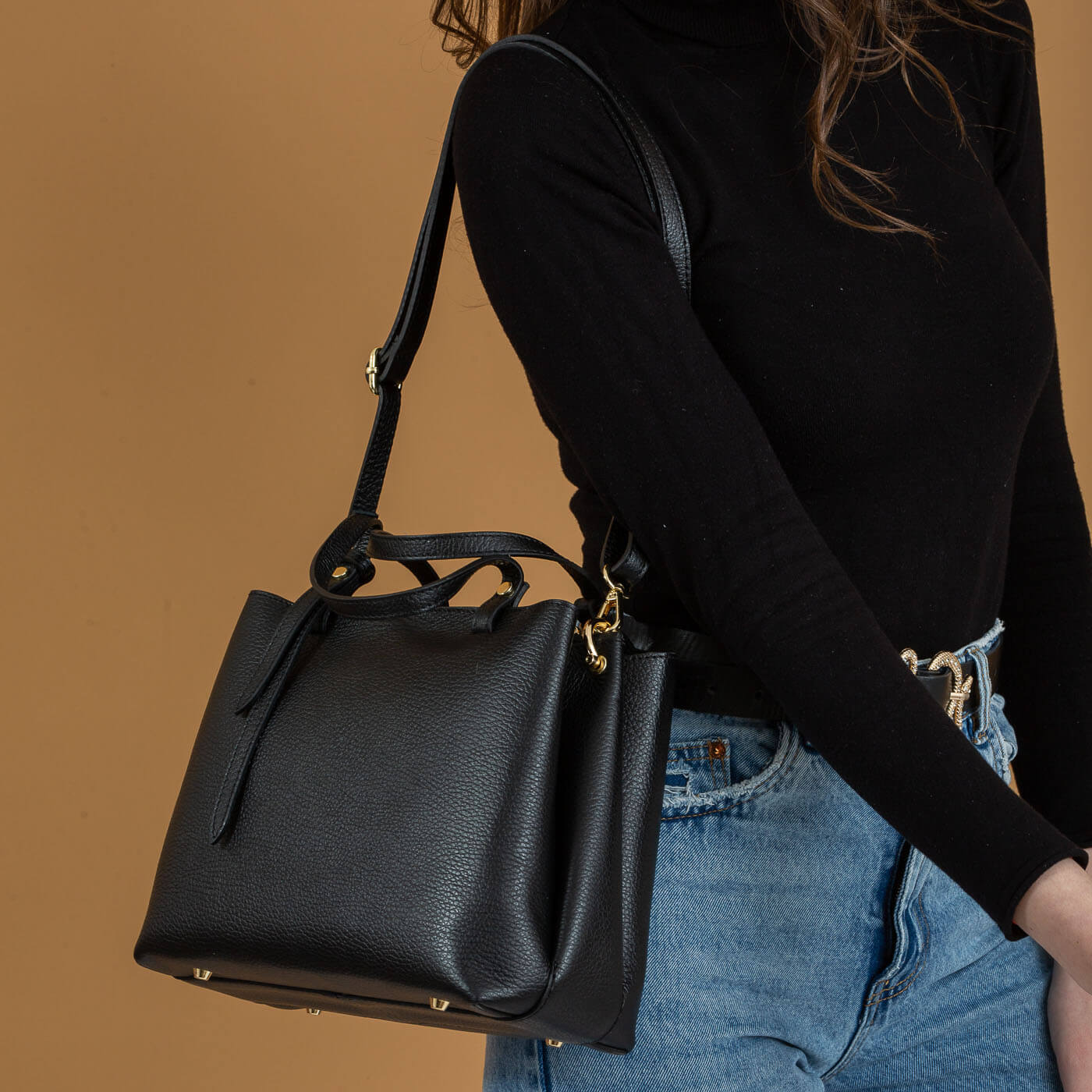 Geanta Capricia, din piele naturala de inalta calitate, prezinta un design elegant, ideal pentru a completa tinuta zilnica cu un strop de rafinament. Cu doua manere si o bareta detasabila, permite purtarea in mai multe stiluri, asigurand confort si adaptabilitate. Interiorul bine compartimentat ofera spatiu amplu pentru esentiale, facand-o nu numai stilata, dar si practica pentru nevoile de zi cu zi.