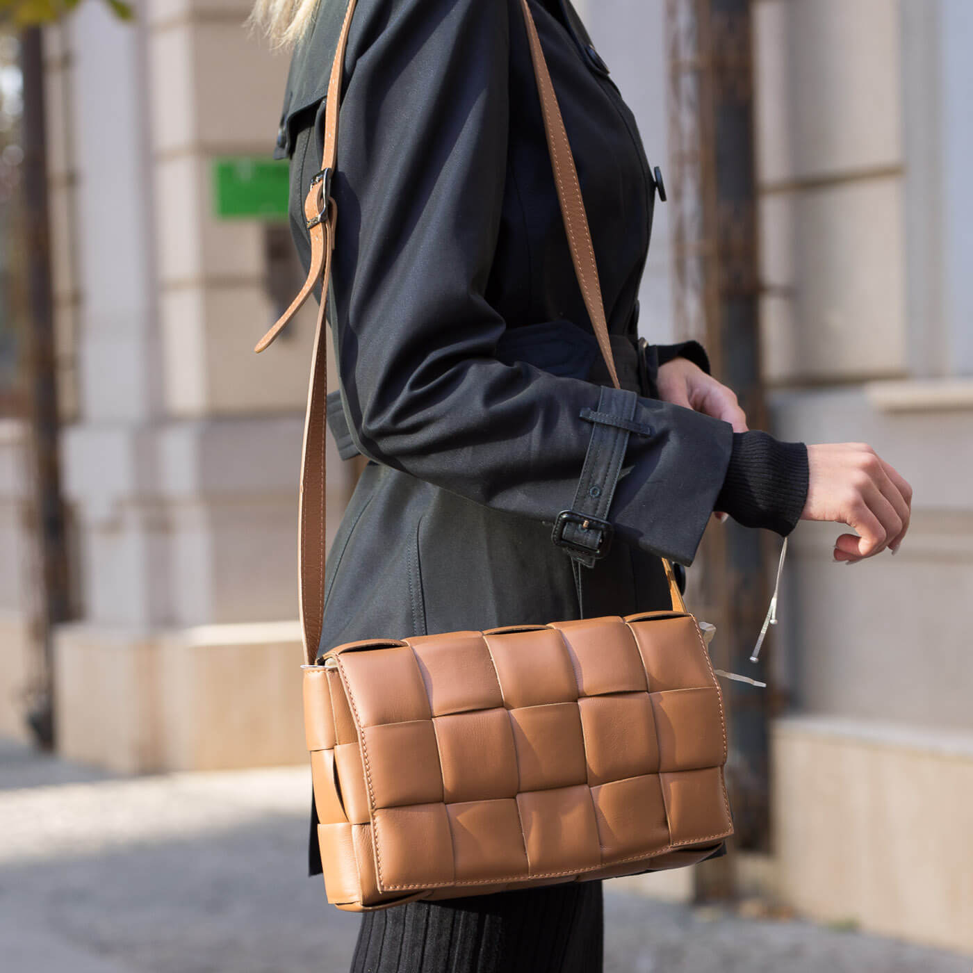 Geanta este prevazuta cu o bareta de umar din piele, reglabila.