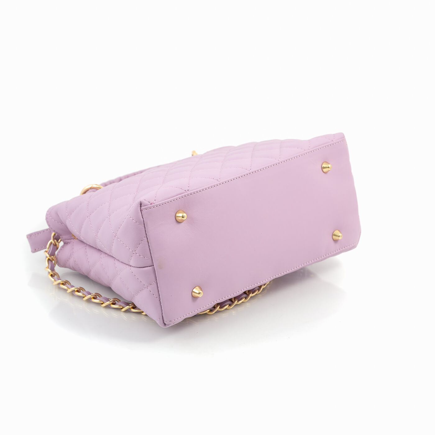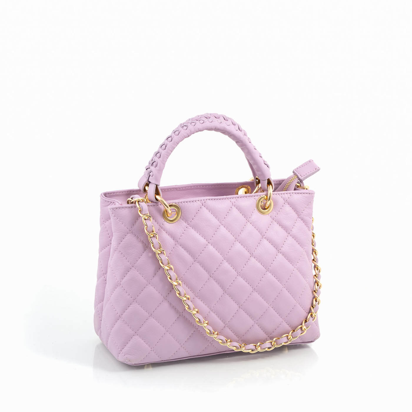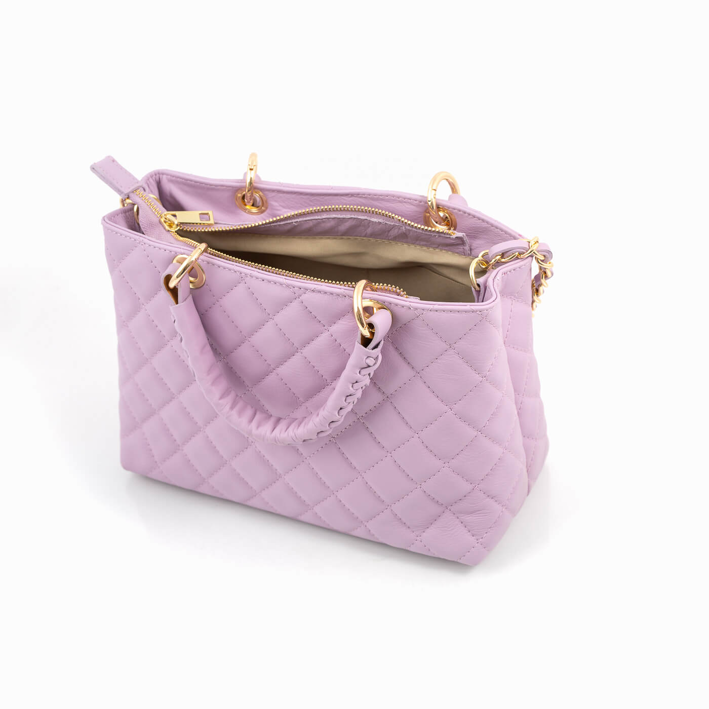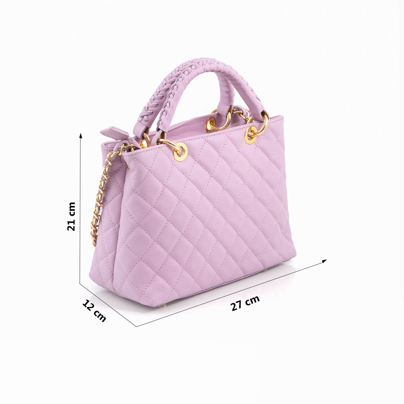 Geanta este prevazuta cu doua manere ce permite purtarea in mana, o bareta de umar scurta metalica si o curea lunga din piele detasabila.