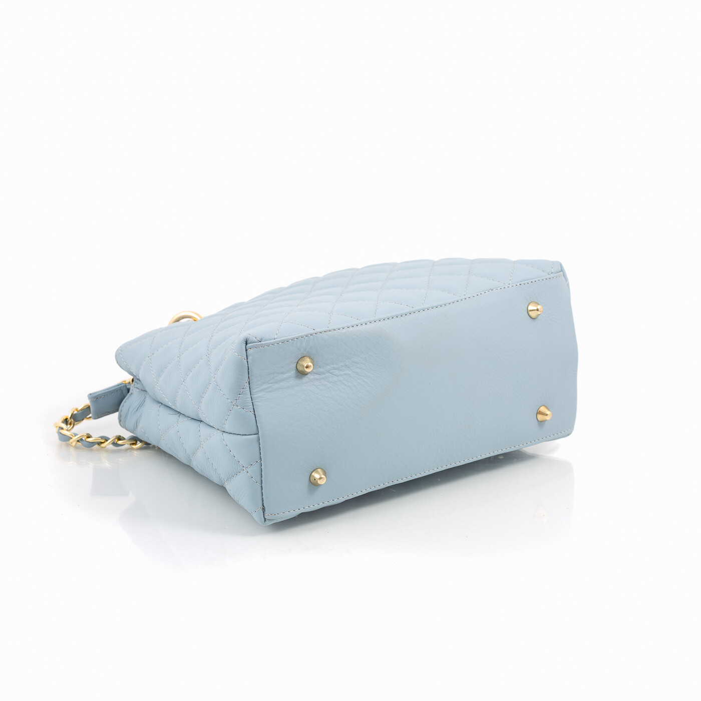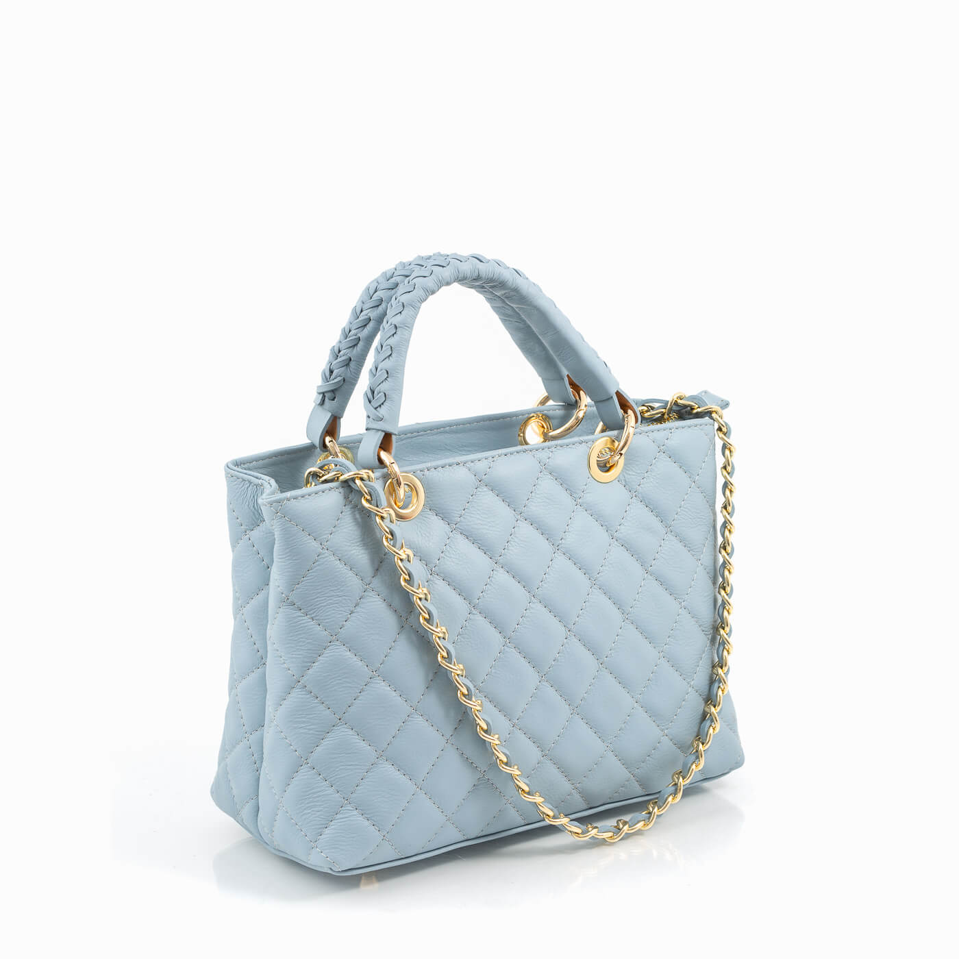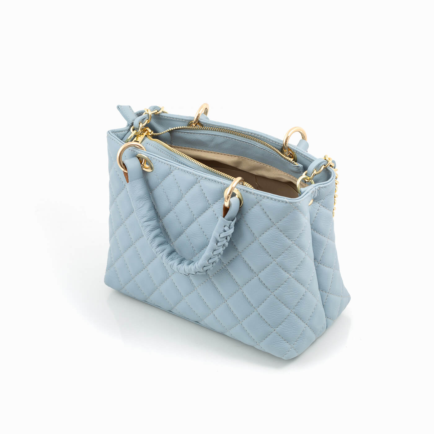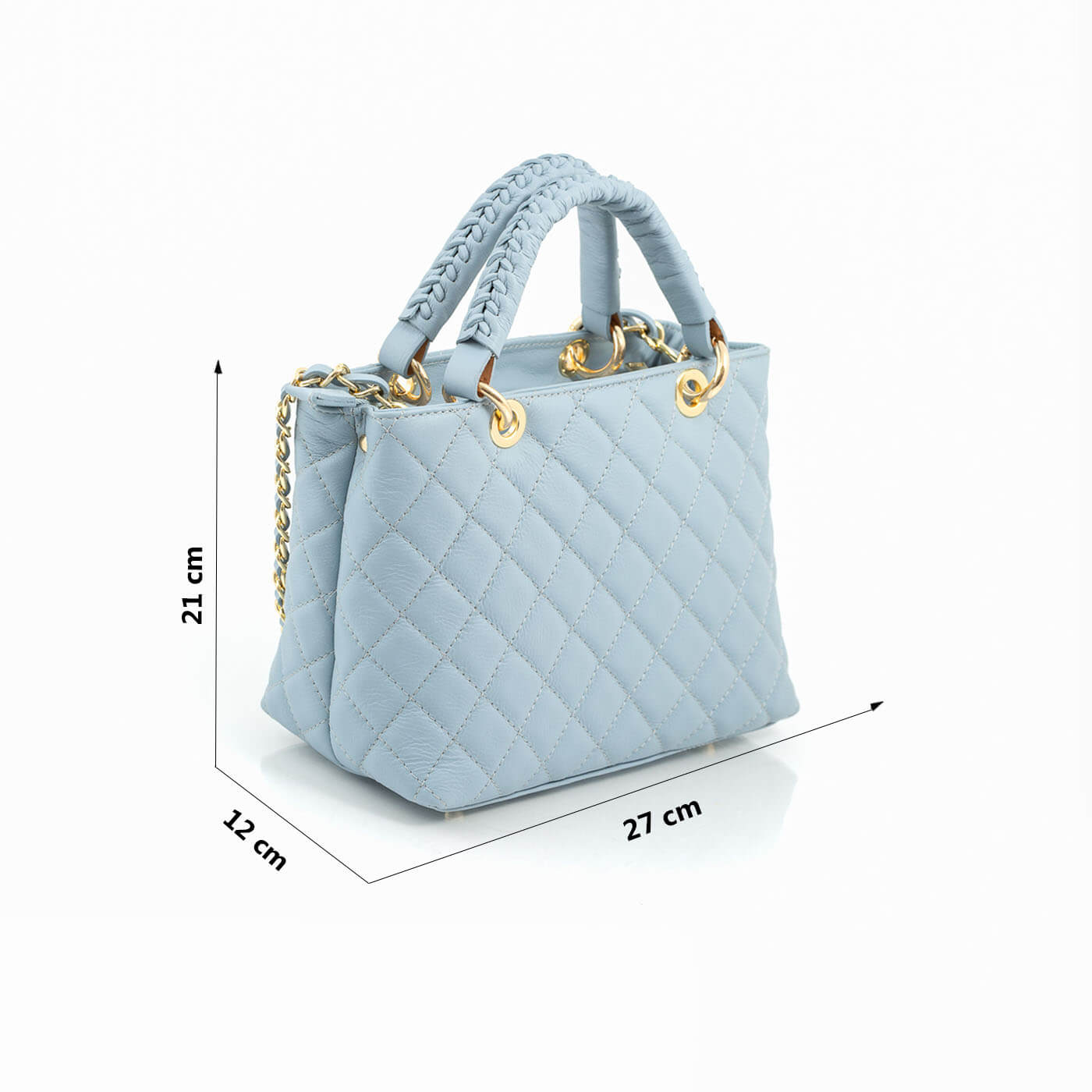 Geanta este prevazuta cu doua manere ce permite purtarea in mana, o bareta de umar scurta metalica si o curea lunga din piele detasabila.