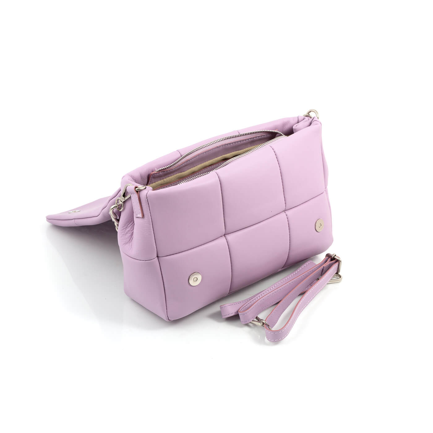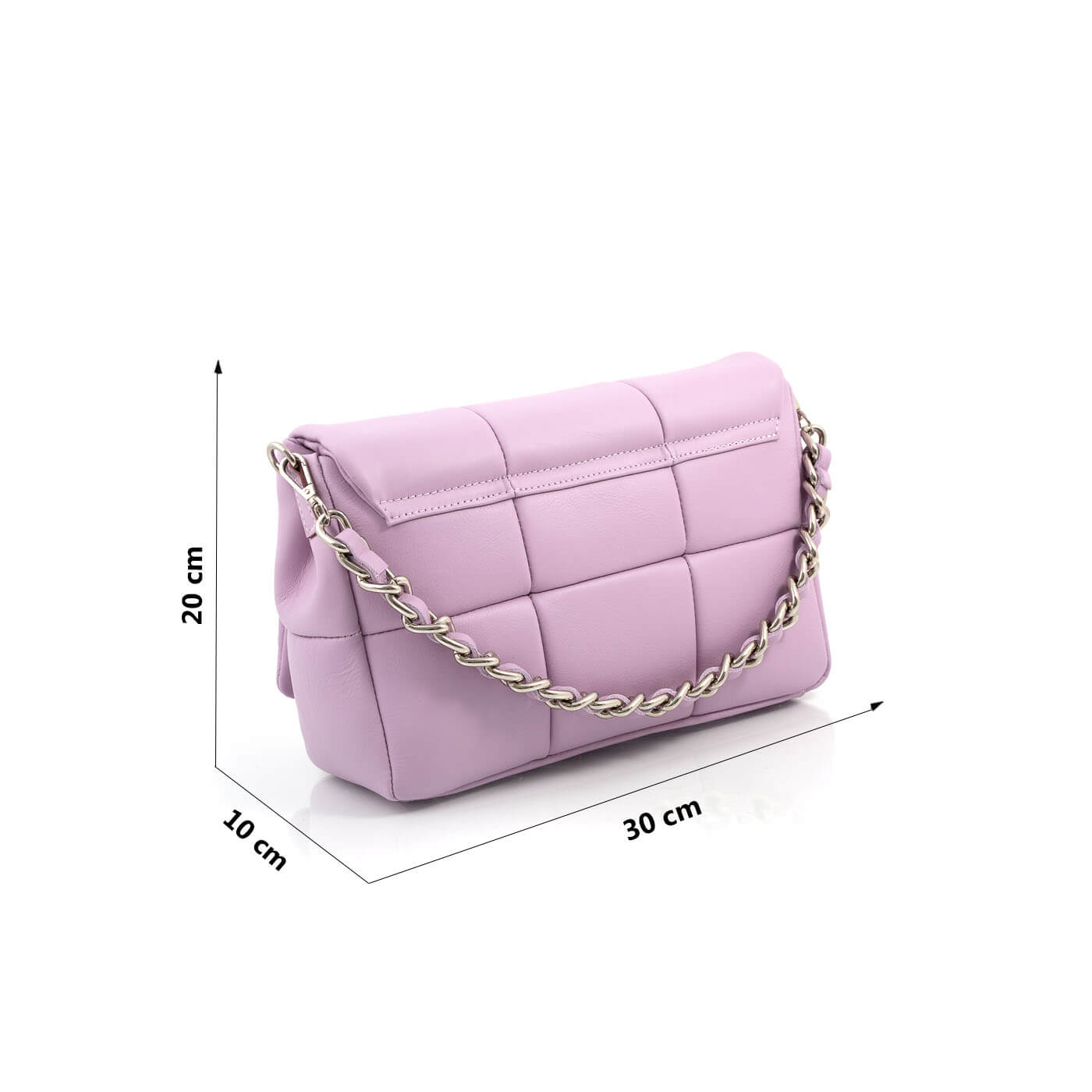 Geanta este prevazuta cu doua barete de umar care se pot schimba, o bareta metalica si una de piele.