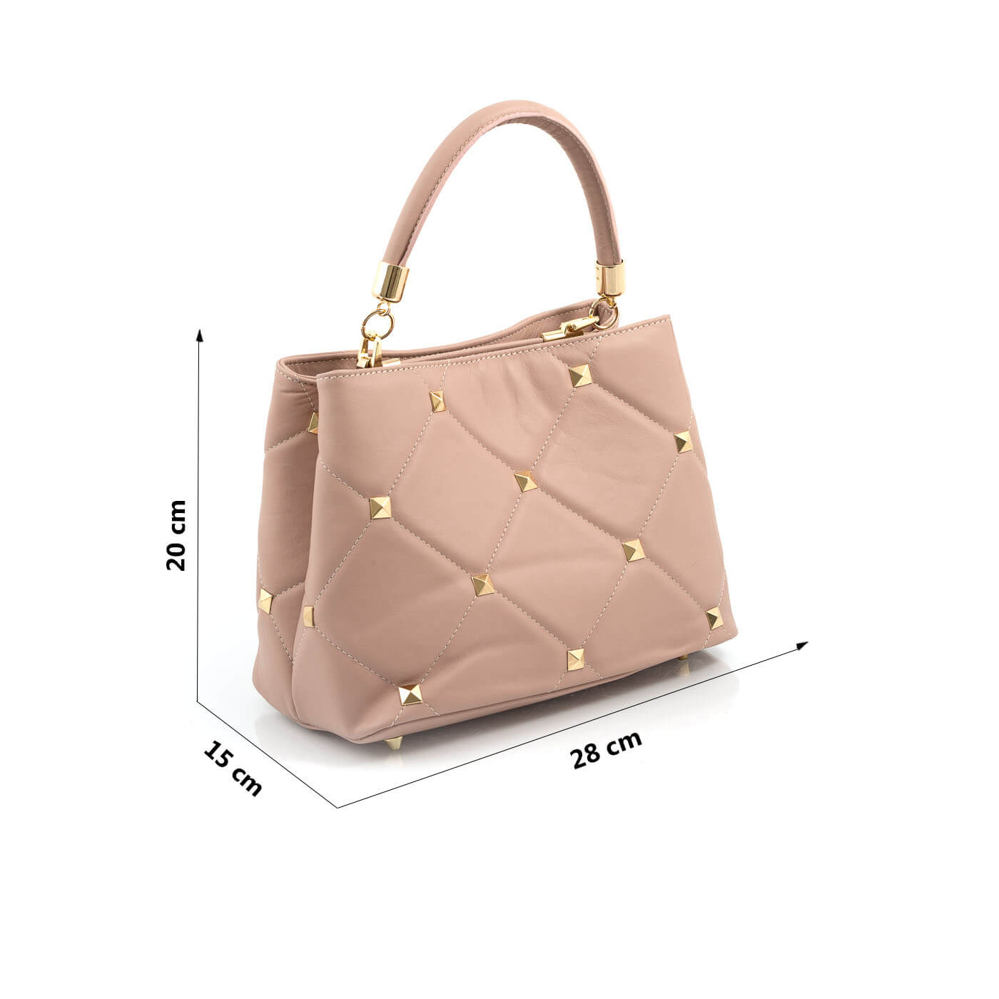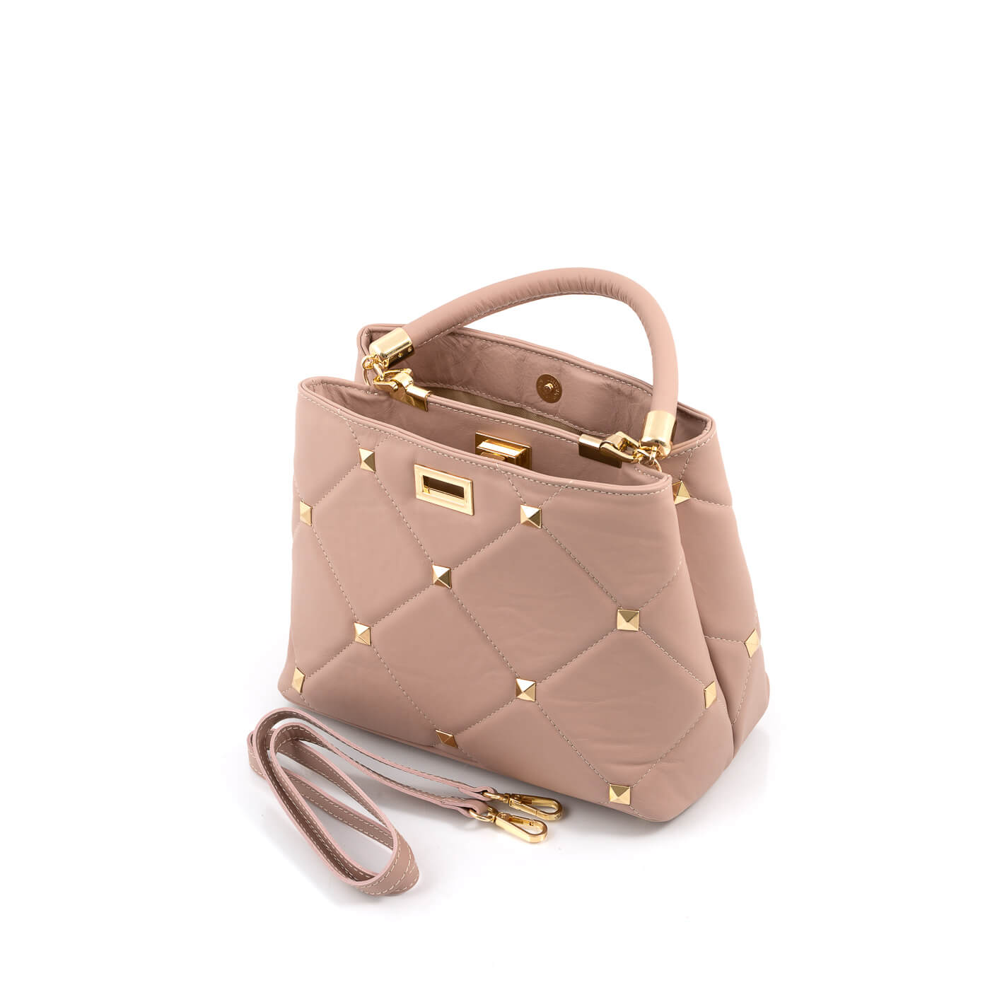 Geanta este prevazuta cu maner ce permite purtarea in mana si o curea lunga din piele, detasabila.