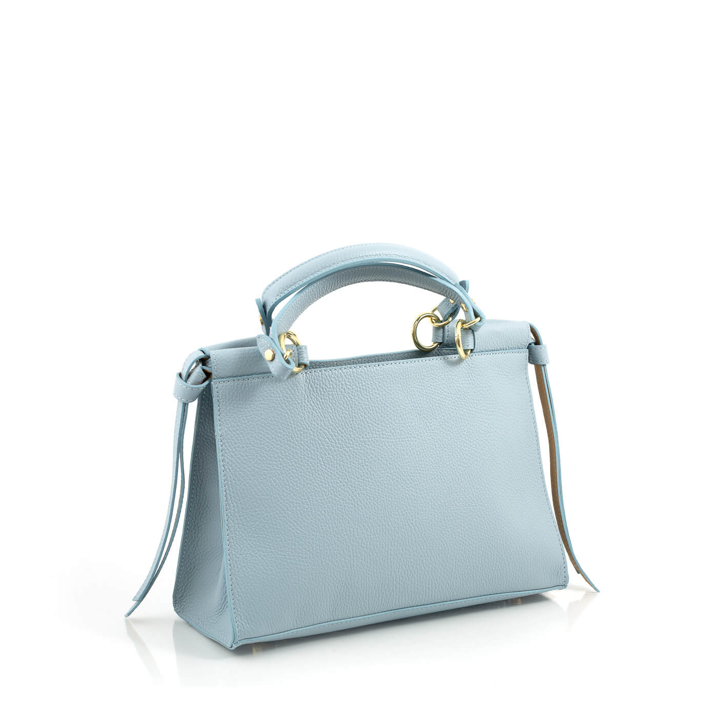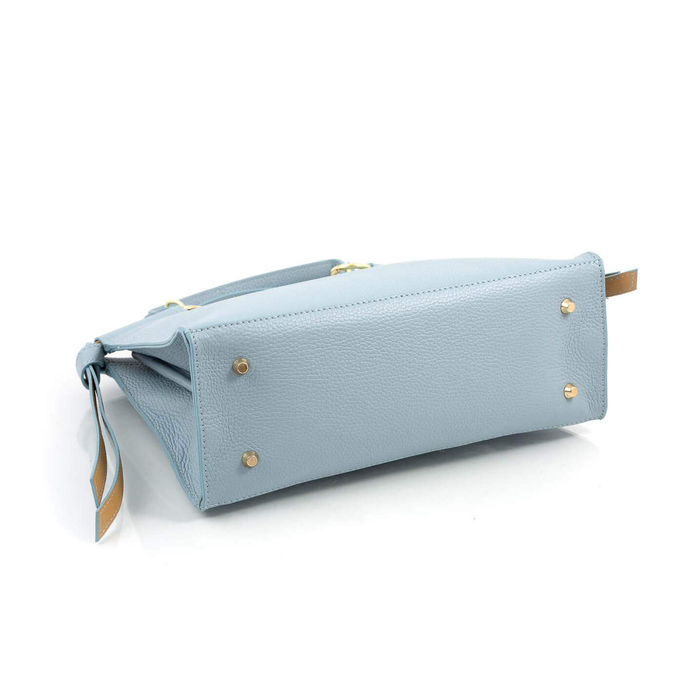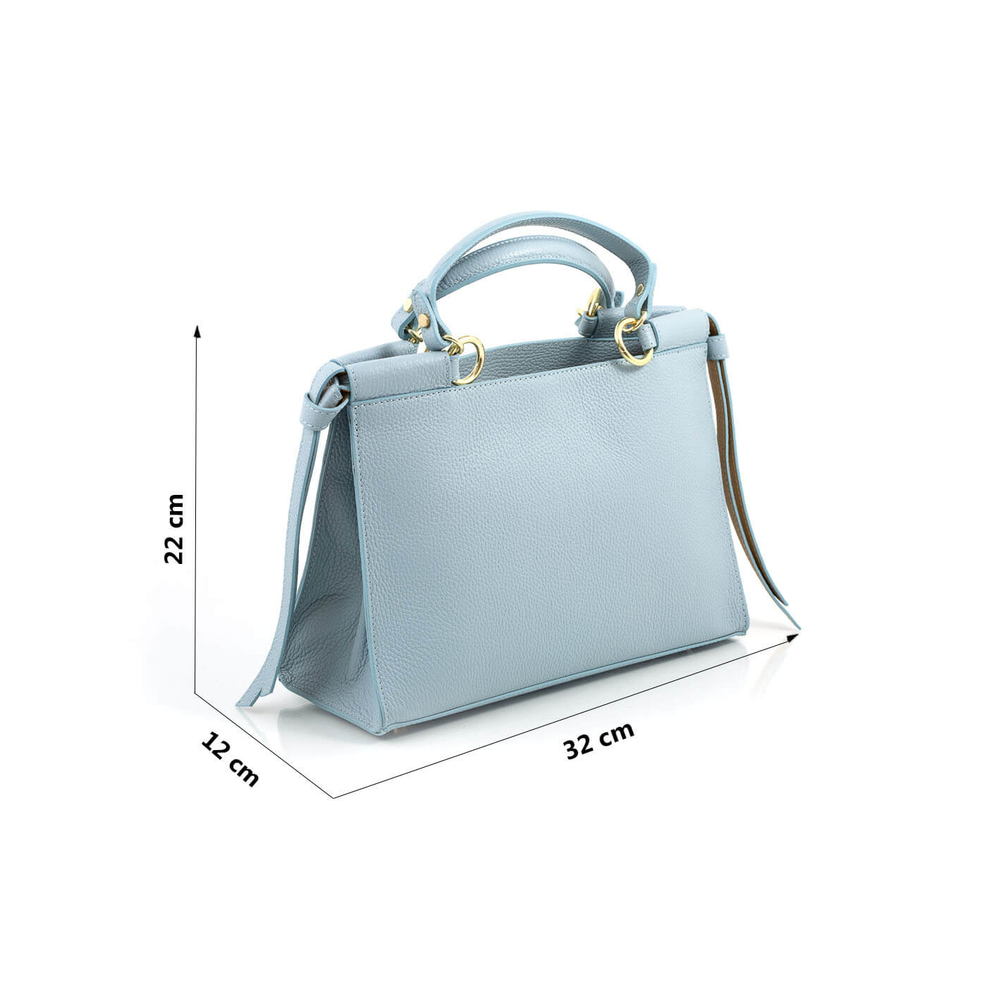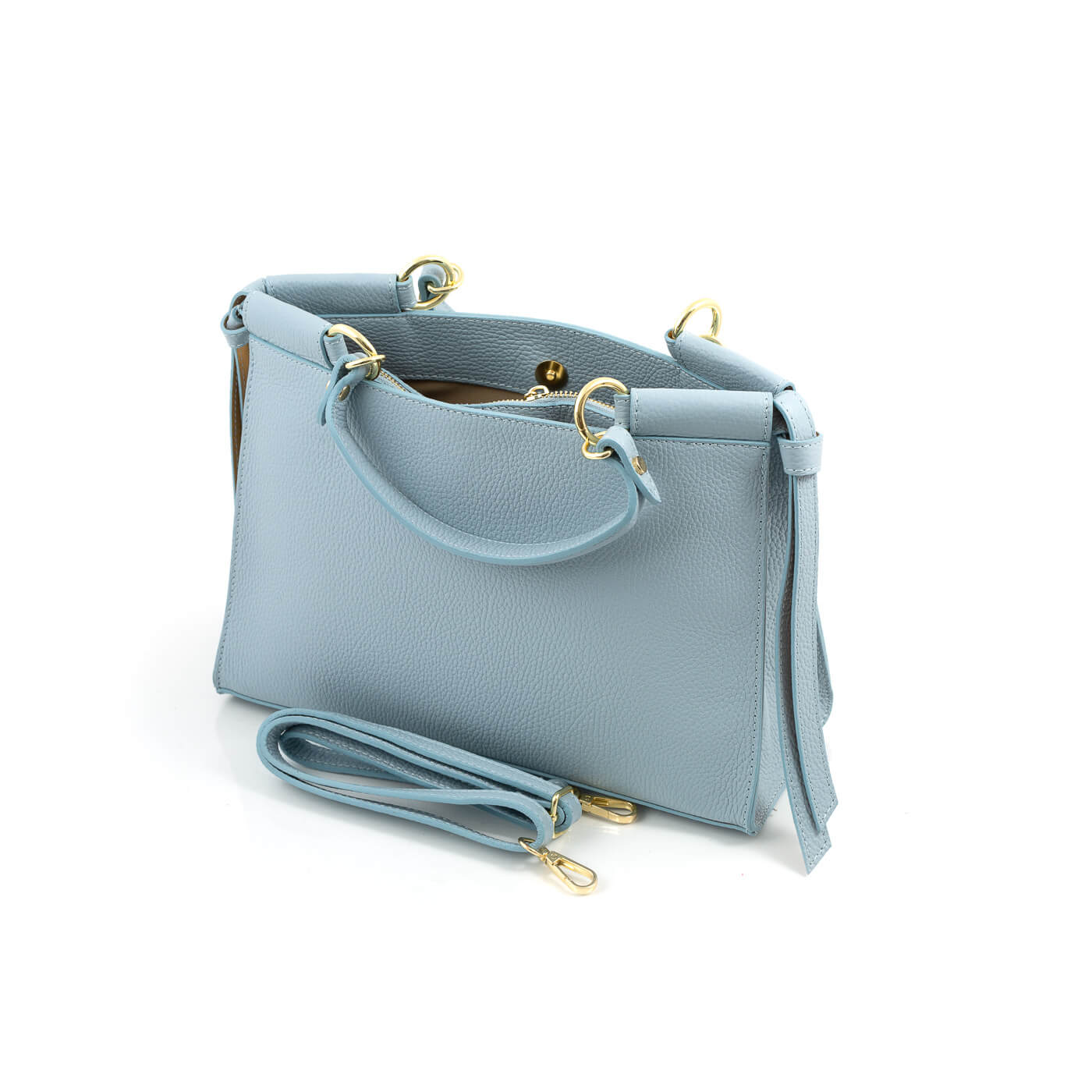 Geanta este prevazuta cu doua cureluse din piele pentru a fi purtata in mana si o curea detasabila ce permite purtarea si pe umar.