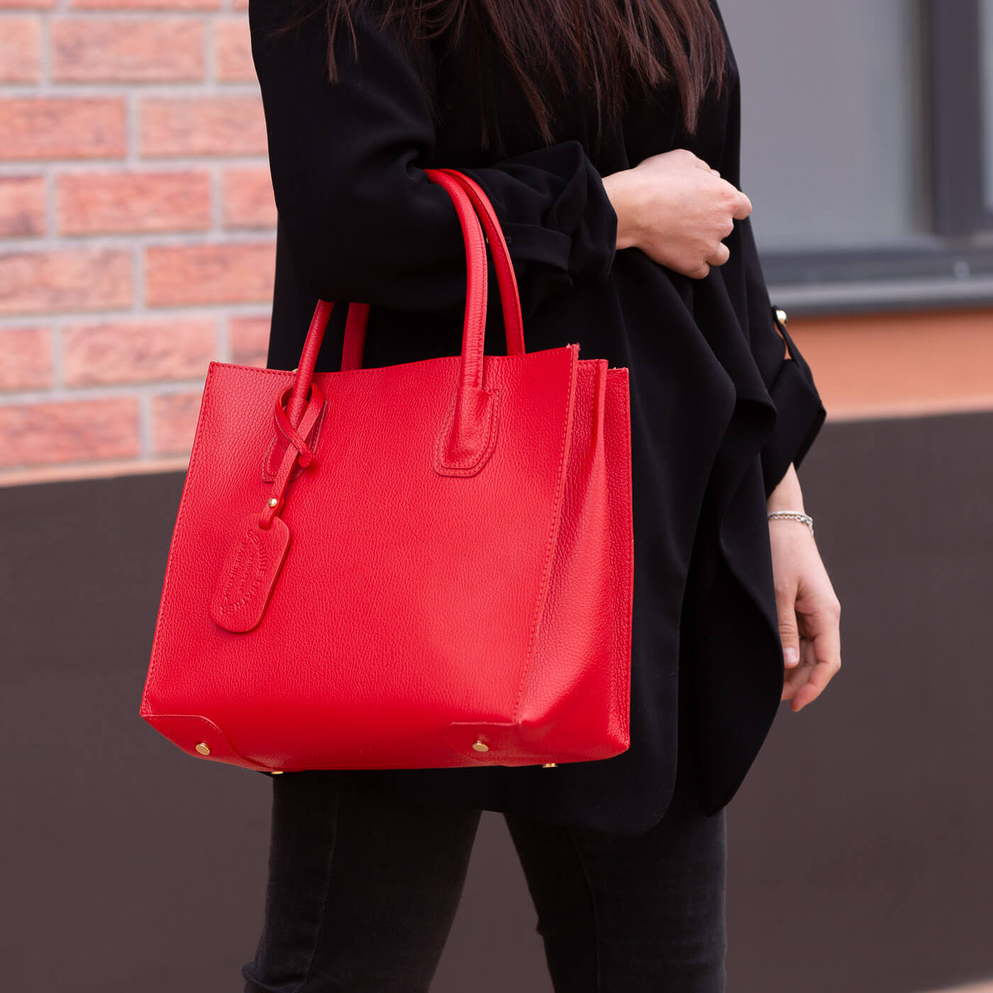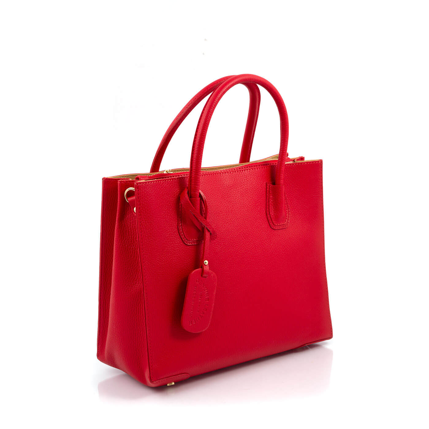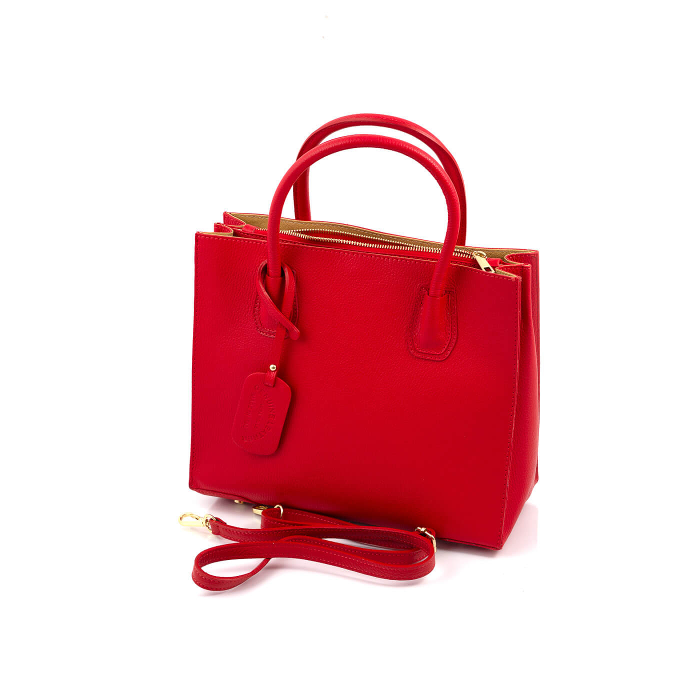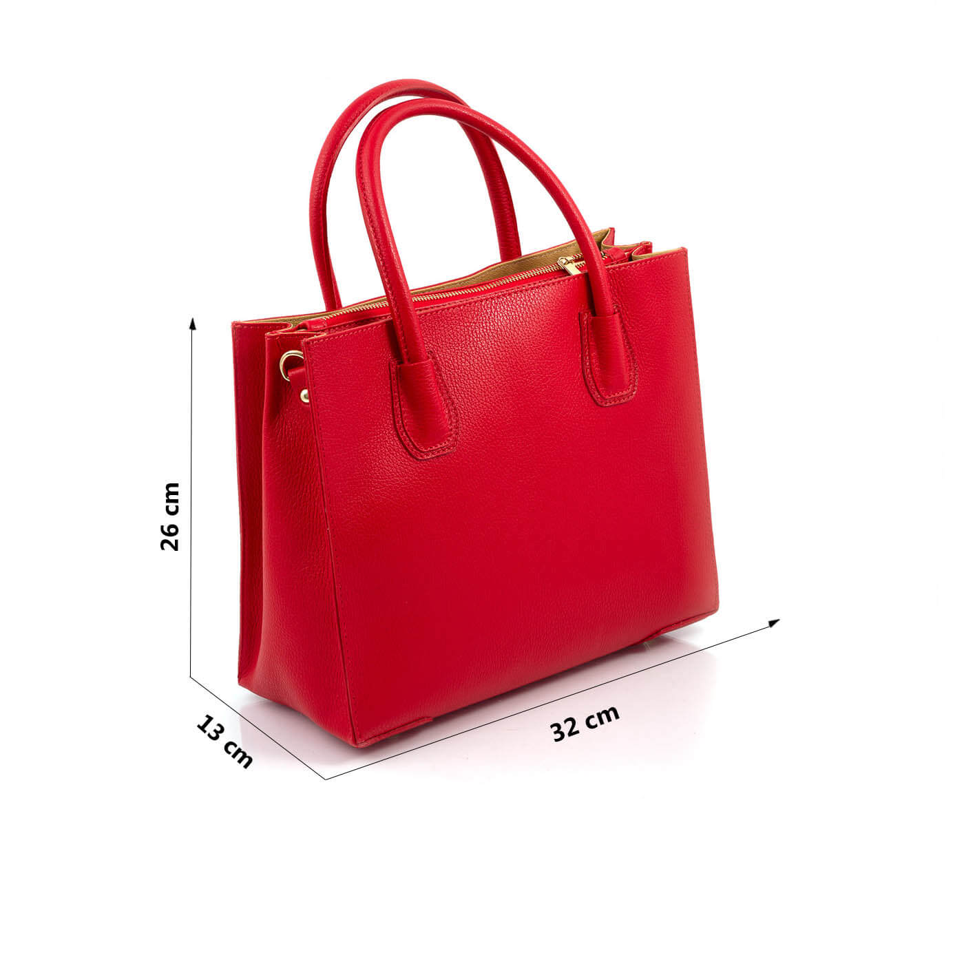 Geanta este prevazuta cu doua cureluse din piele pentru a fi purtata in mana si o curea detasabila ce permite purtarea si pe umar.