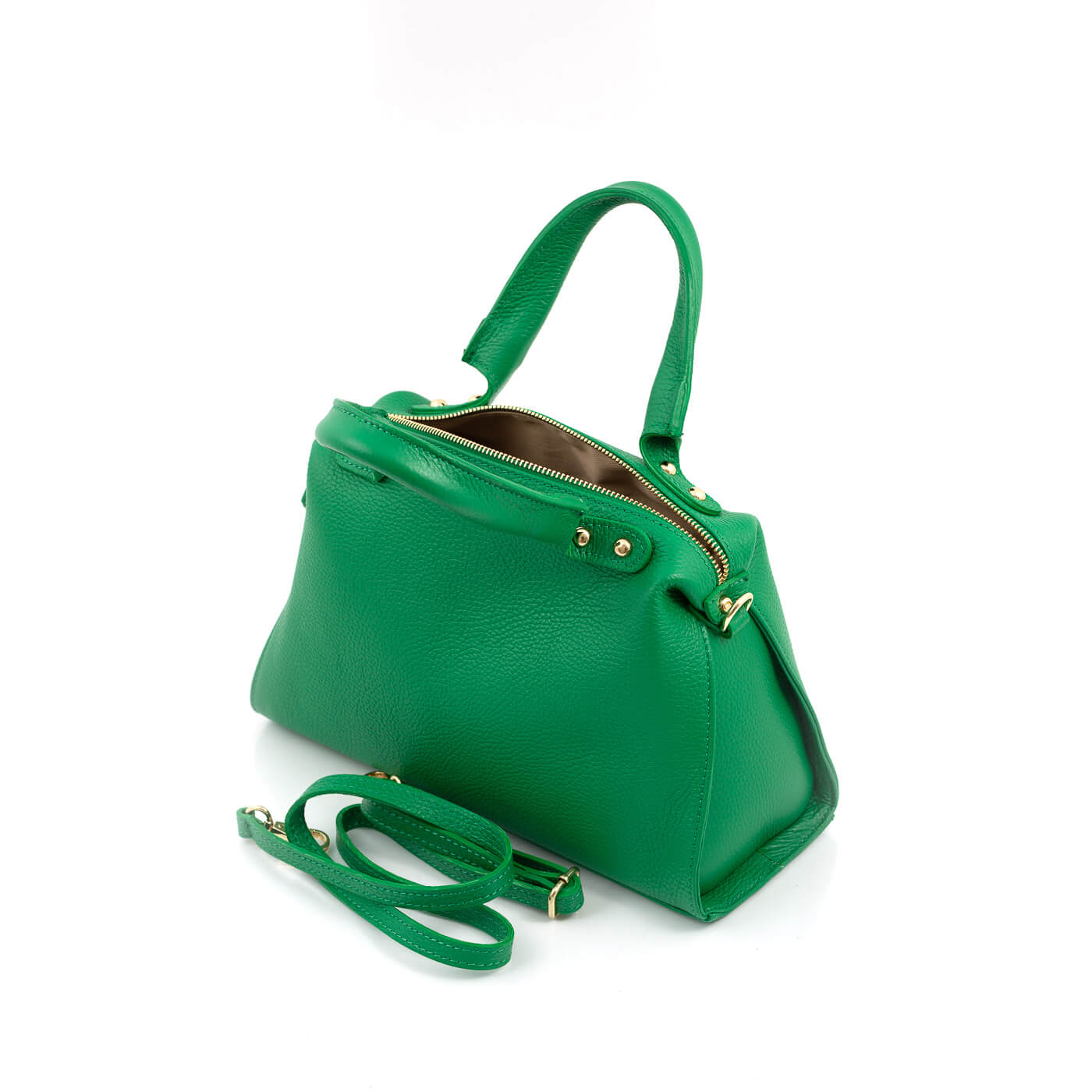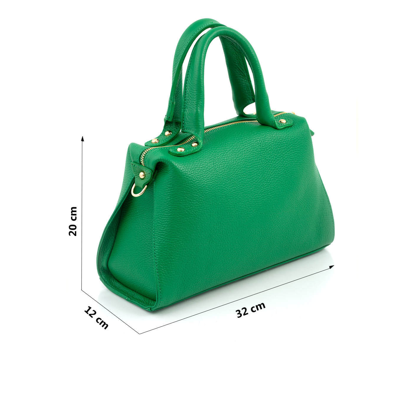 Geanta este prevazuta cu o curelusa din piele, pentru a fi purtata in mana si o curea detasabila, ajustabila, ce permite purtarea si pe umar.