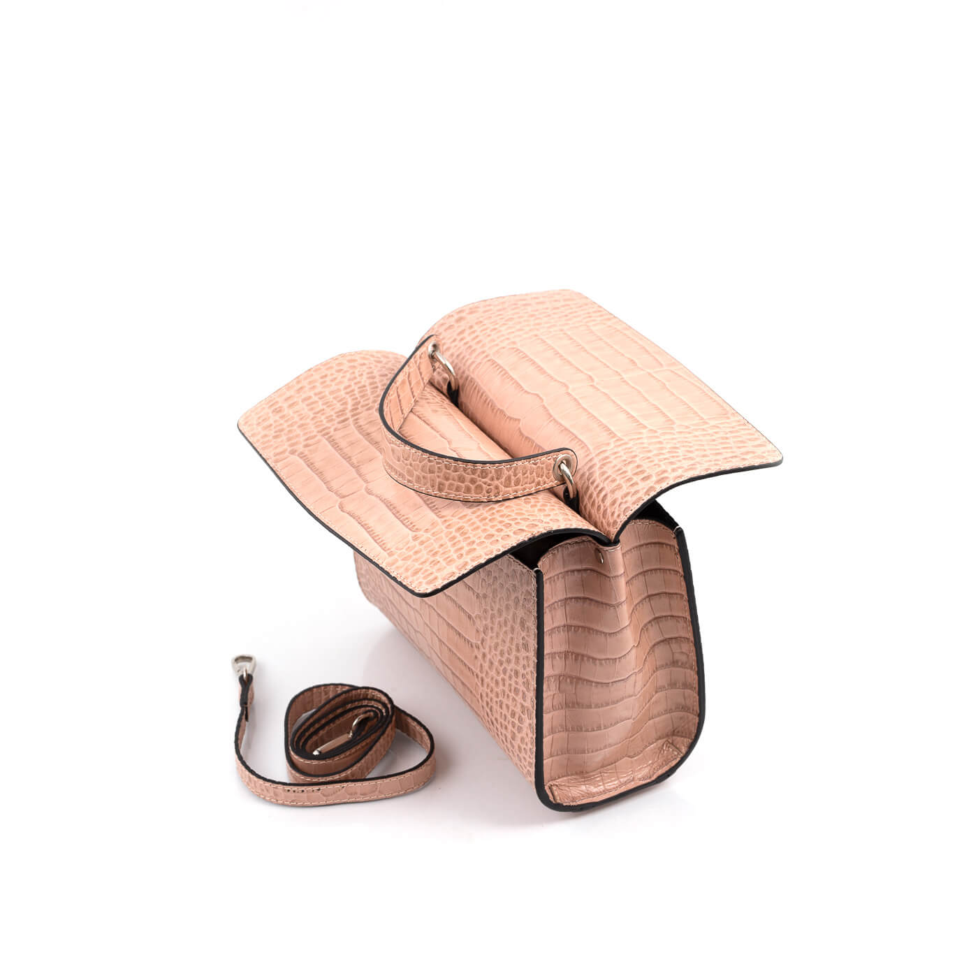 Geanta este prevazuta cu maner pentru a fi purtata in mana si o curea detasabila ce permite purtarea si pe umar.