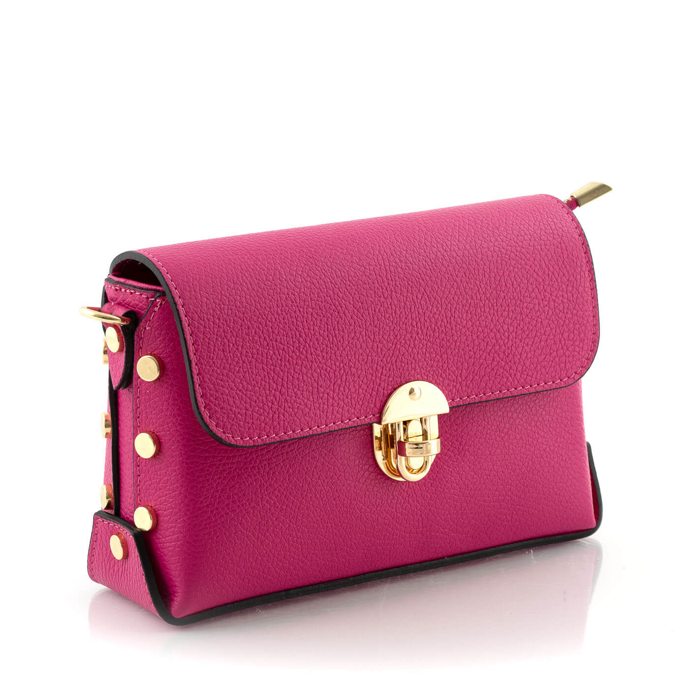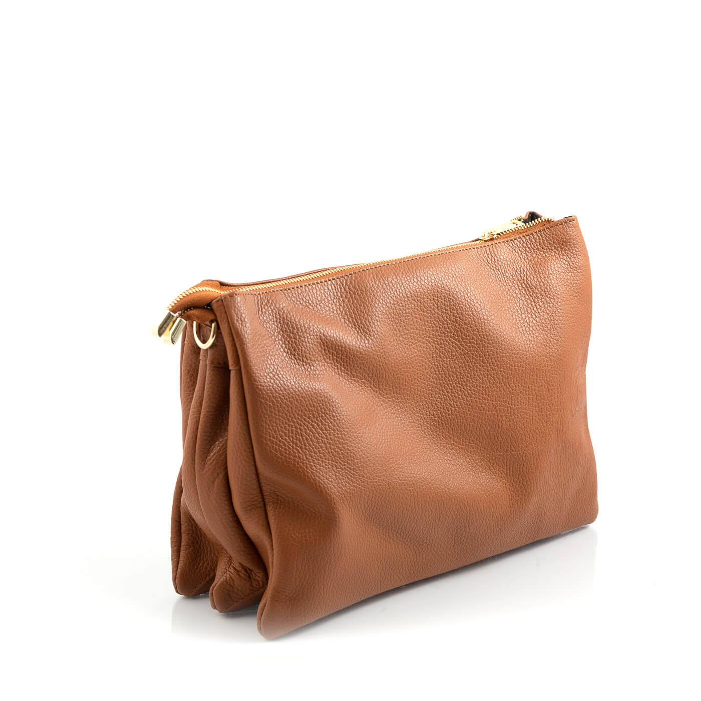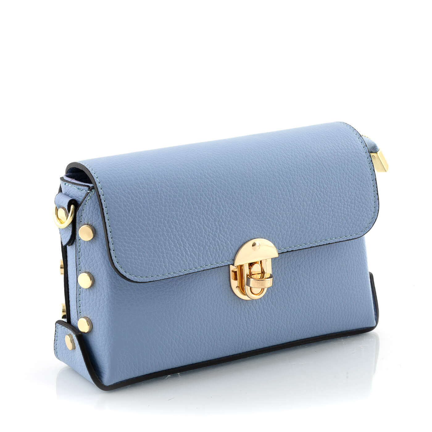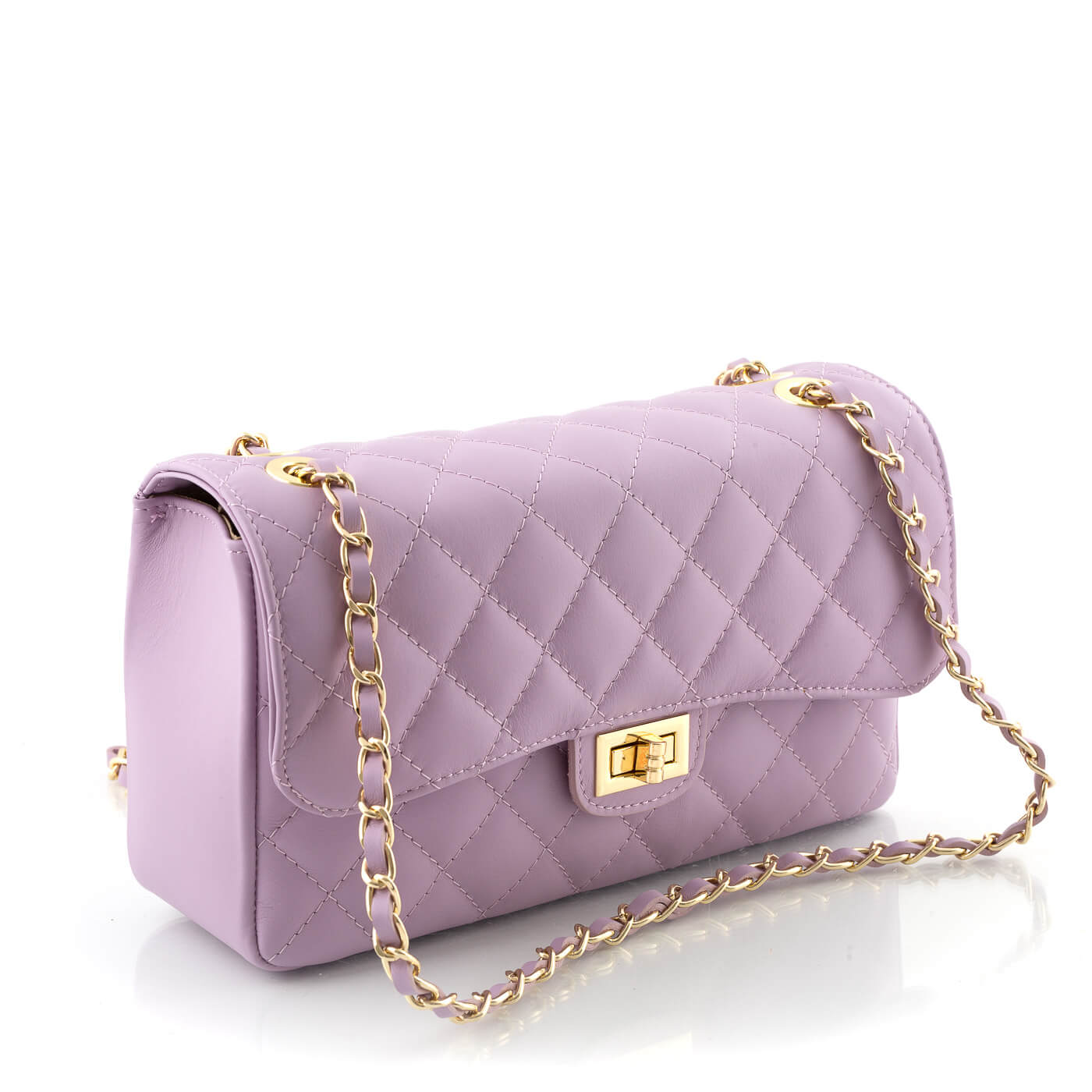 Geanta este prevazuta cu o curelusa metalica pentru a fi purtata in mana si o curea detasabila din piele ce permite purtarea pe umar.