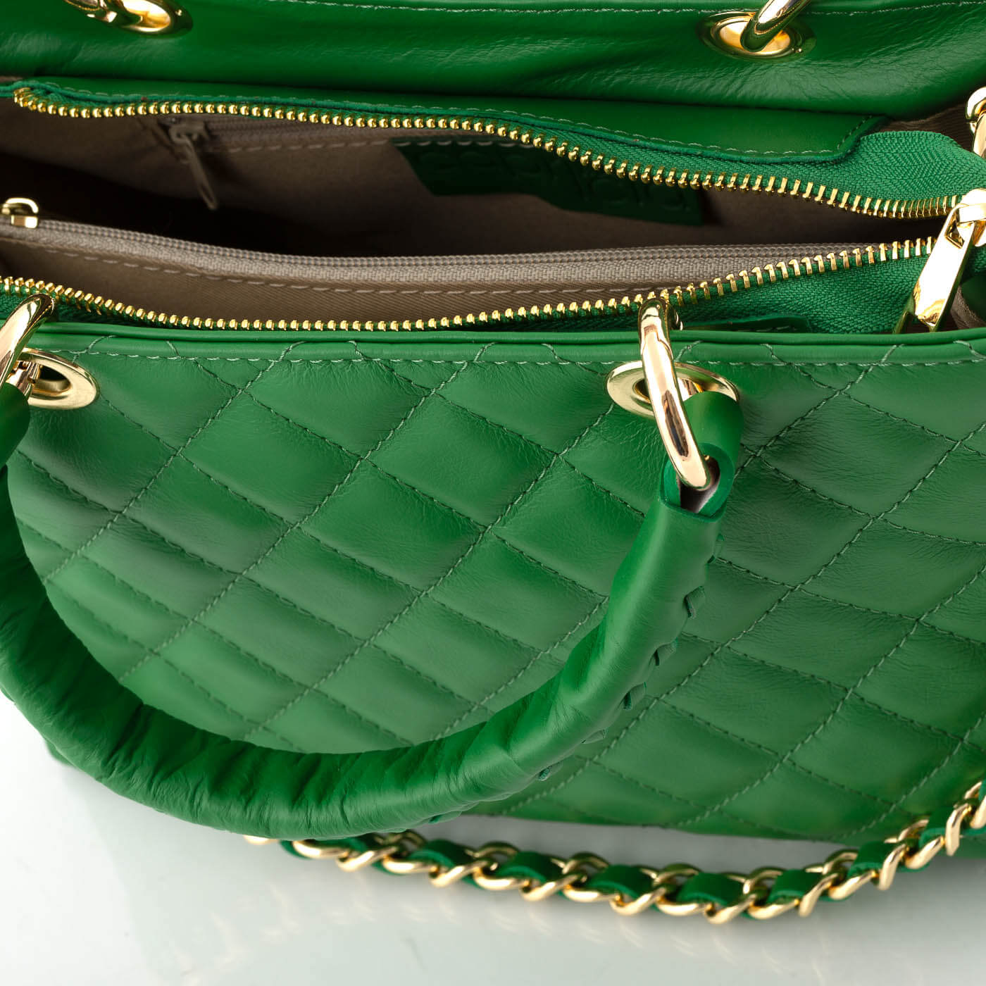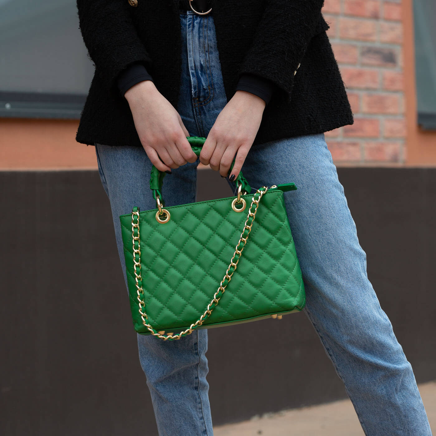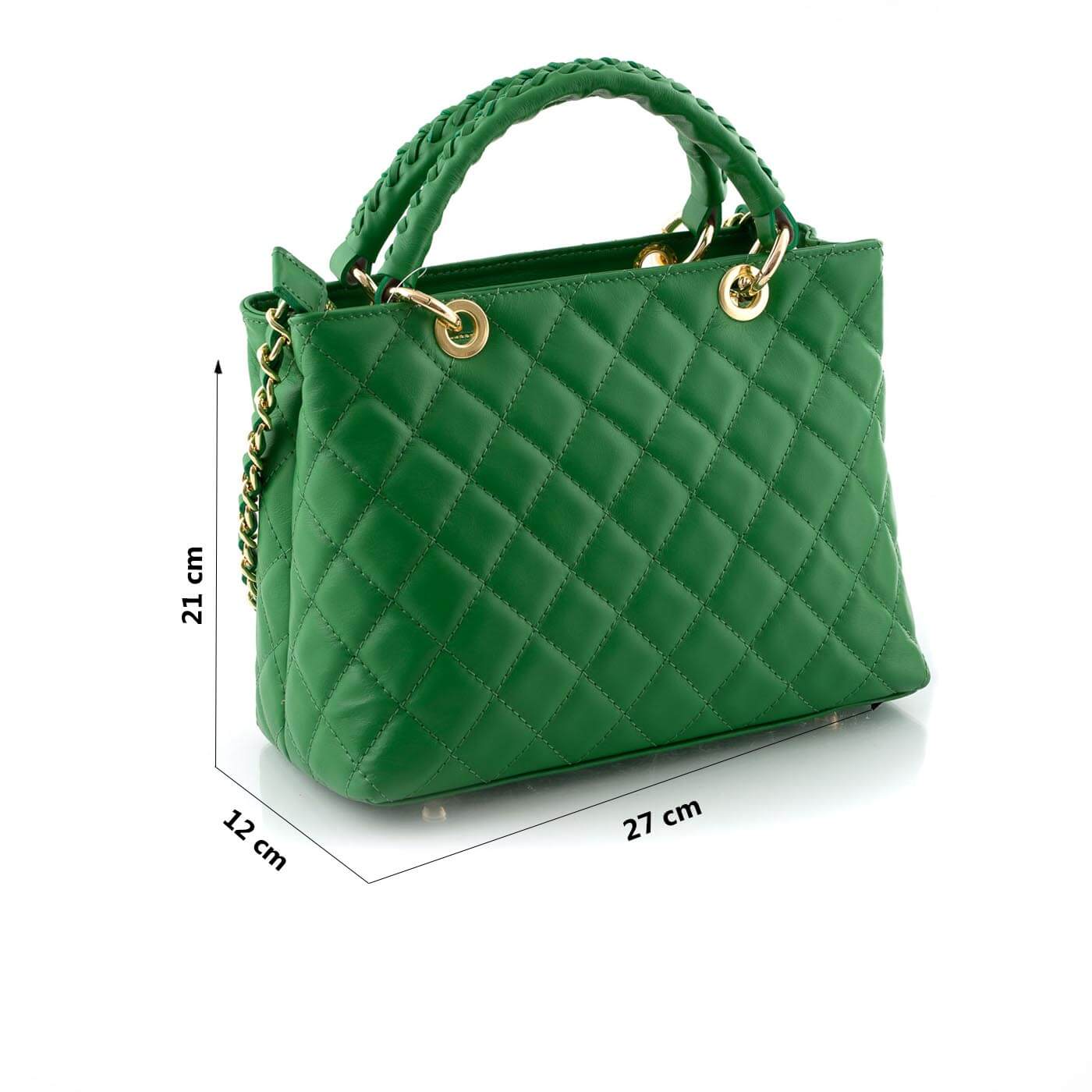 Geanta este prevazuta cu doua manere ce permite purtarea in mana si o bareta de umar metalica