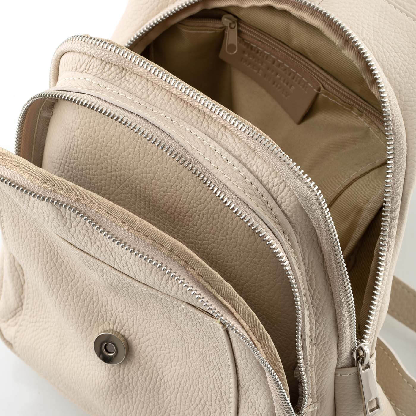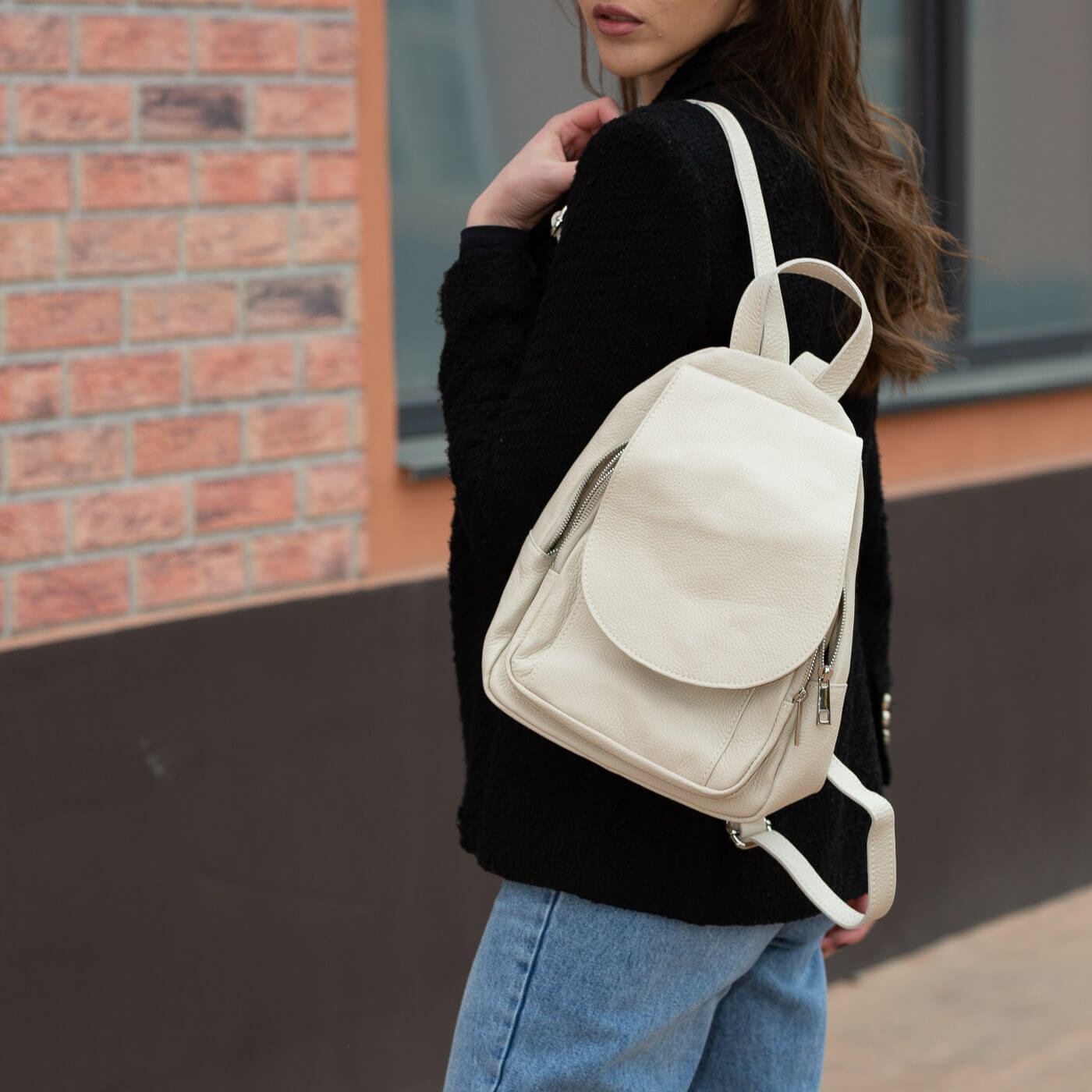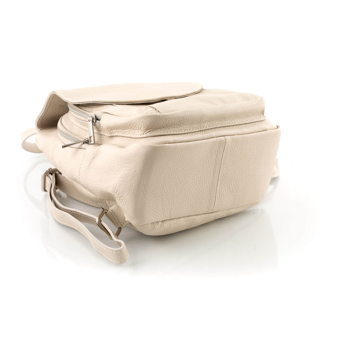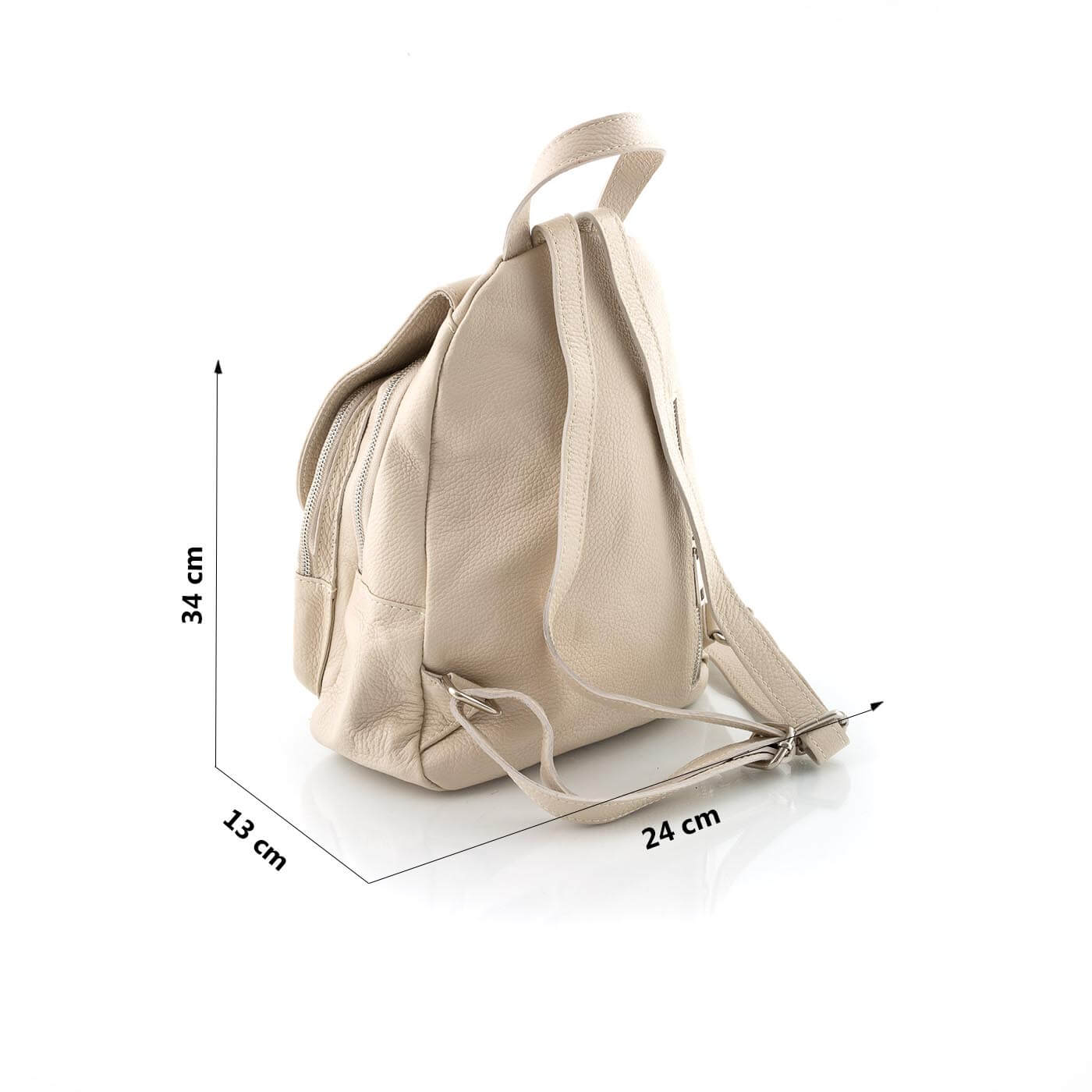 Rucsacul este prevazut cu o bareta din piele pentru a fi purtat in mana sau pe brat si doua barete de umar reglabile.