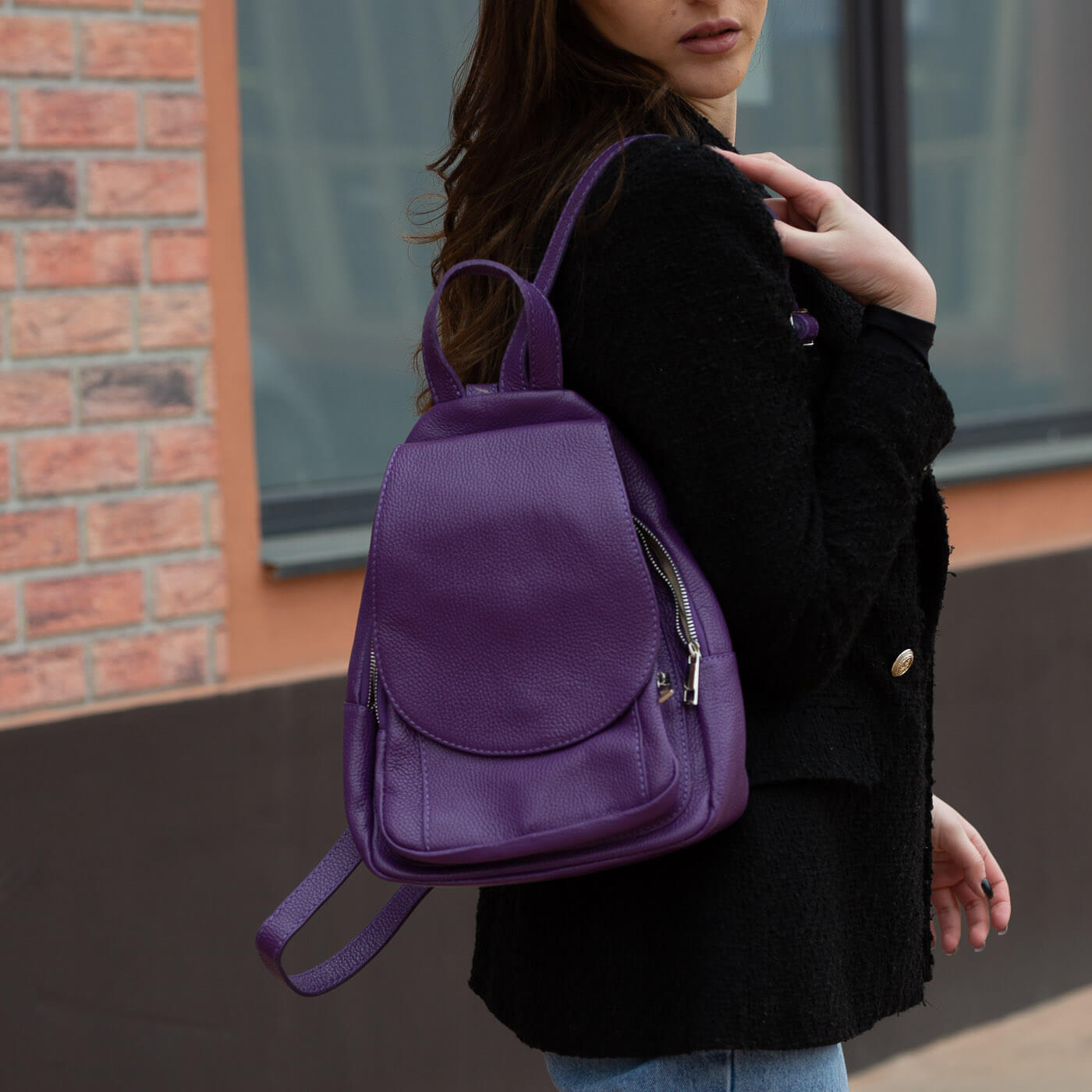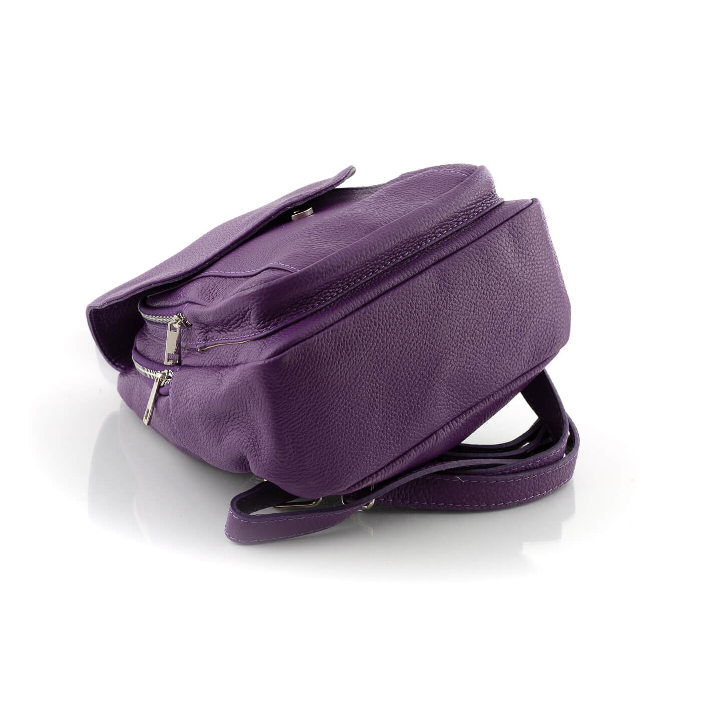 Rucsacul este prevazut cu o bareta din piele pentru a fi purtat in mana sau pe brat si doua barete de umar reglabile.