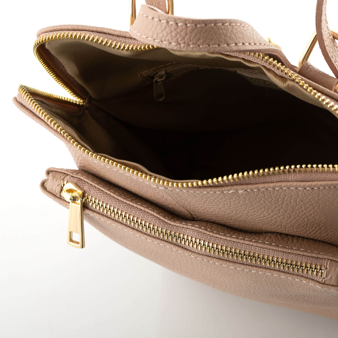 - Compartimente/buzunare: In interior prezinta un compartiment principal si unul lateral care se inchid cu fermoar, iar in exterior prezinta doua buzunare care se inchid, de asemenea, cu fermoar