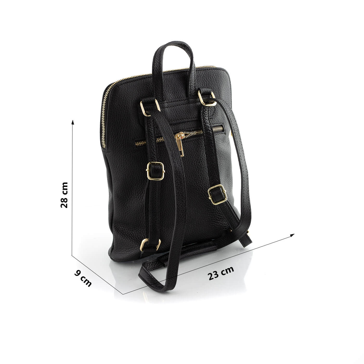 - Compartimente/buzunare: In interior prezinta un compartiment principal si unul lateral care se inchid cu fermoar, iar in exterior prezinta doua buzunare care se inchid, de asemenea, cu fermoar