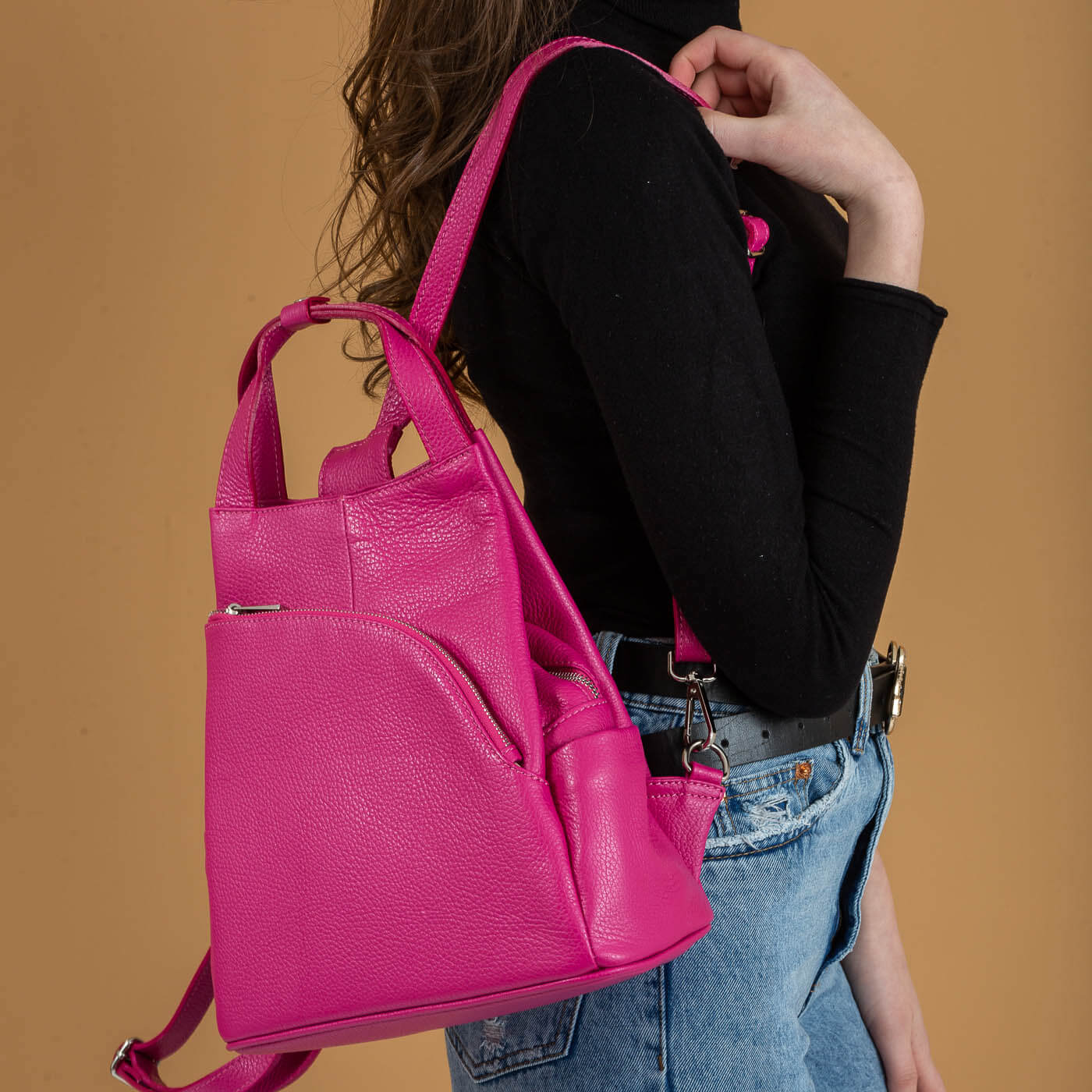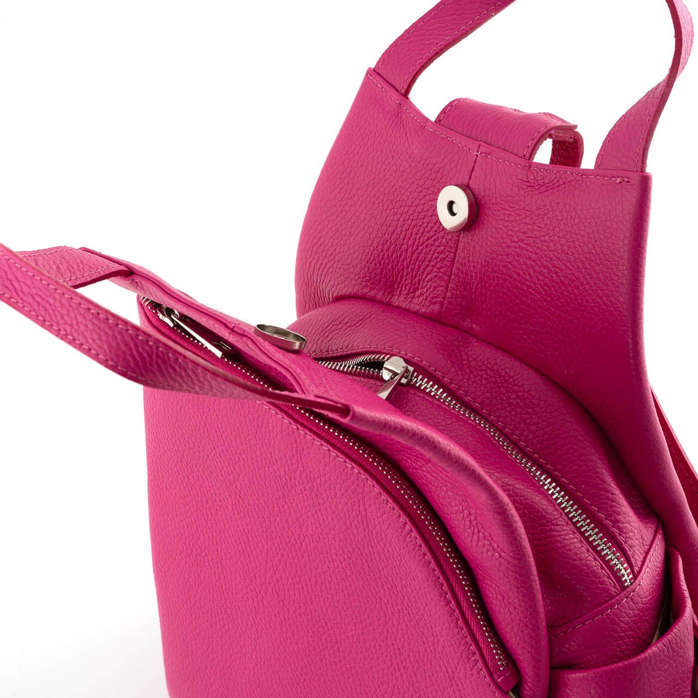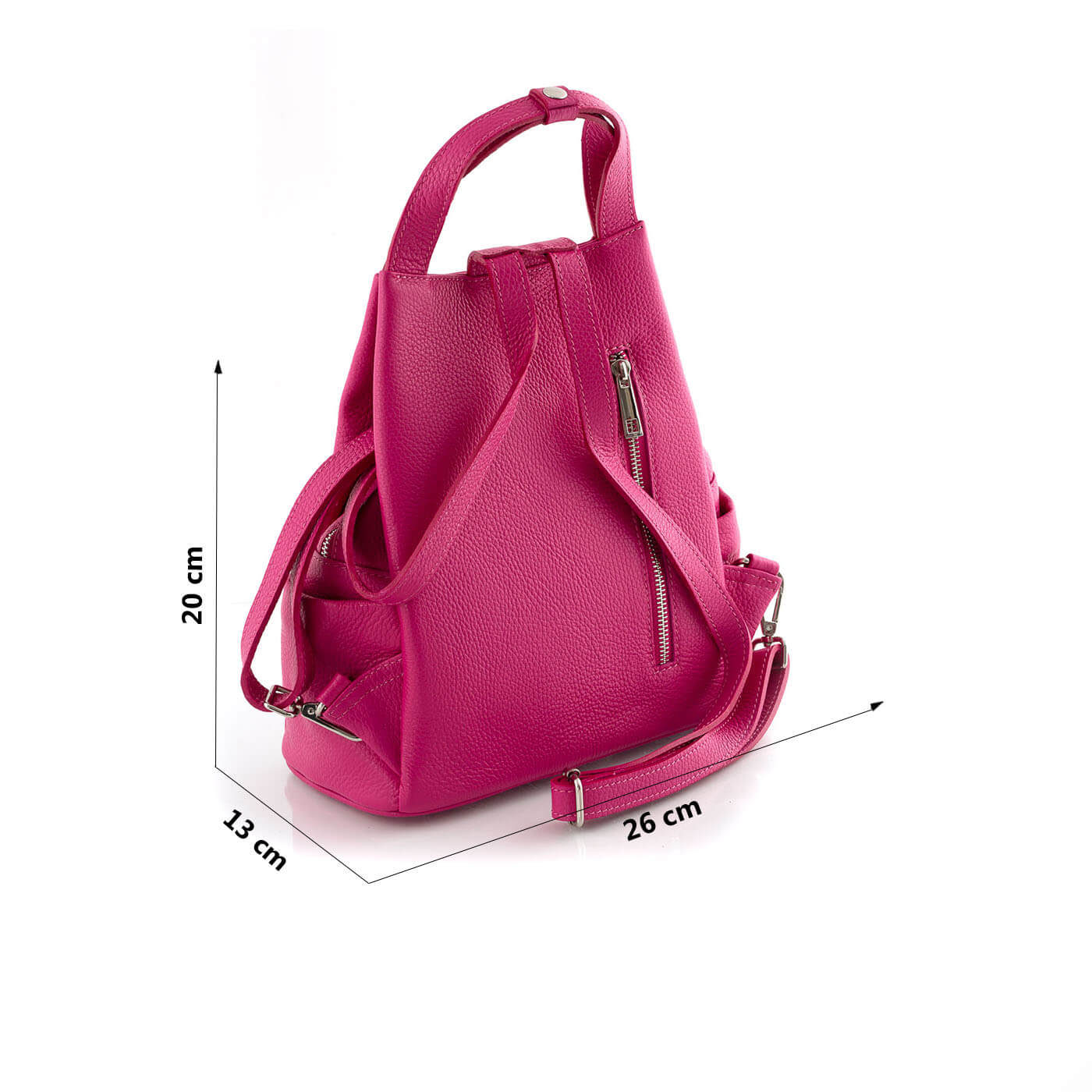 Rucsacul este prevazut cu doua barete din piele pentru a fi purtat in mana sau pe brat si doua barete de umar reglabile.