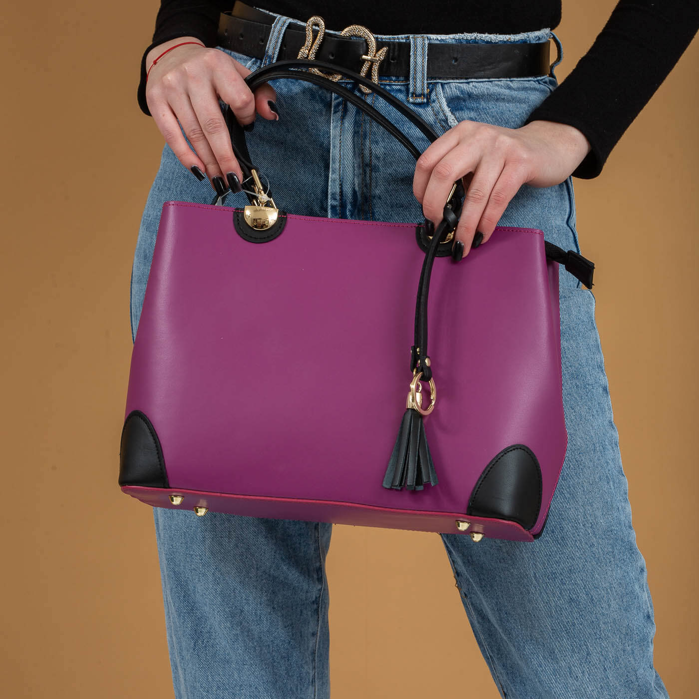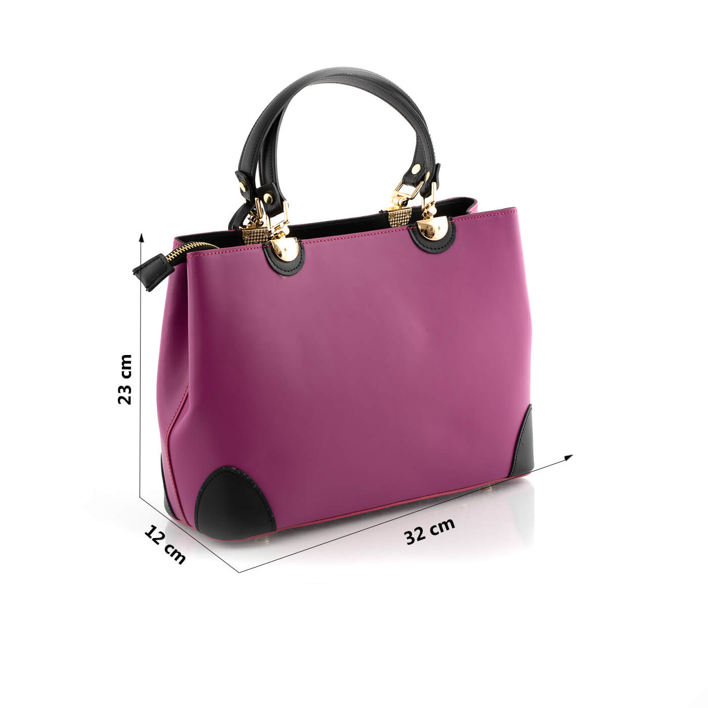 Geanta este prevazuta cu doua cureluse din piele, pentru a fi purtata in mana si o curea detasabila, ajustabila, ce permite purtarea si pe umar.