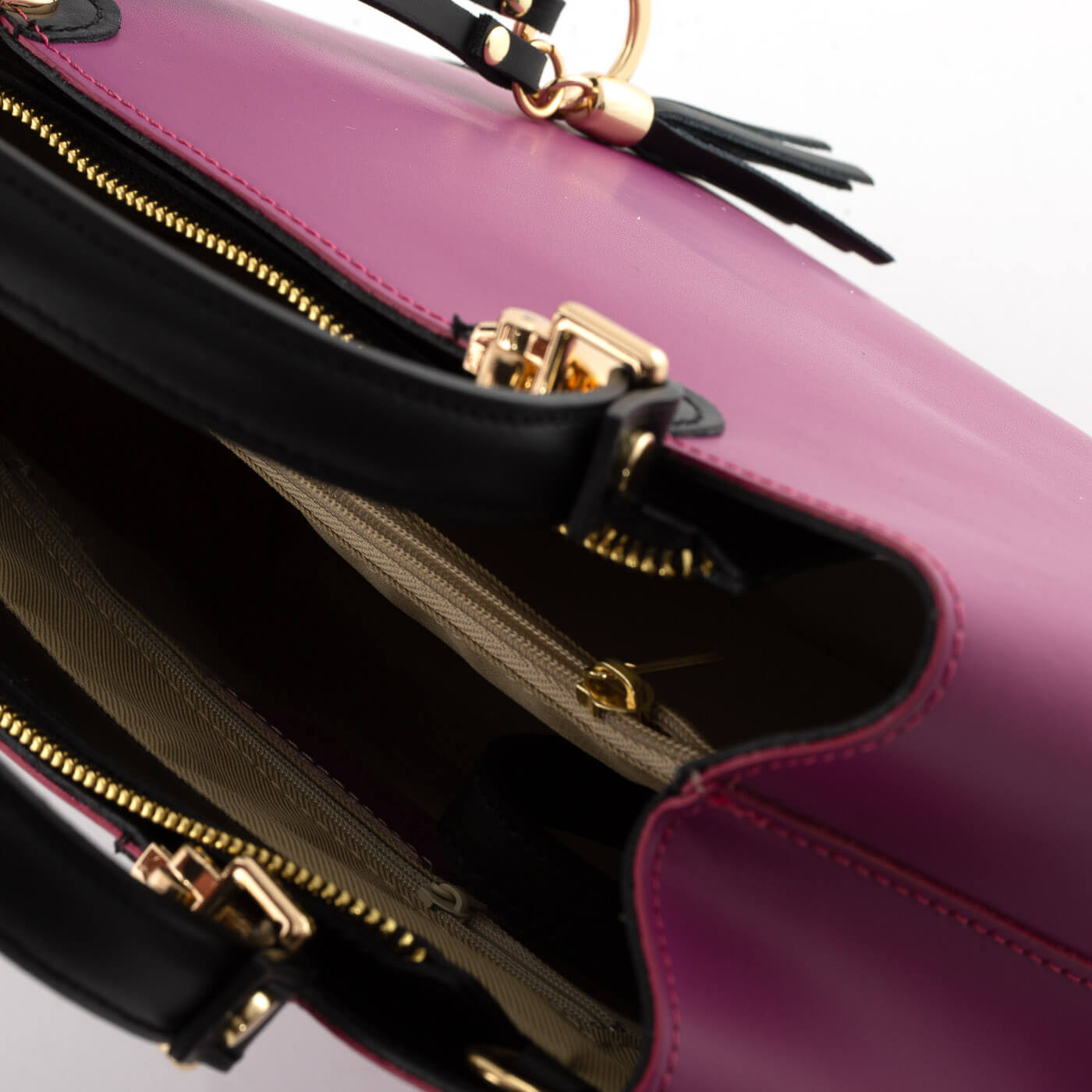 - Compartimente/buzunare: In interior trei compartimente, dintre care cel din mijloc se inchide cu fermoar; un buzunar interior lateral care se inchide, de asemenea, cu fermoar si doua buzunare pentru telefon, respectiv pentru chei.