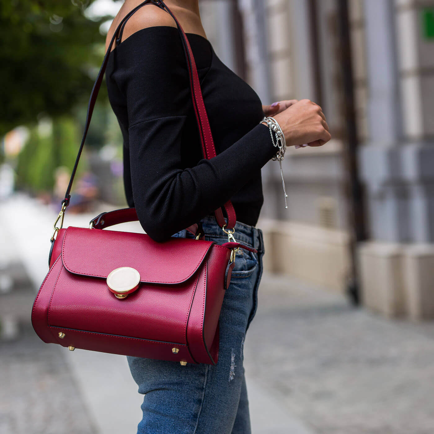 Geanta este prevazuta cu o curea detasabila ce permite purtarea pe umar