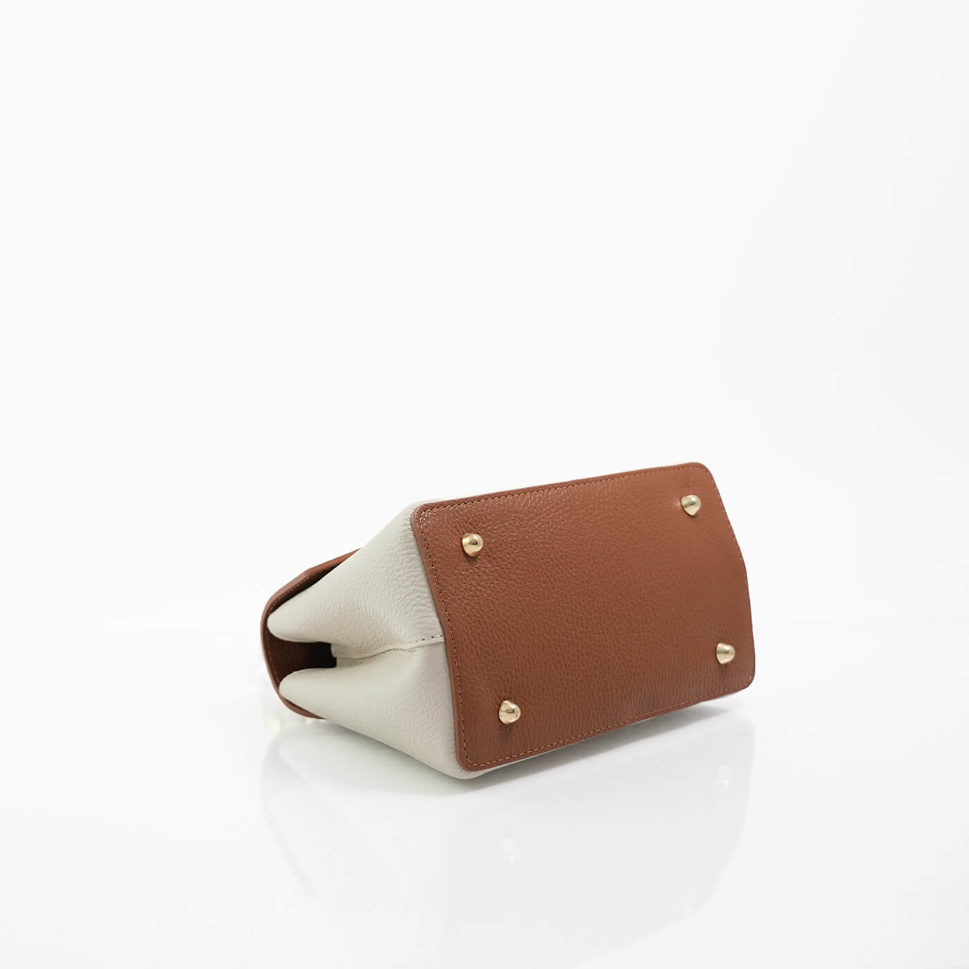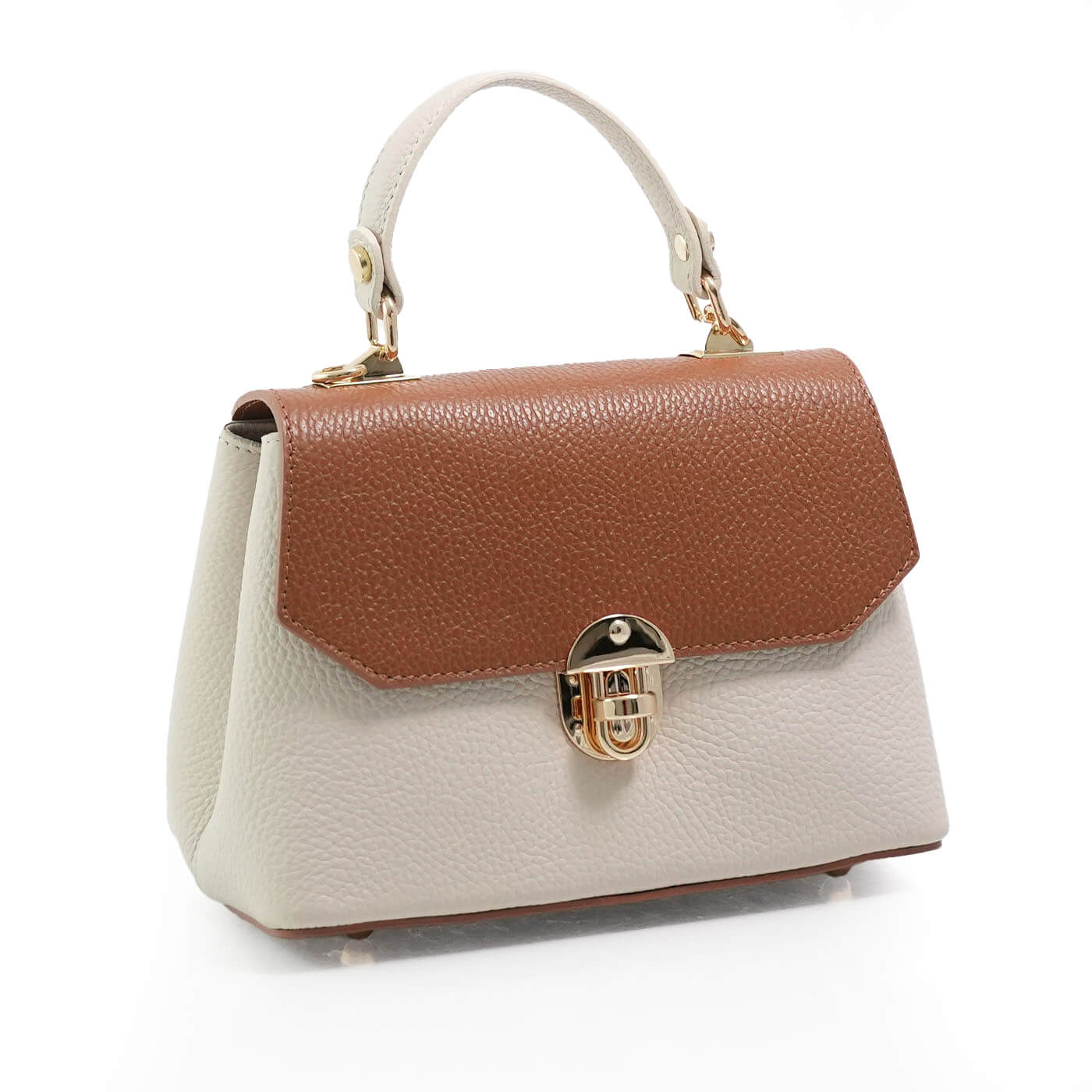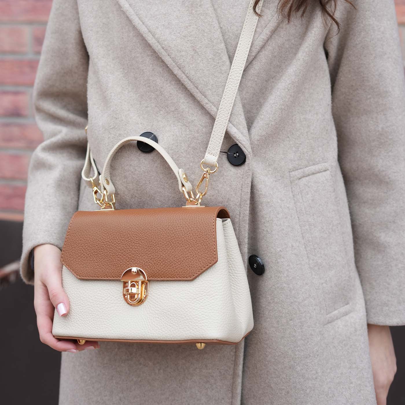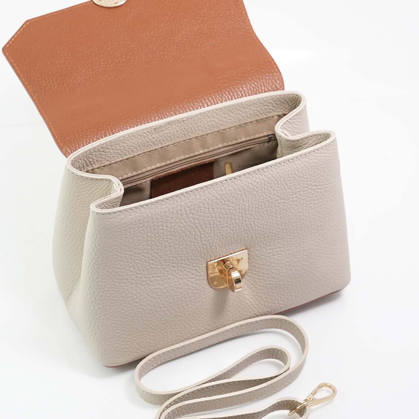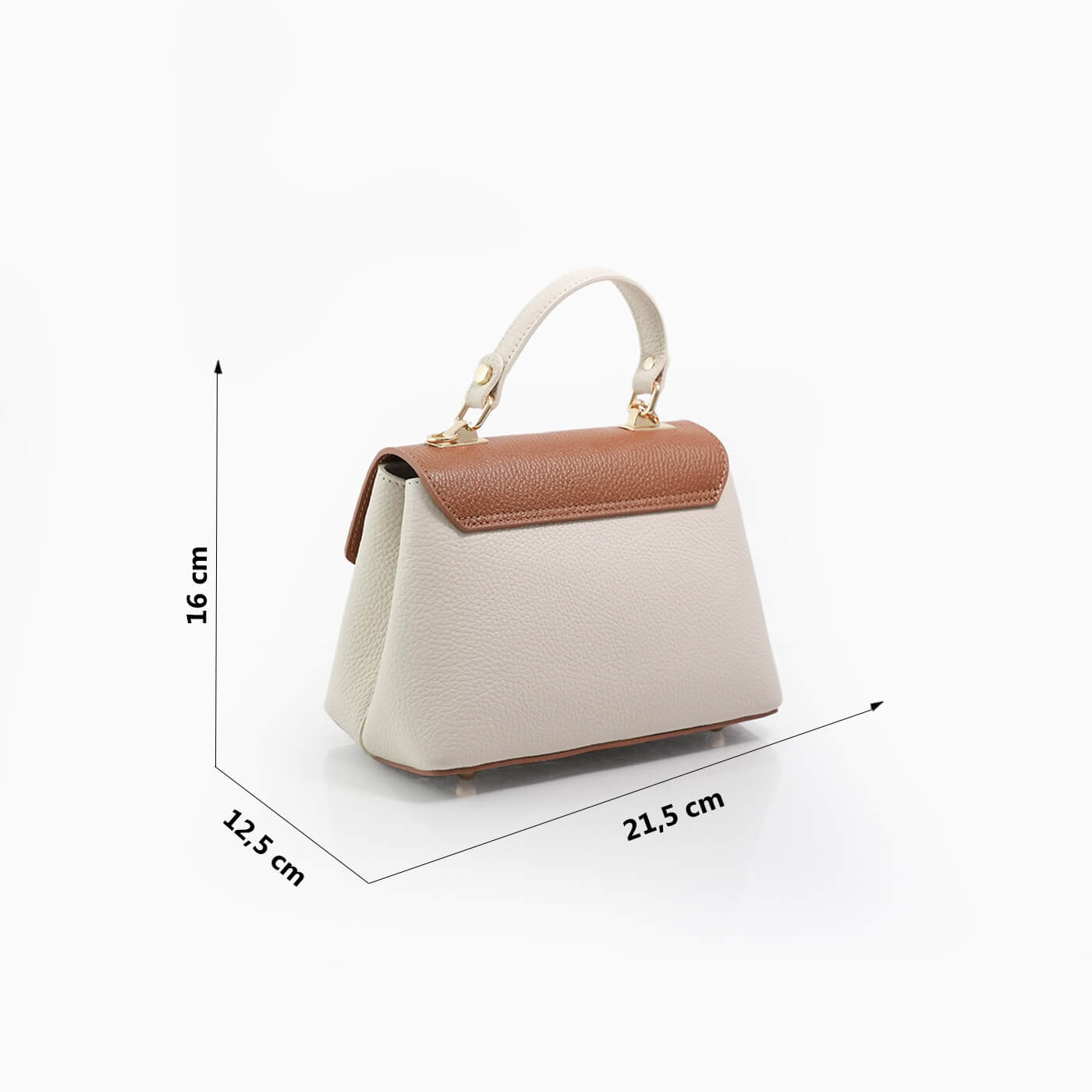 Geanta este prevazuta cu o curea din piele pentru a fi purtata in mana sau pe brat si o curea detasabila ce permite purtarea pe umar