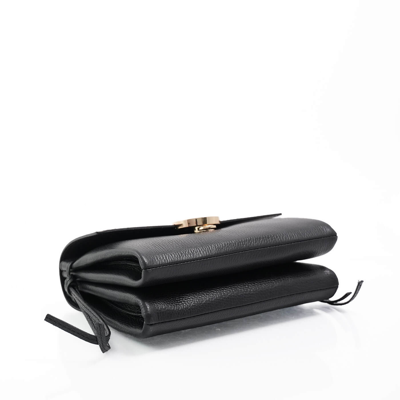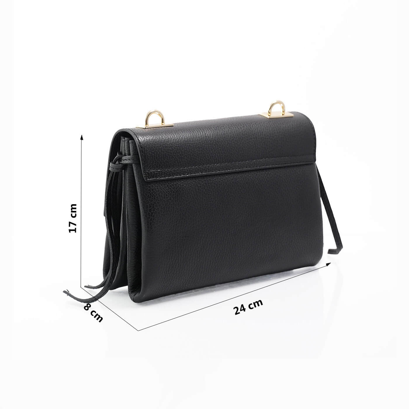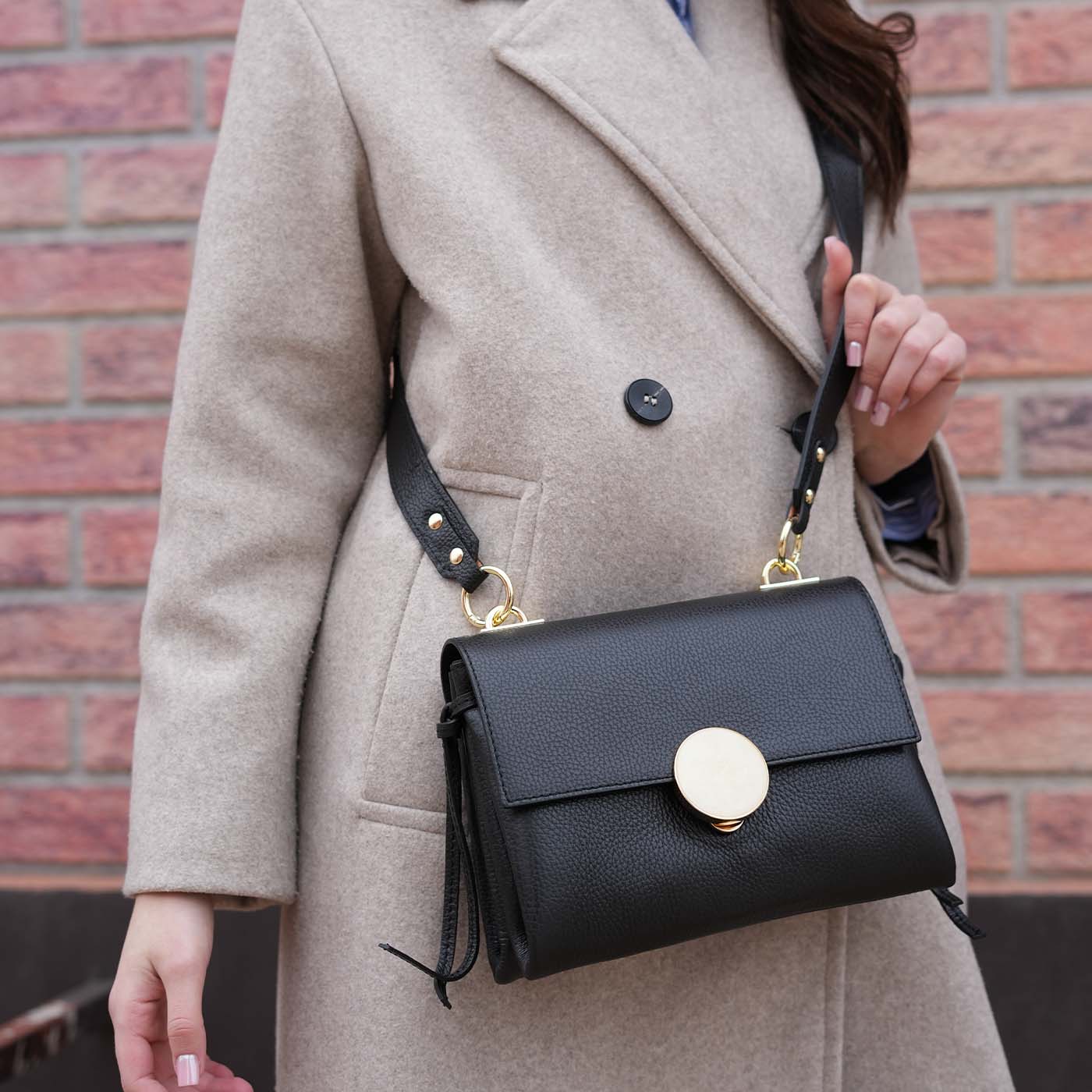 Geanta este prevazuta cu o curea detasabila din piele ce permite purtarea pe umar.