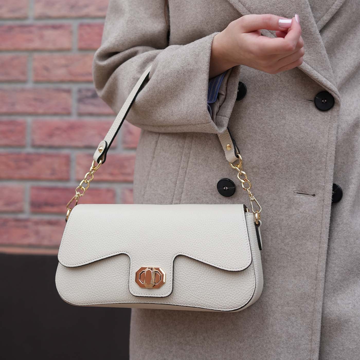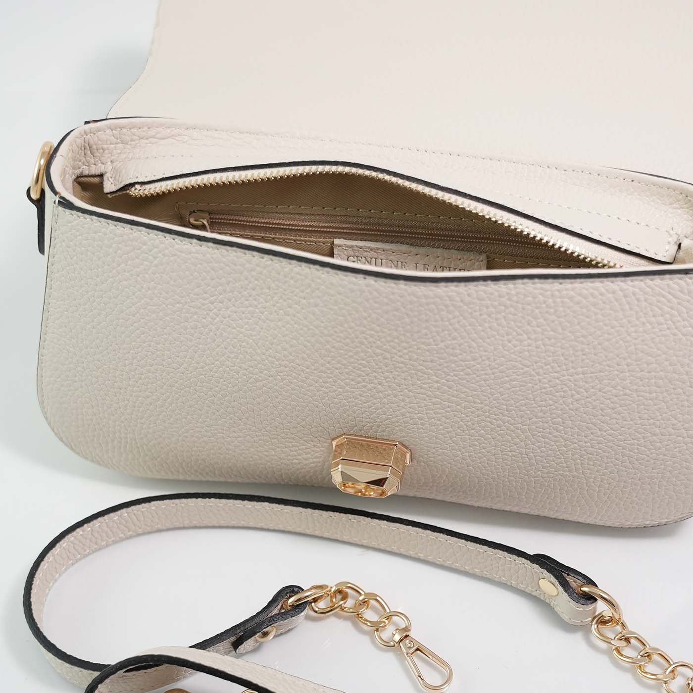 Geanta este prevazuta cu o curea detasabila ce permite purtarea pe umar