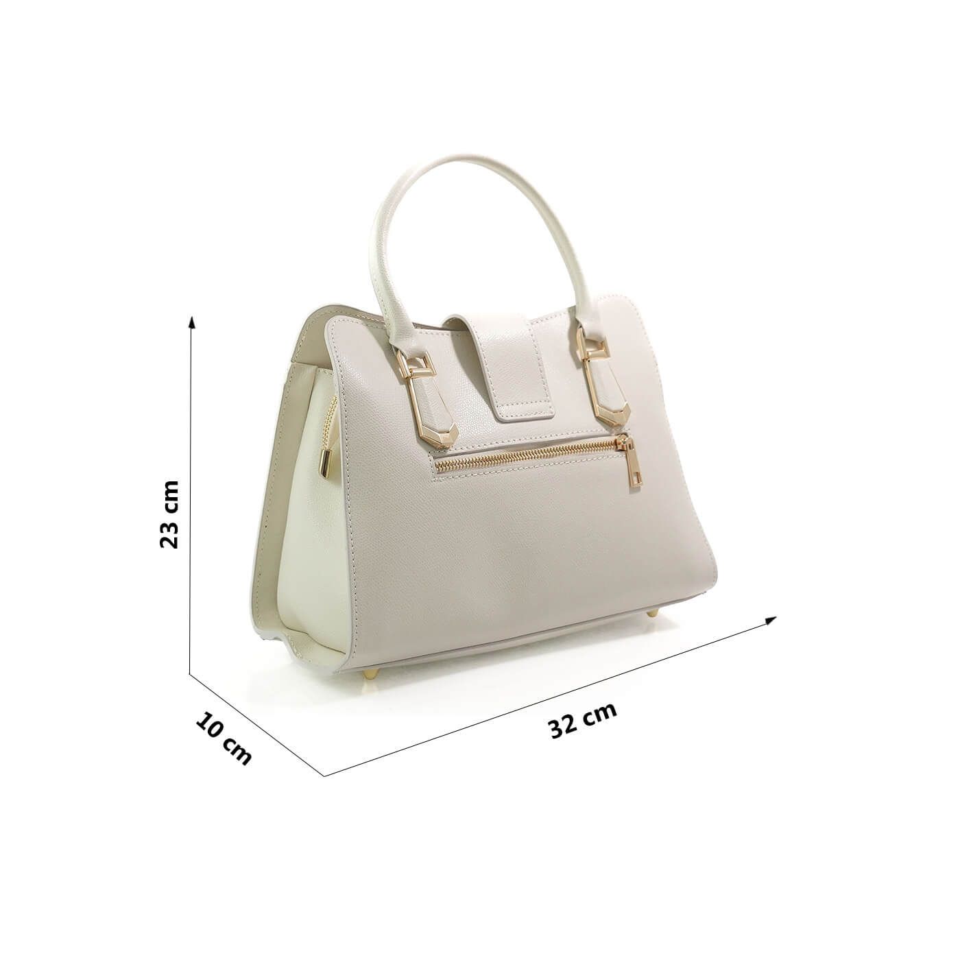 Geanta Capricia, din piele naturala de inalta calitate, prezinta un design elegant, ideal pentru a completa tinuta zilnica cu un strop de rafinament. Disponibila in mai multe nuante, aceasta geanta devine un accesoriu usor de asortat, potrivit atat pentru stilurile casual, cat si pentru cele mai formale. Cu doua manere robuste si o bareta detasabila, permite purtarea in mai multe stiluri, asigurand confort si adaptabilitate. Interiorul bine compartimentat ofera spatiu amplu pentru esentiale, facand-o nu numai stilata, dar si practica pentru nevoile de zi cu zi.
