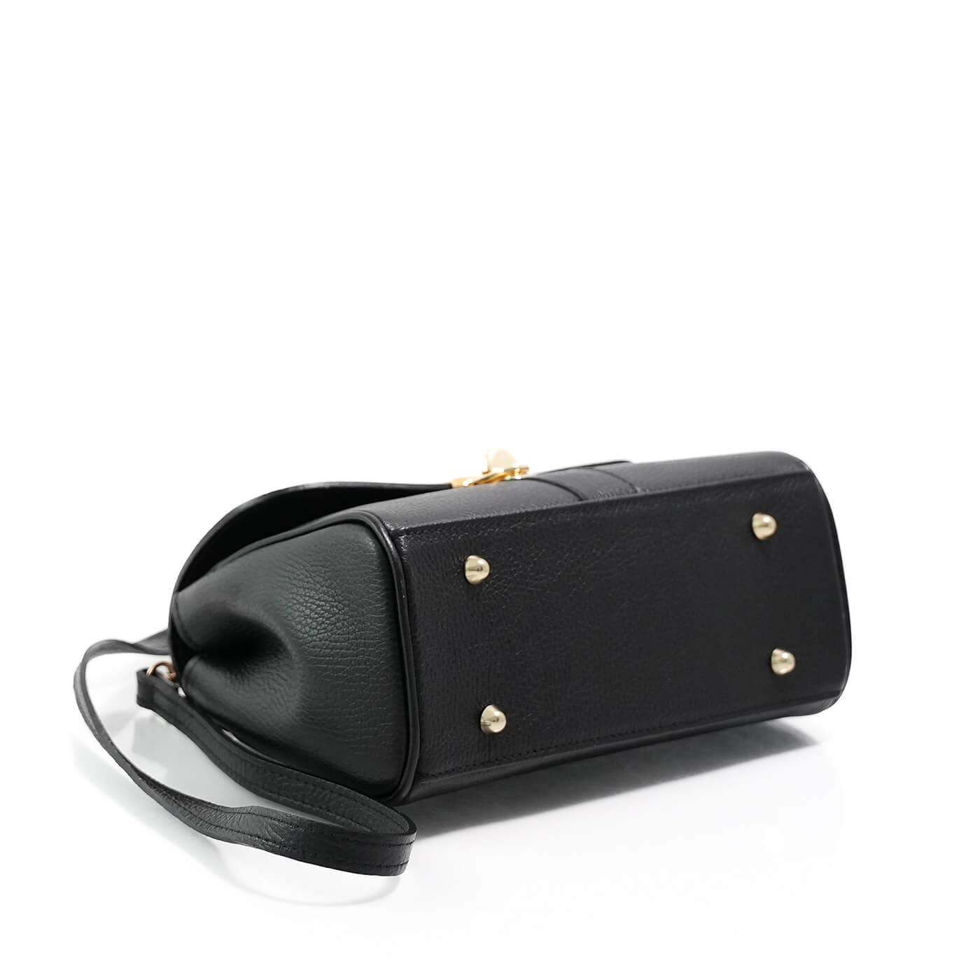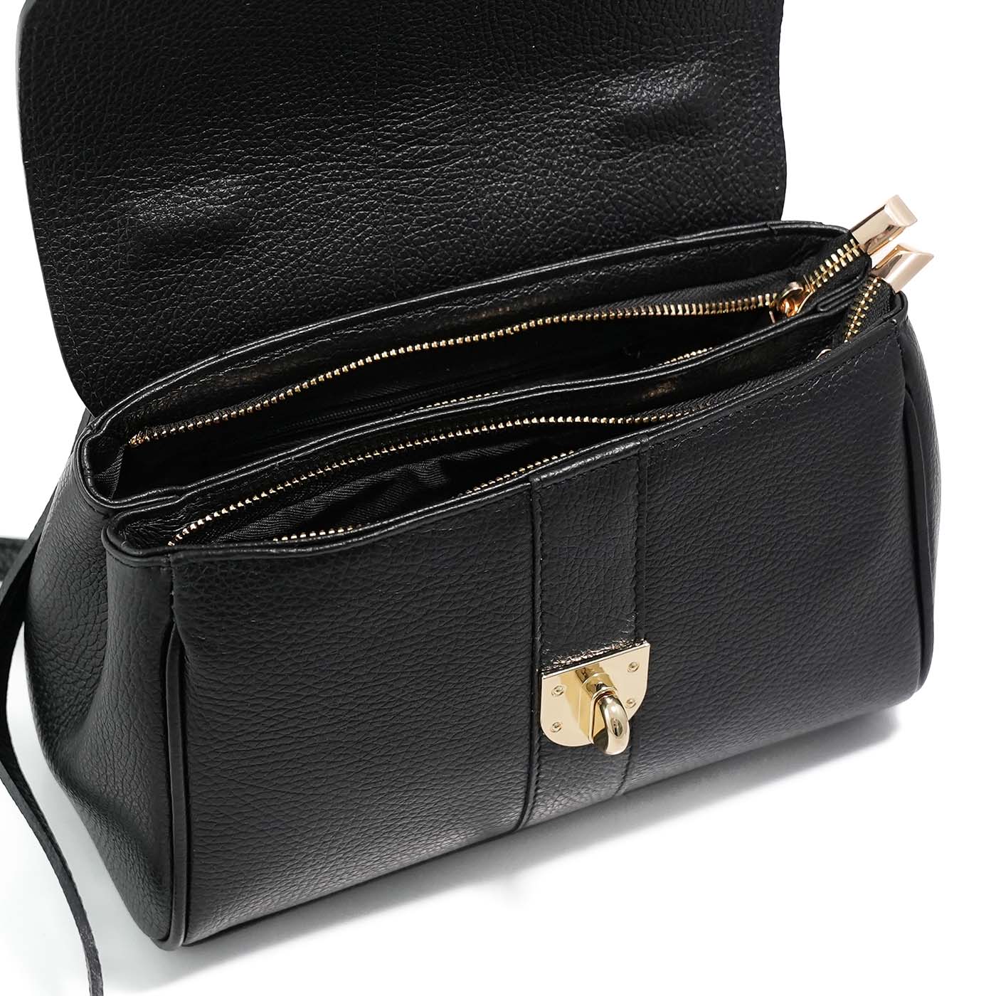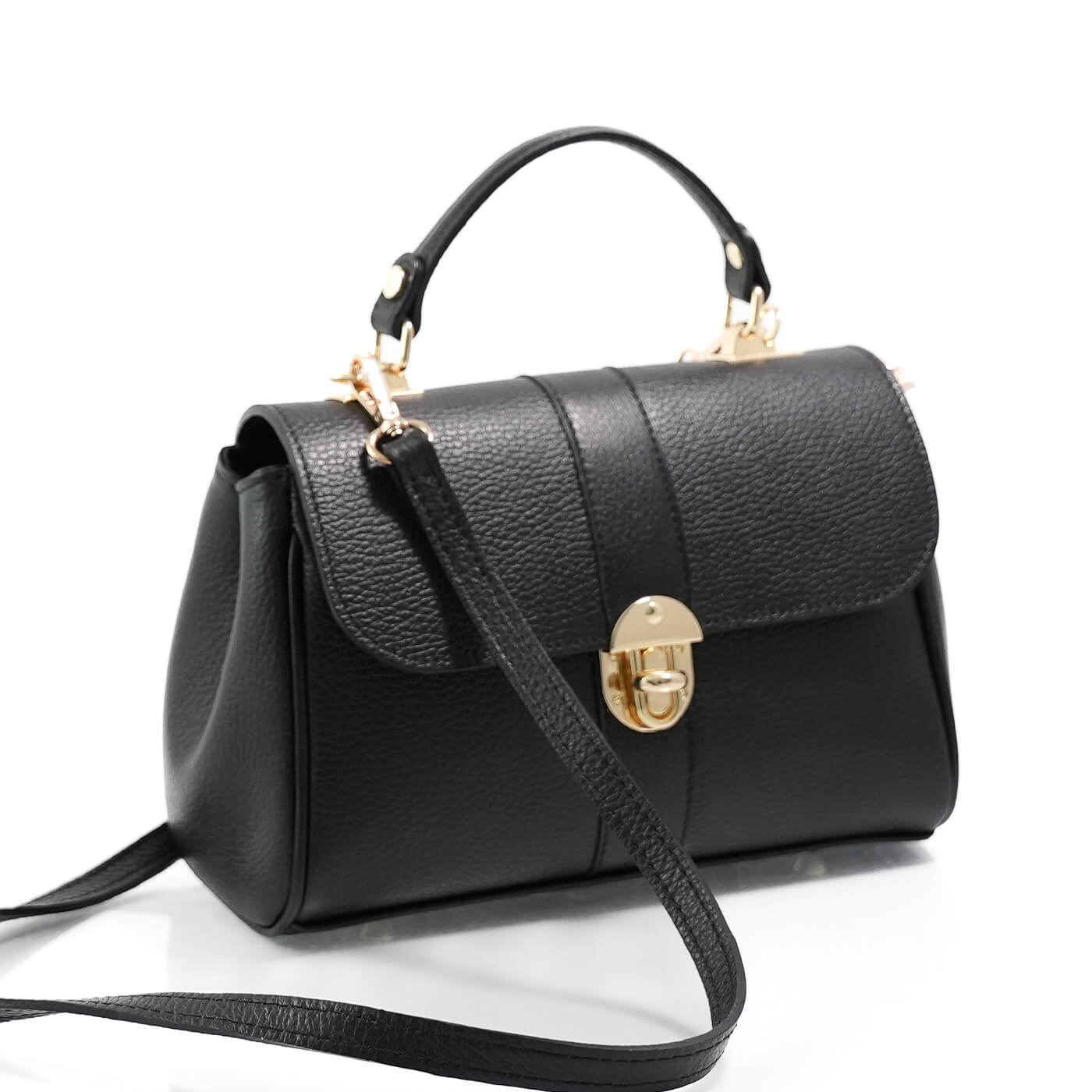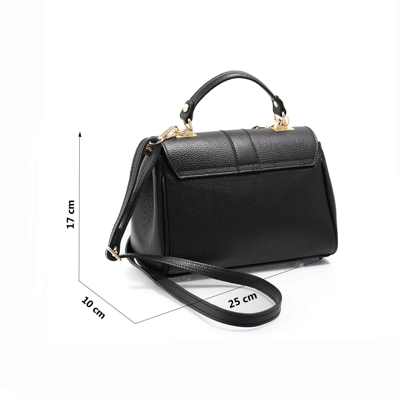 Geanta este prevazuta cu o curea din piele pentru a fi purtata in mana sau pe brat si o curea detasabila ce permite purtarea pe umar