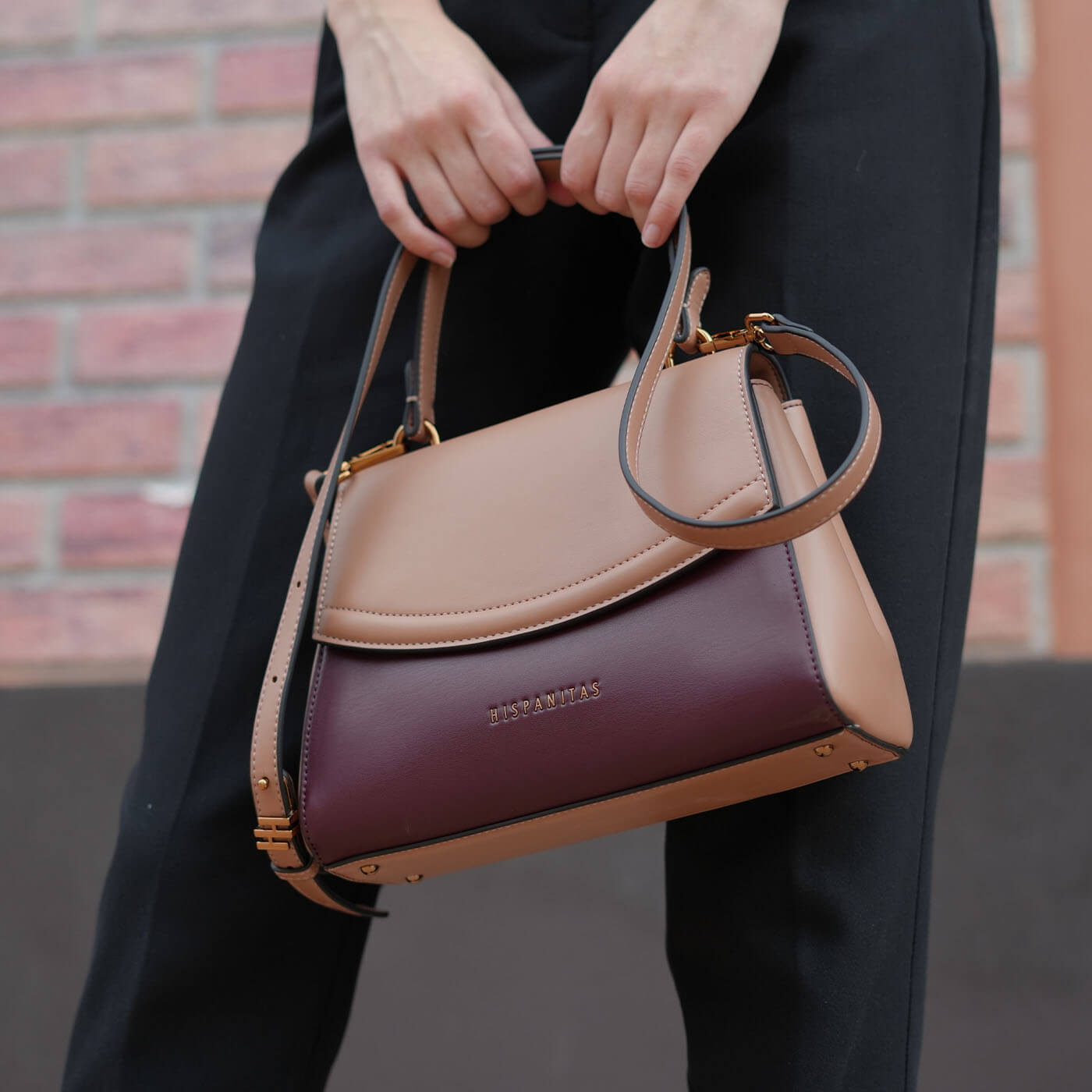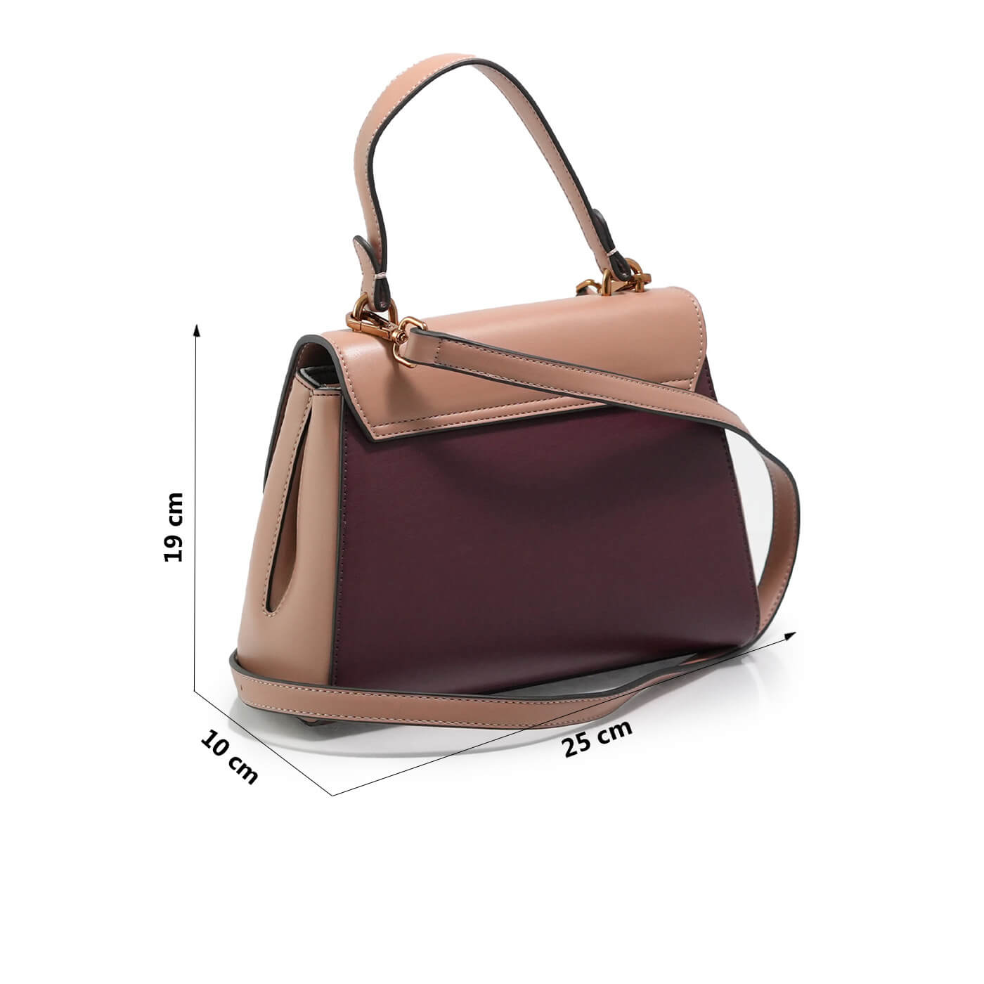 Geanta este prevazuta cu o bareta ce permite purtarea in mana si o curea ce permite purtarea pe umar