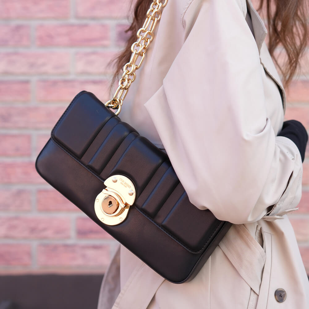 Geanta este prevazuta cu o bareta reglabila, ce permite purtarea pe umar