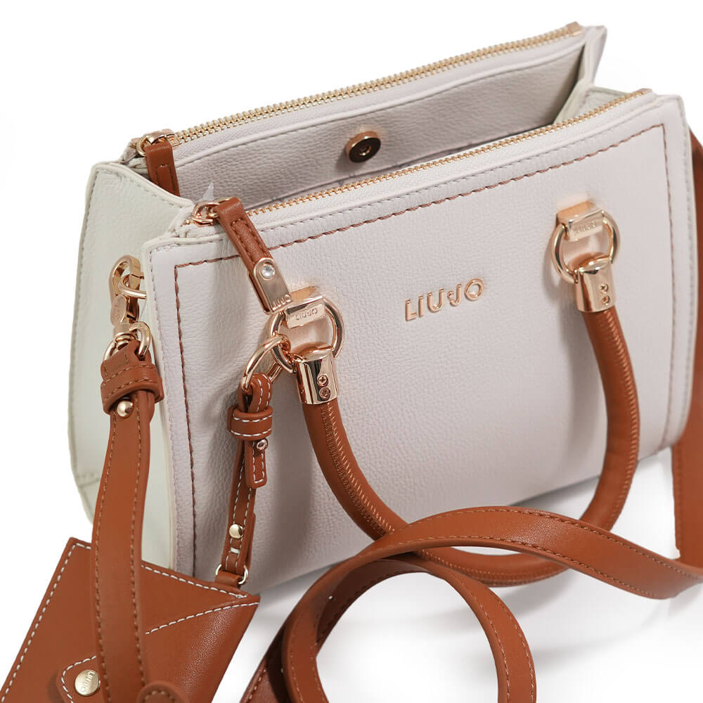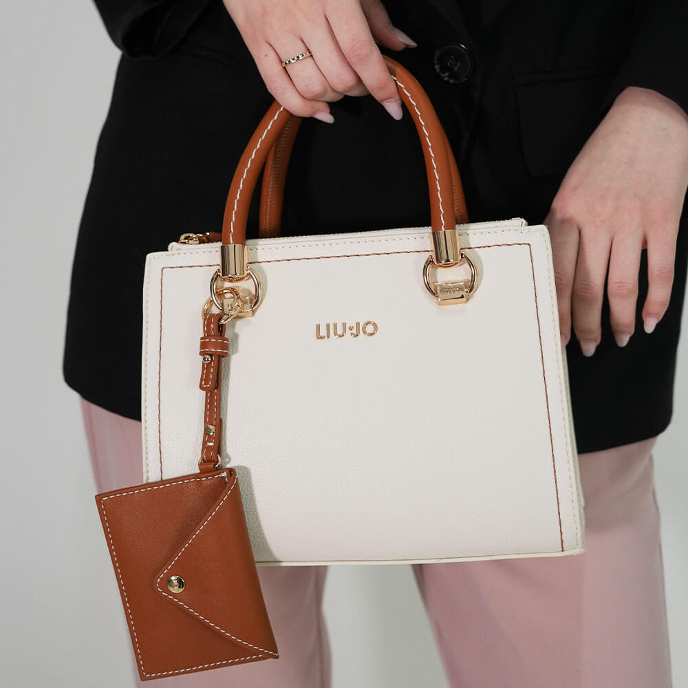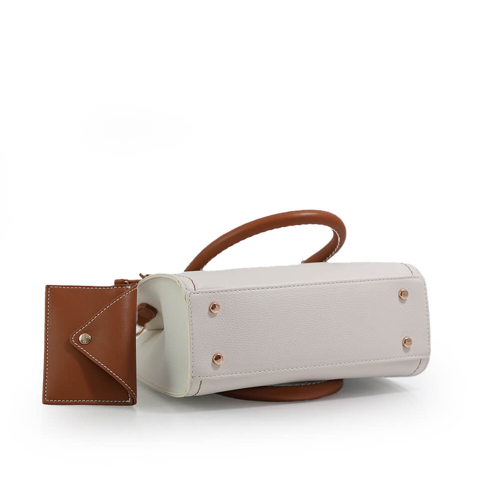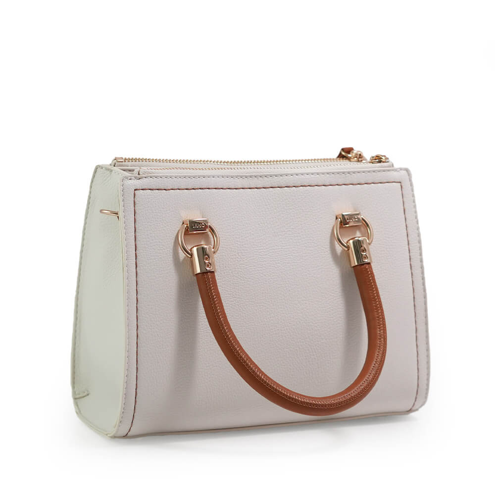 Geanta este prevazuta cu doua manere pentru a fi purtata in mana si o curea detasabila de piele ce permite purtarea pe umar.