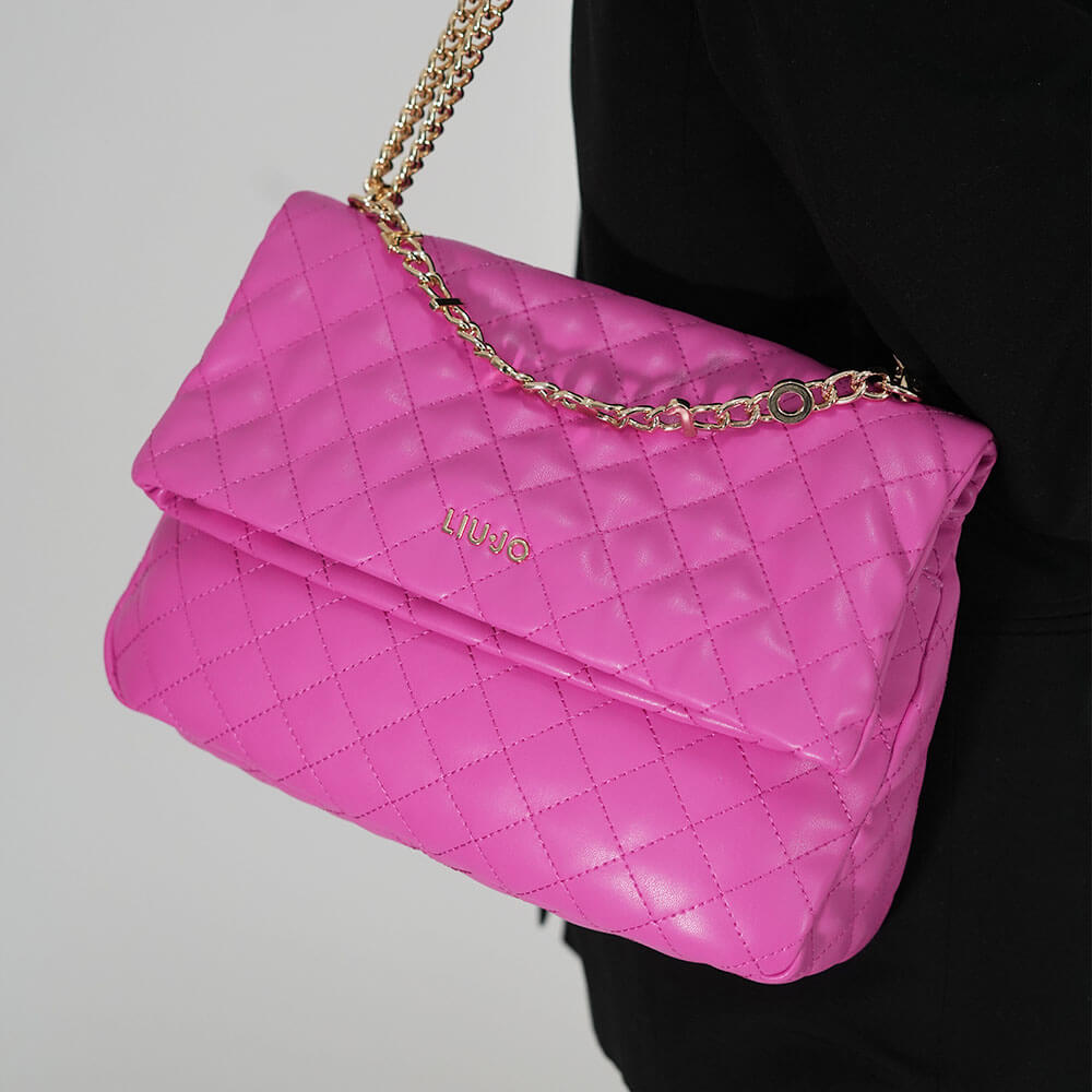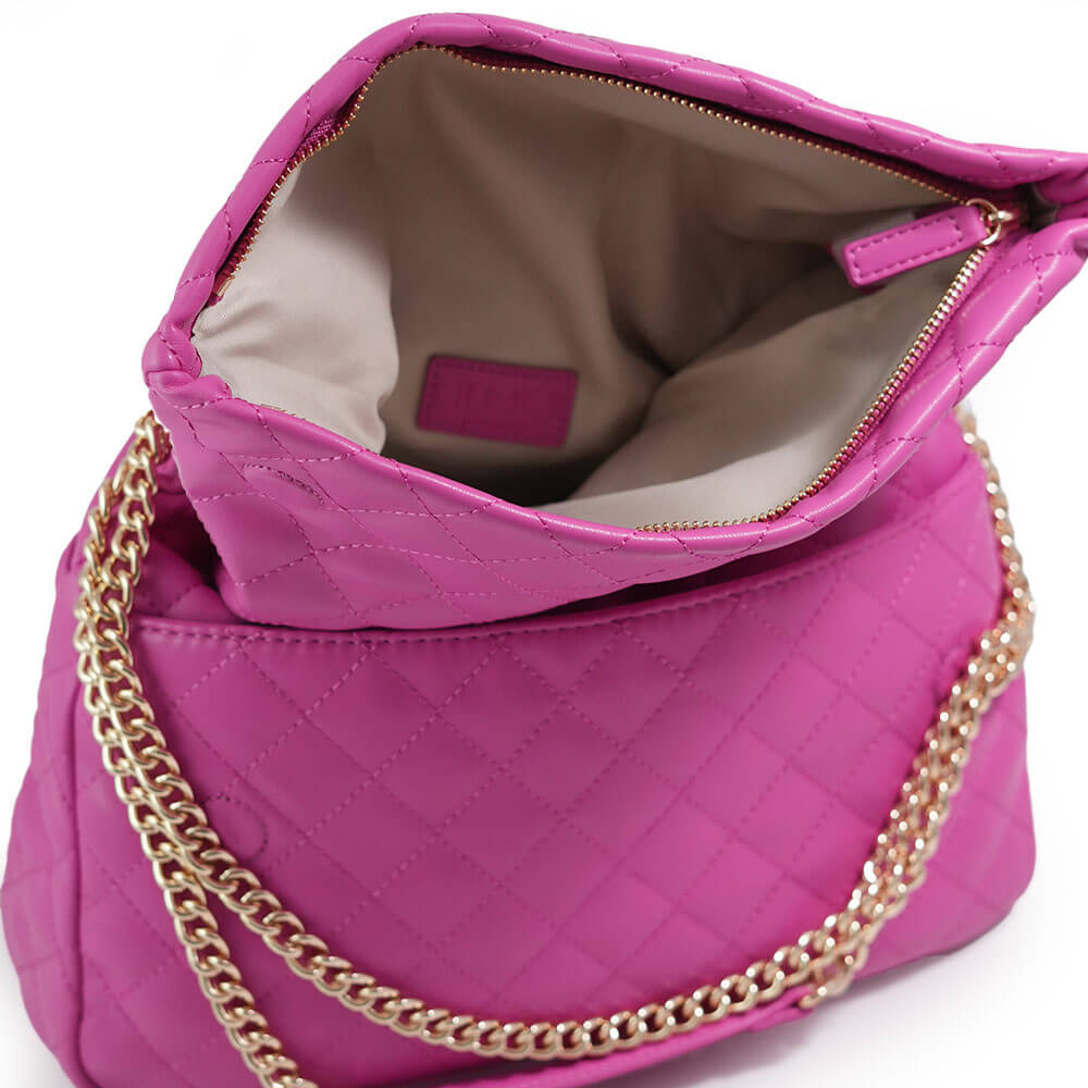 Geanta este prevazuta cu o bareta metalica pentru a fi purtata in mana sau pe umar.