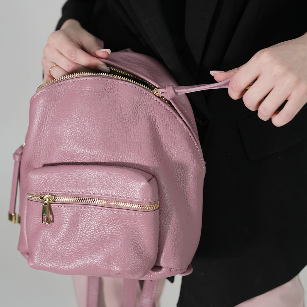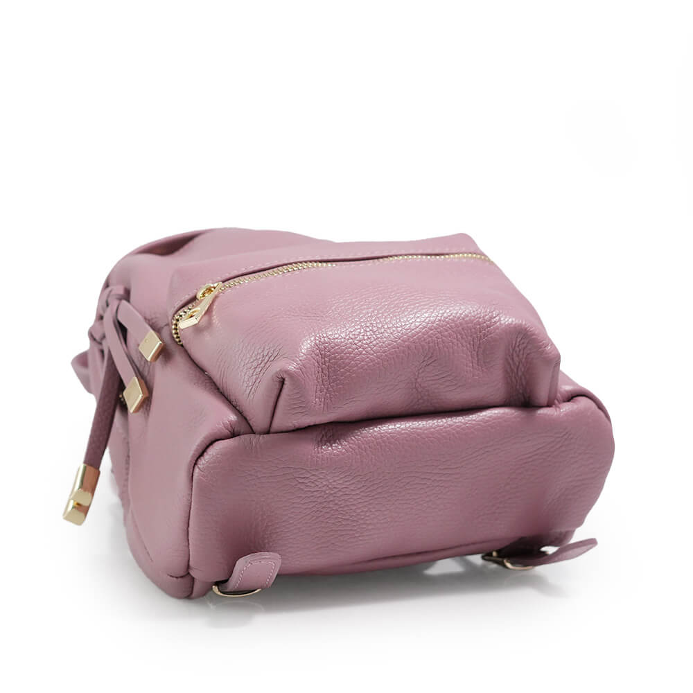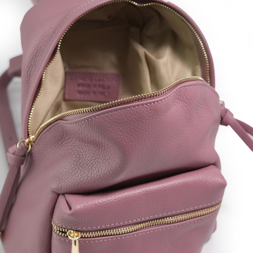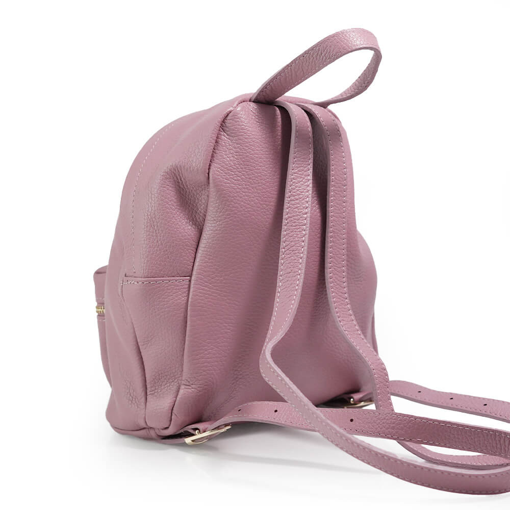 Rucsacul este prevazut cu un maner din piele pentru a fi purtat in mana sau pe brat si doua barete de umar reglabile.